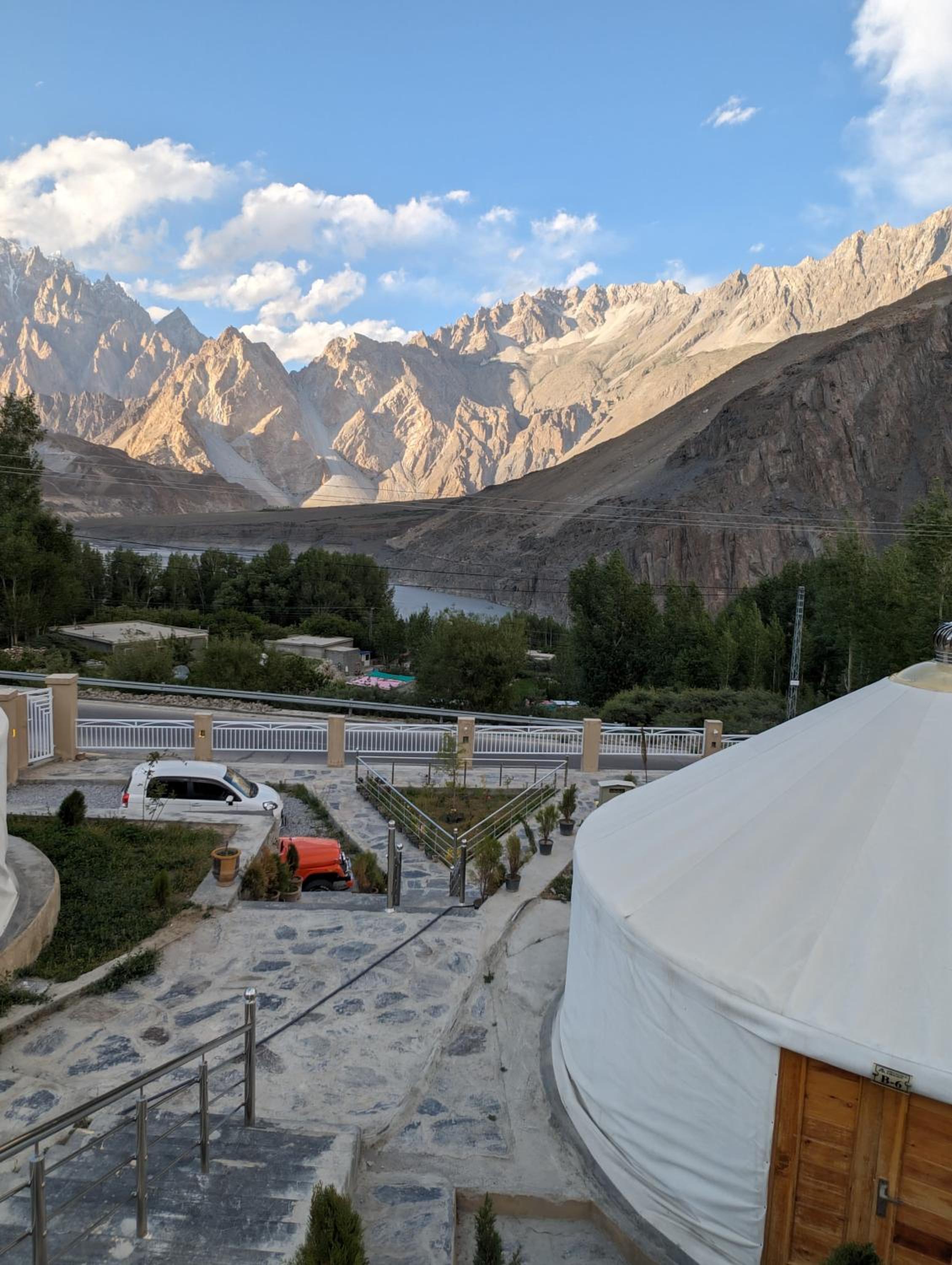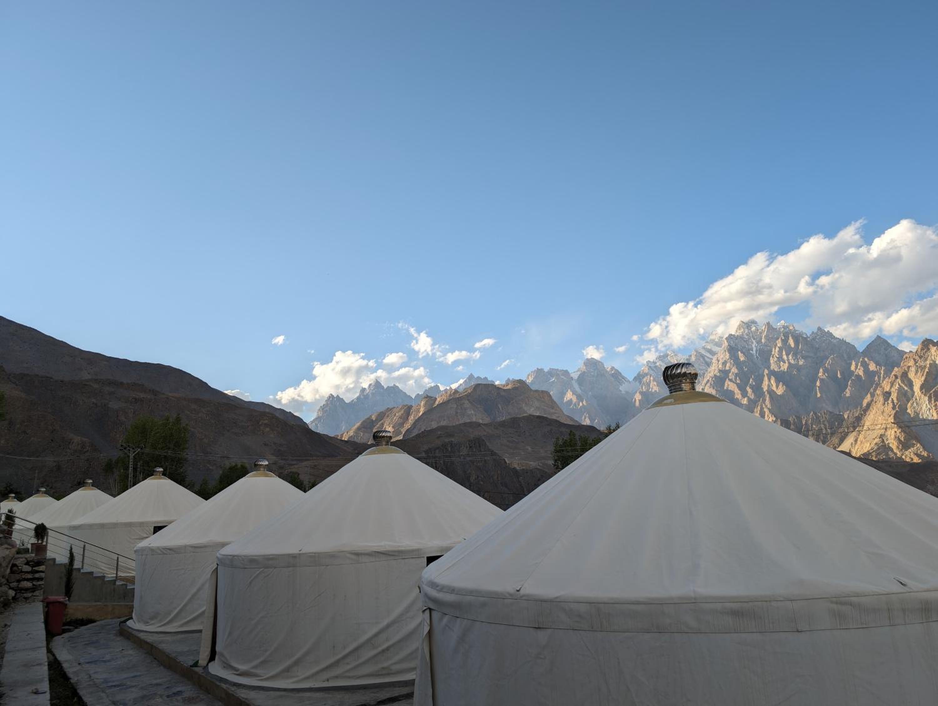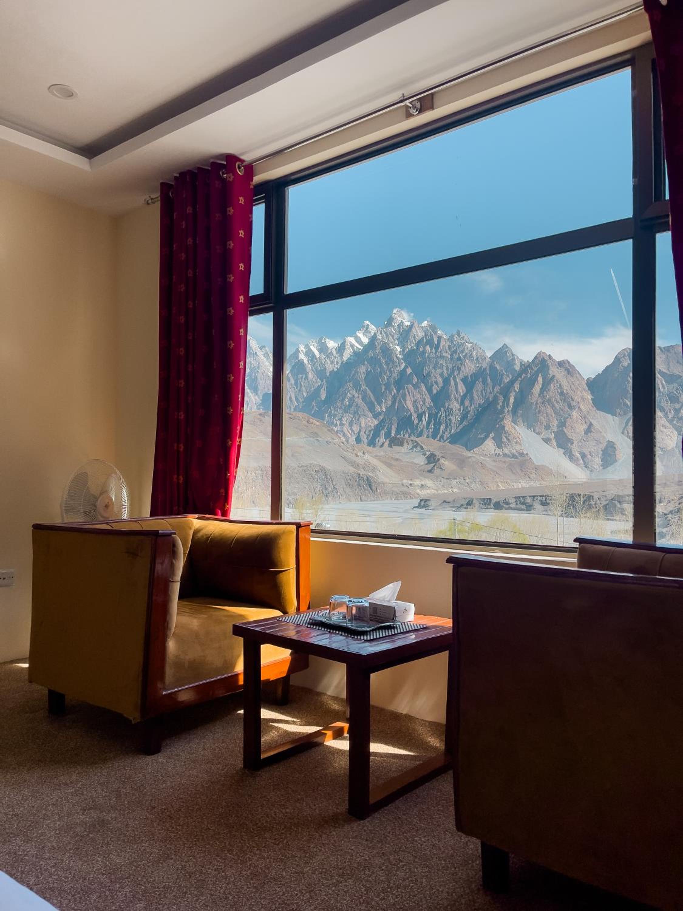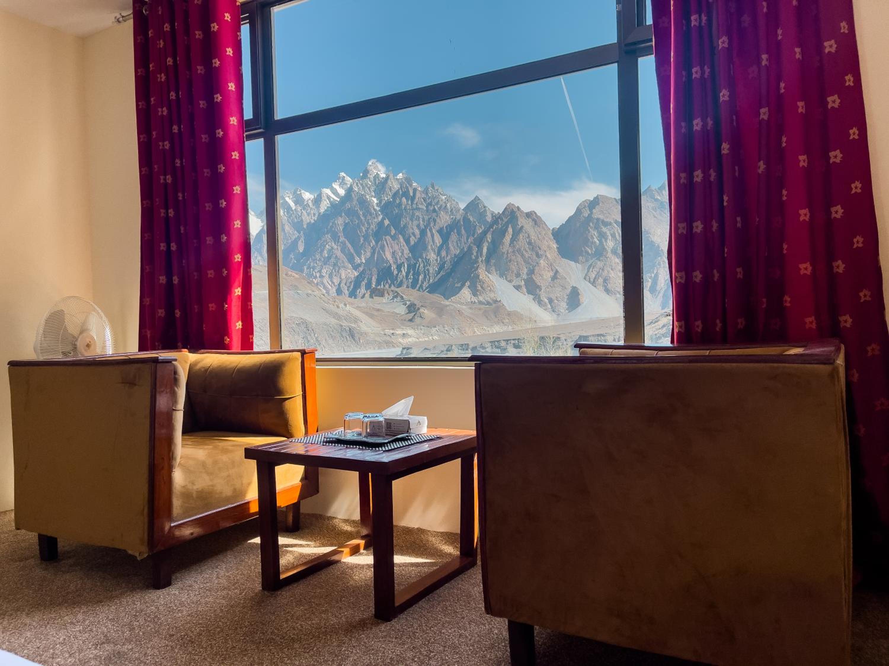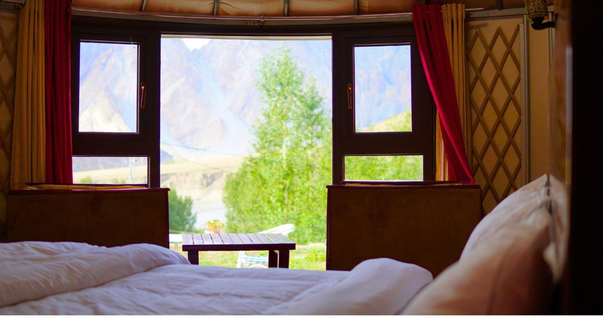 The view from our yurt's window was breathtaking, with the majestic Passu Cones creating a stunning backdrop. It was a perfect blend of traditional charm and modern comfort.
