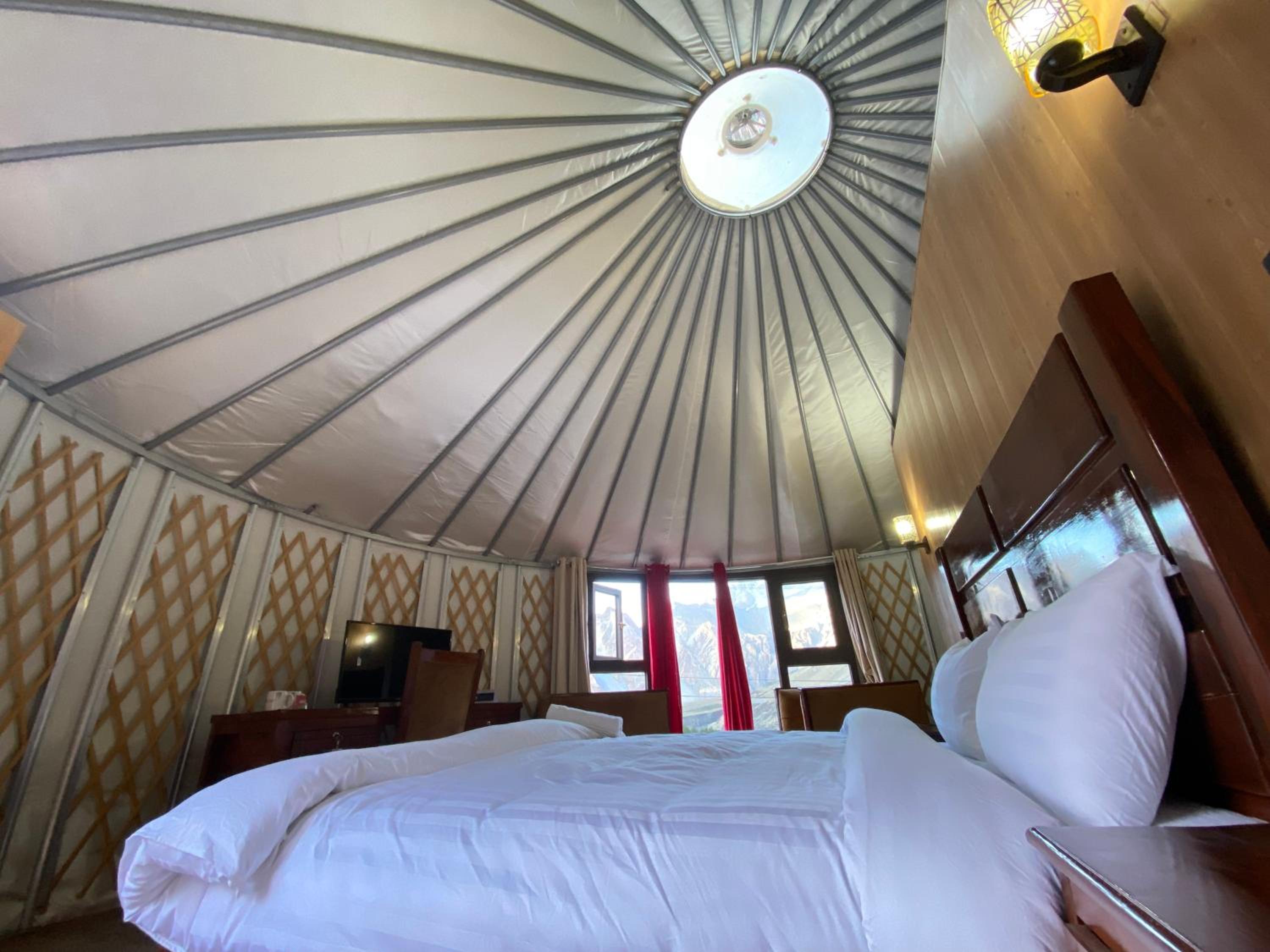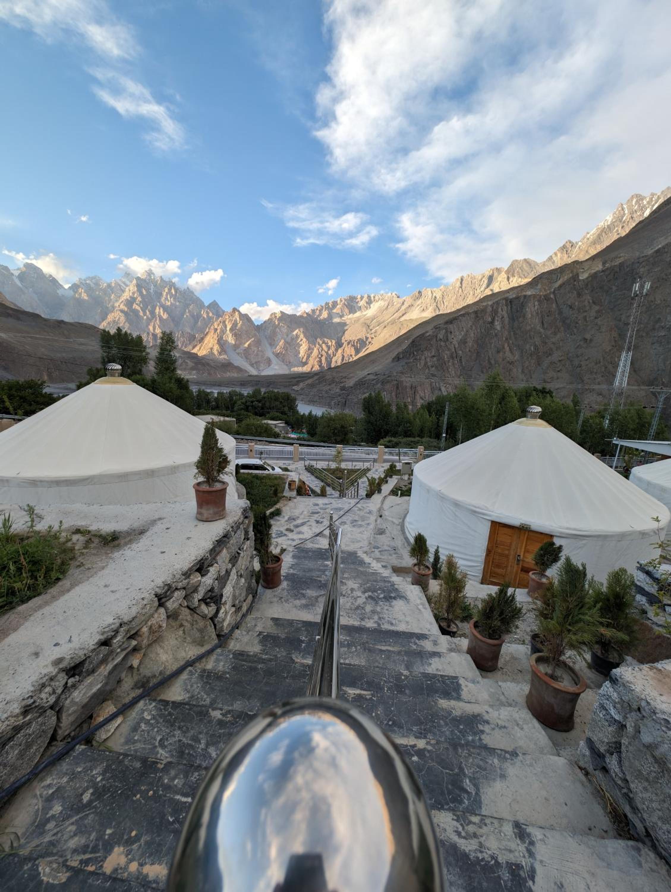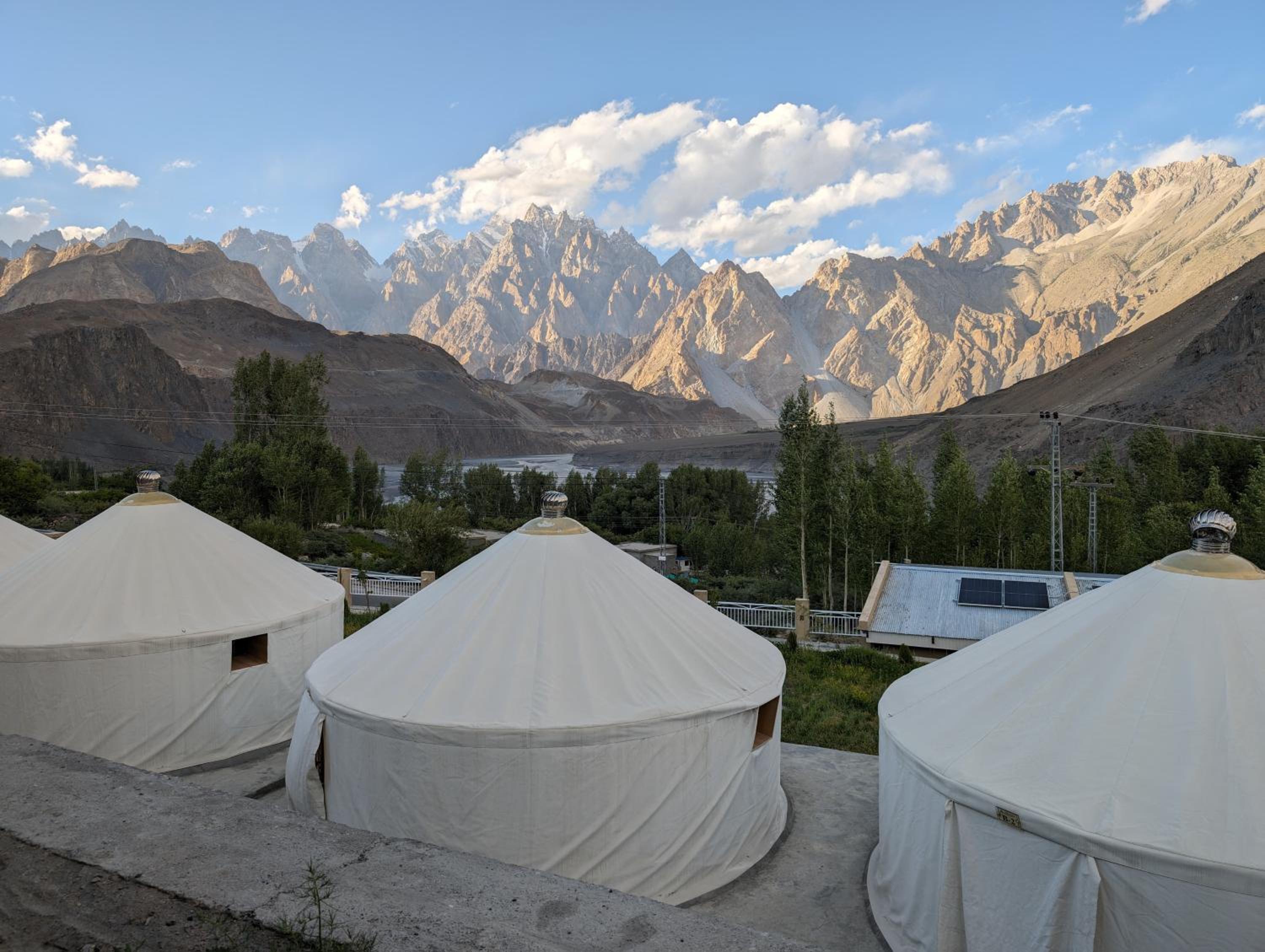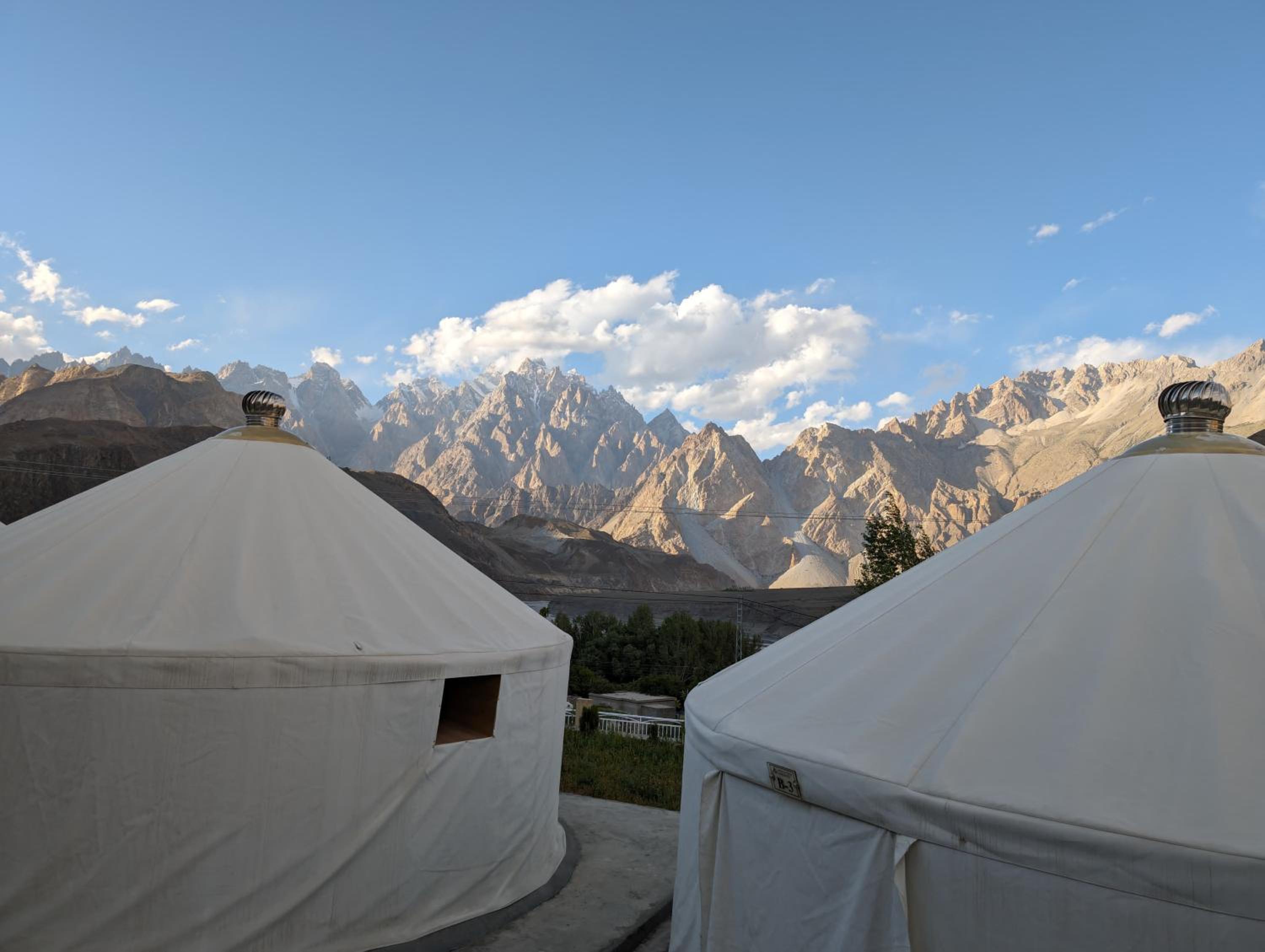 The view from our yurt's window was breathtaking, with the majestic Passu Cones creating a stunning backdrop. It was a perfect blend of traditional charm and modern comfort.