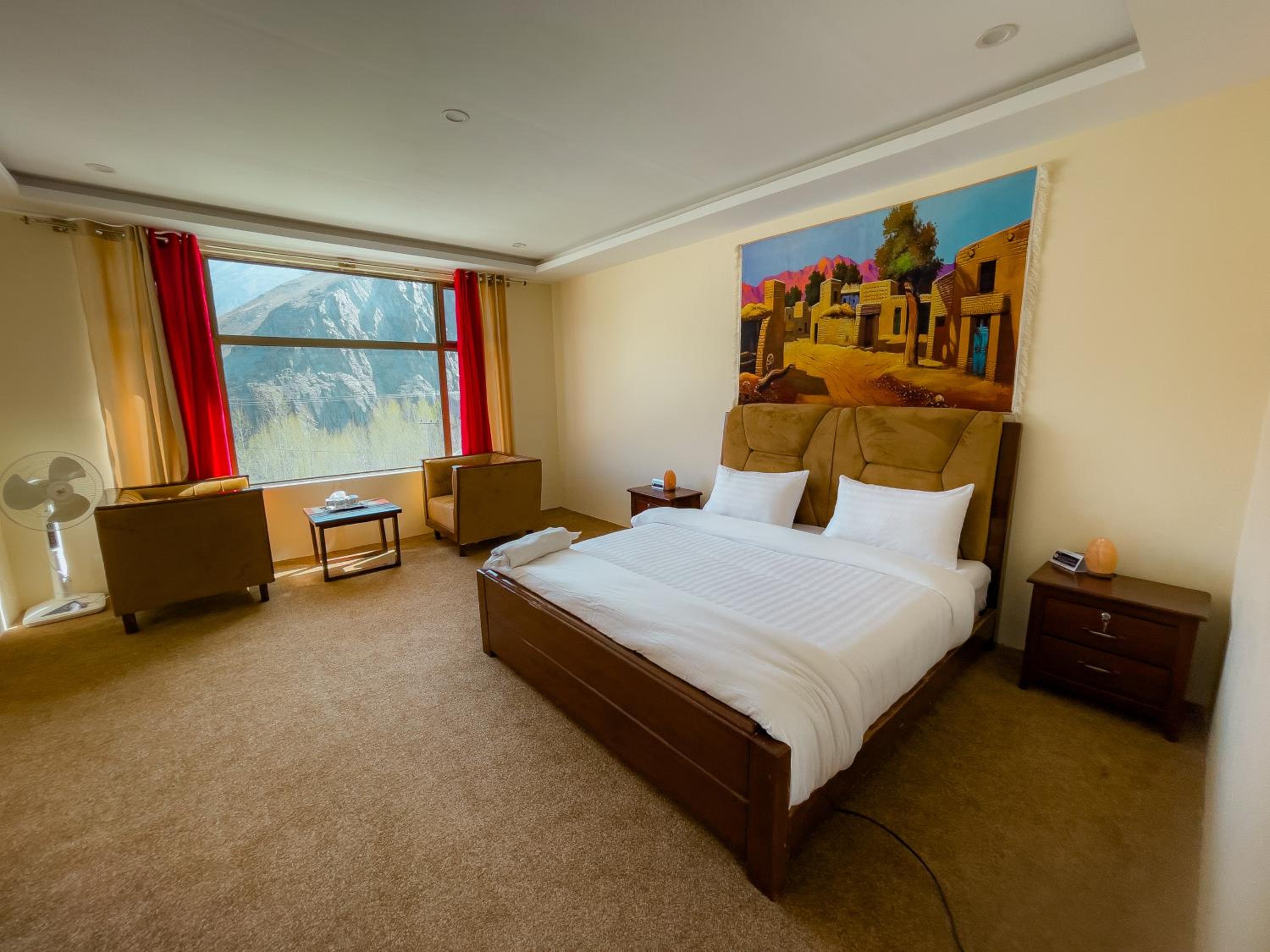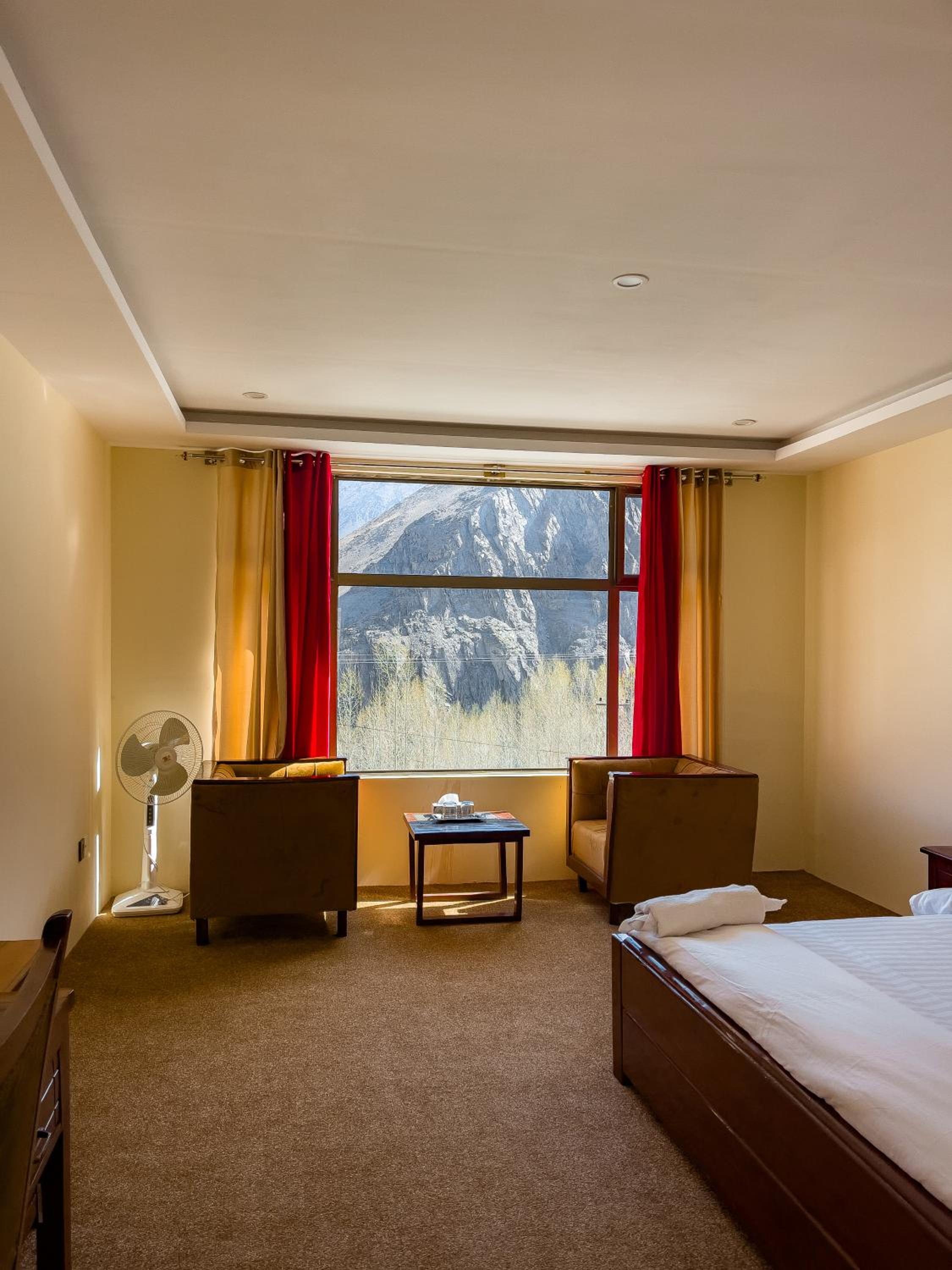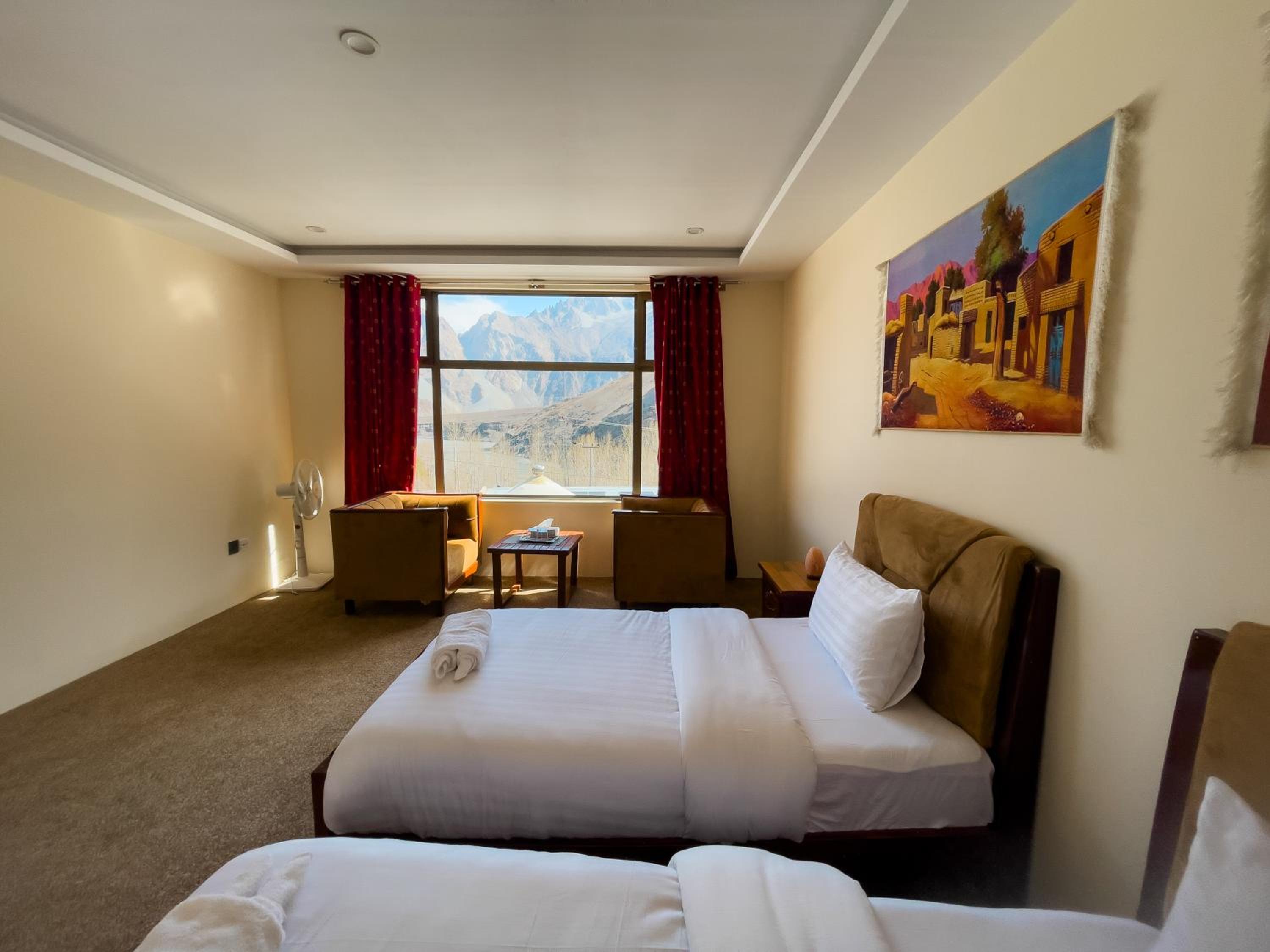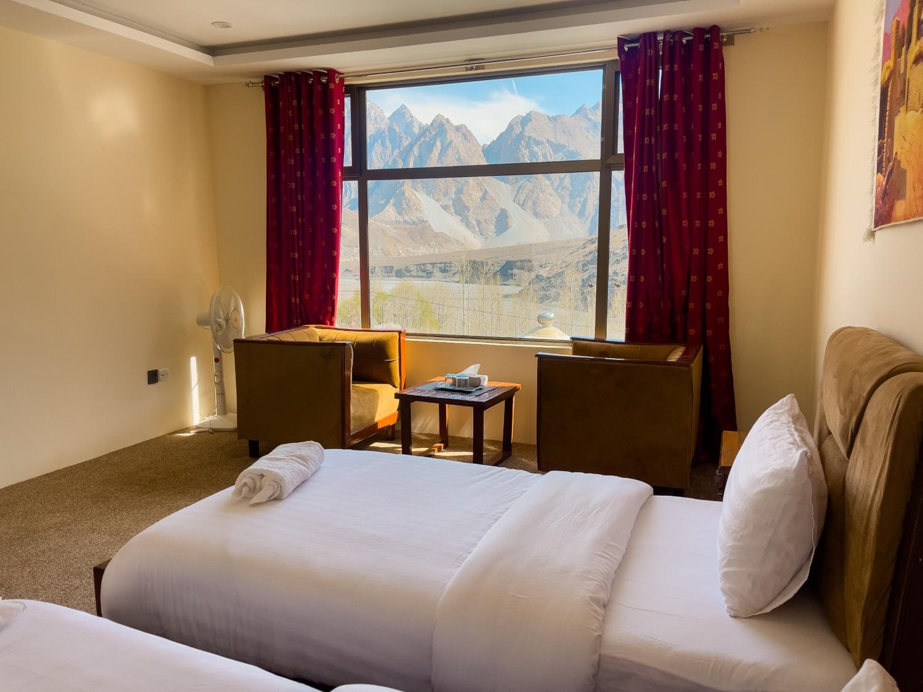 The view from our yurt's window was breathtaking, with the majestic Passu Cones creating a stunning backdrop. It was a perfect blend of traditional charm and modern comfort.