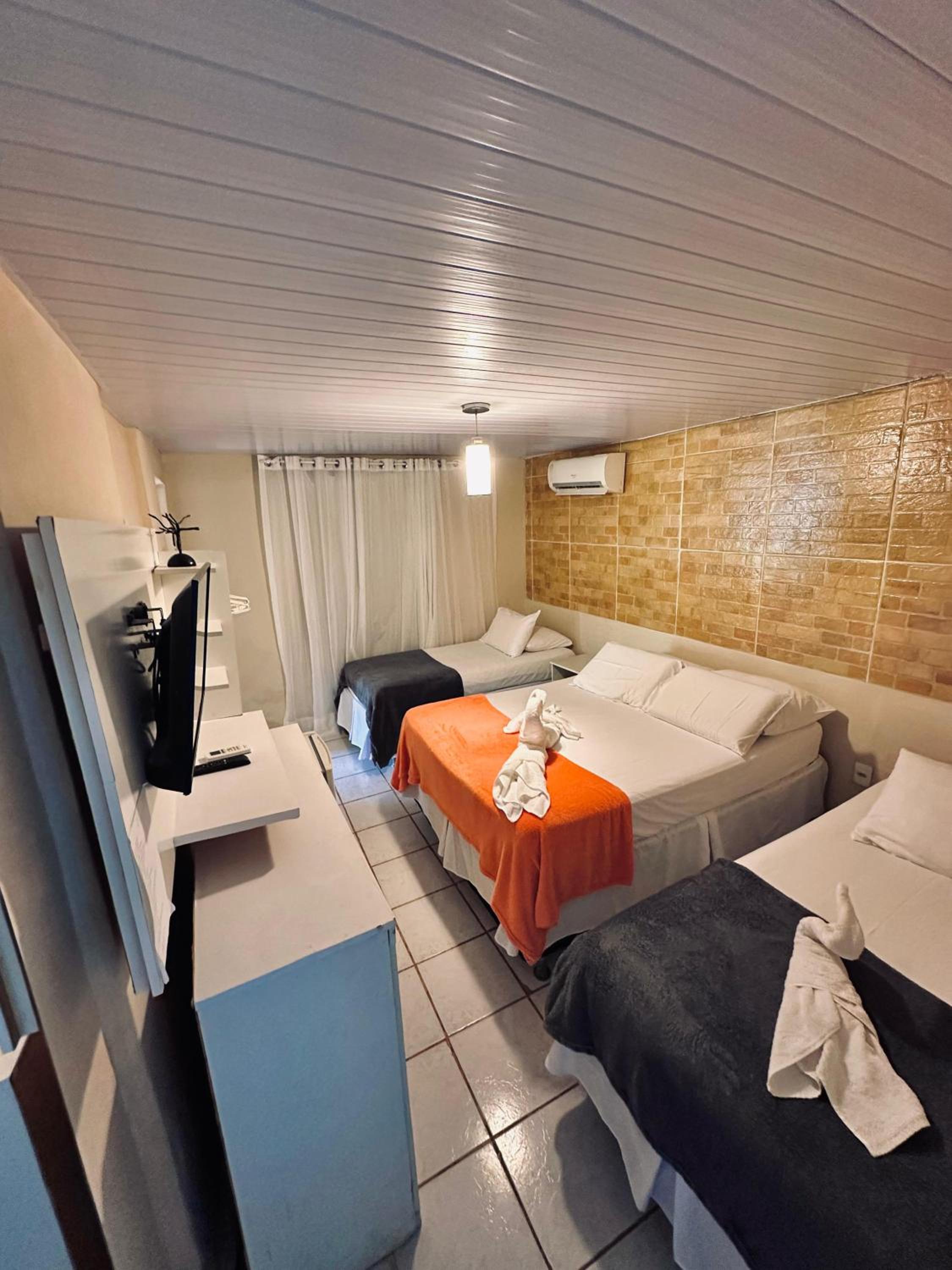 Essa pousada fica próxima a praça São Miguel, centro de partida para várias atrações. Há comércio próximo, restaurantes com bons preços, empresa de táxi, ponto de ônibus, praias, forte, igreja e próximo a praça Flamboyant. A pousada é simples. O quarto possui frigobar e ar split novos. Conseguíamos deixar as malas e mochilas em cantos do quarto mas o quarto era pequeno, o suficiente para duas pessoas. A iluminação era simples com poucos pontos de tomada. O chuveiro era elétrico com boa pressão de água. O quarto era silencioso. As paredes pareciam ter sido pintadas com cal ou tinta muito diluída pois se encostar nelas marcava os objetos e vestuário. Não era em toda parede. O serviço de limpeza de quarto era impecável, roupa de cama trocada e toalhas novas toda limpeza. O café da manhã era simples, mas com todas as opções necessárias a alimentação matinal. Poderíamos pedir opções para serem feitas na hora. A nossa estada nesta pousada foi excelente e nos permitiu curtir muito a Ilha, suas trilhas, praias e atrações com um bom descanso em local privilegiado pela proximidade de vários pontos de interesse.