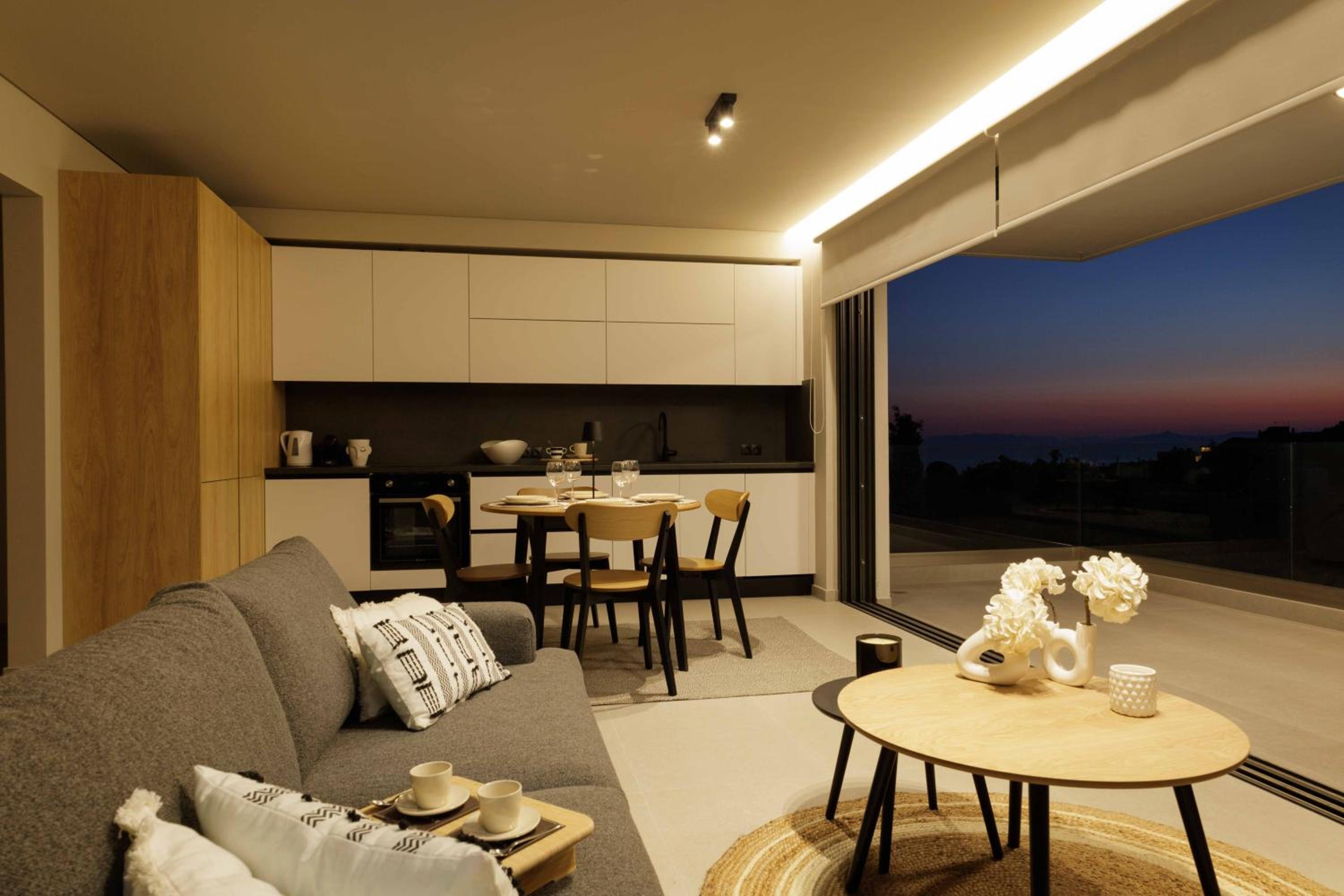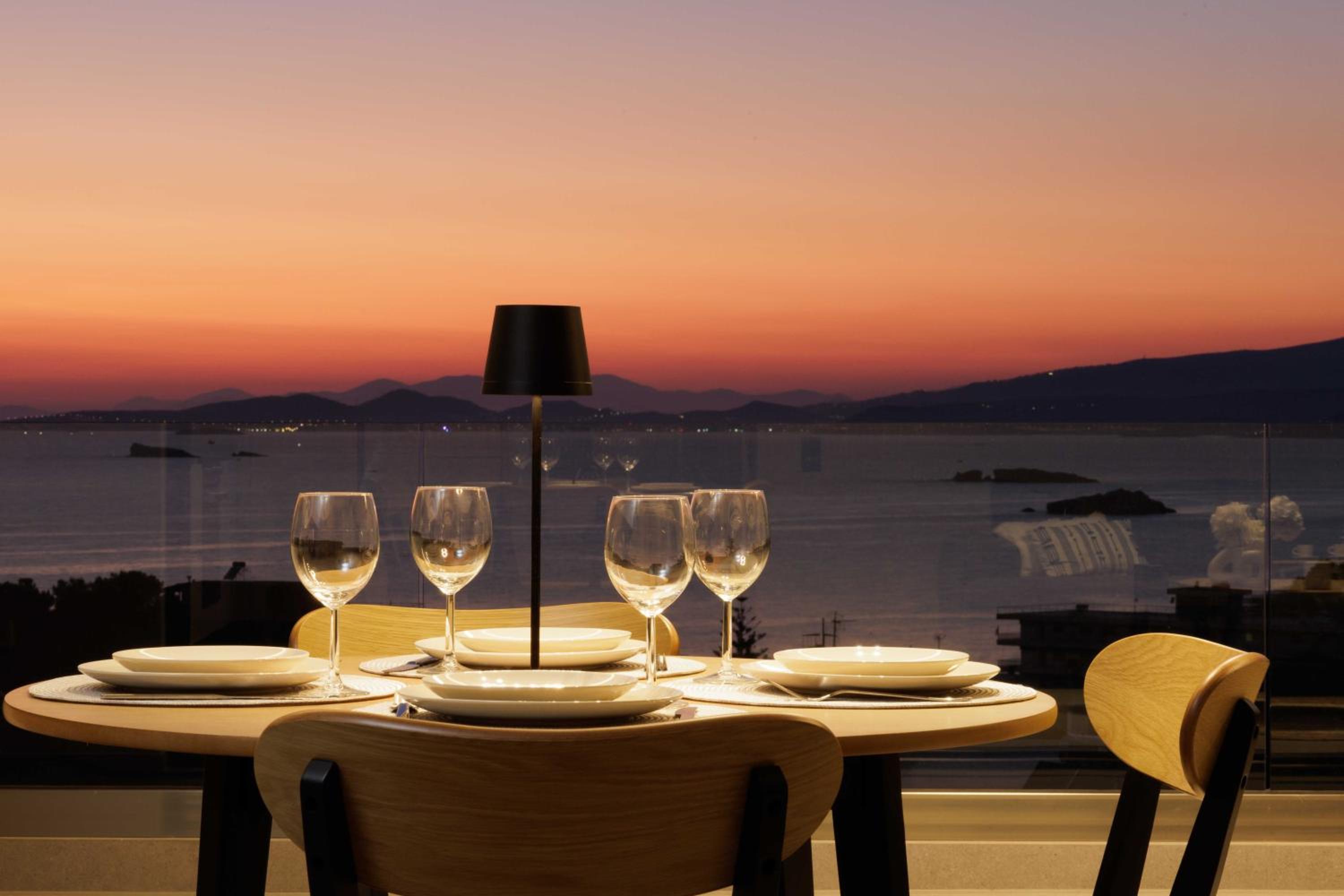 Experience a comfortable stay in Saronida steps away from the beach with spacious two-bedroom suites and a private terrace overlooking the sea.