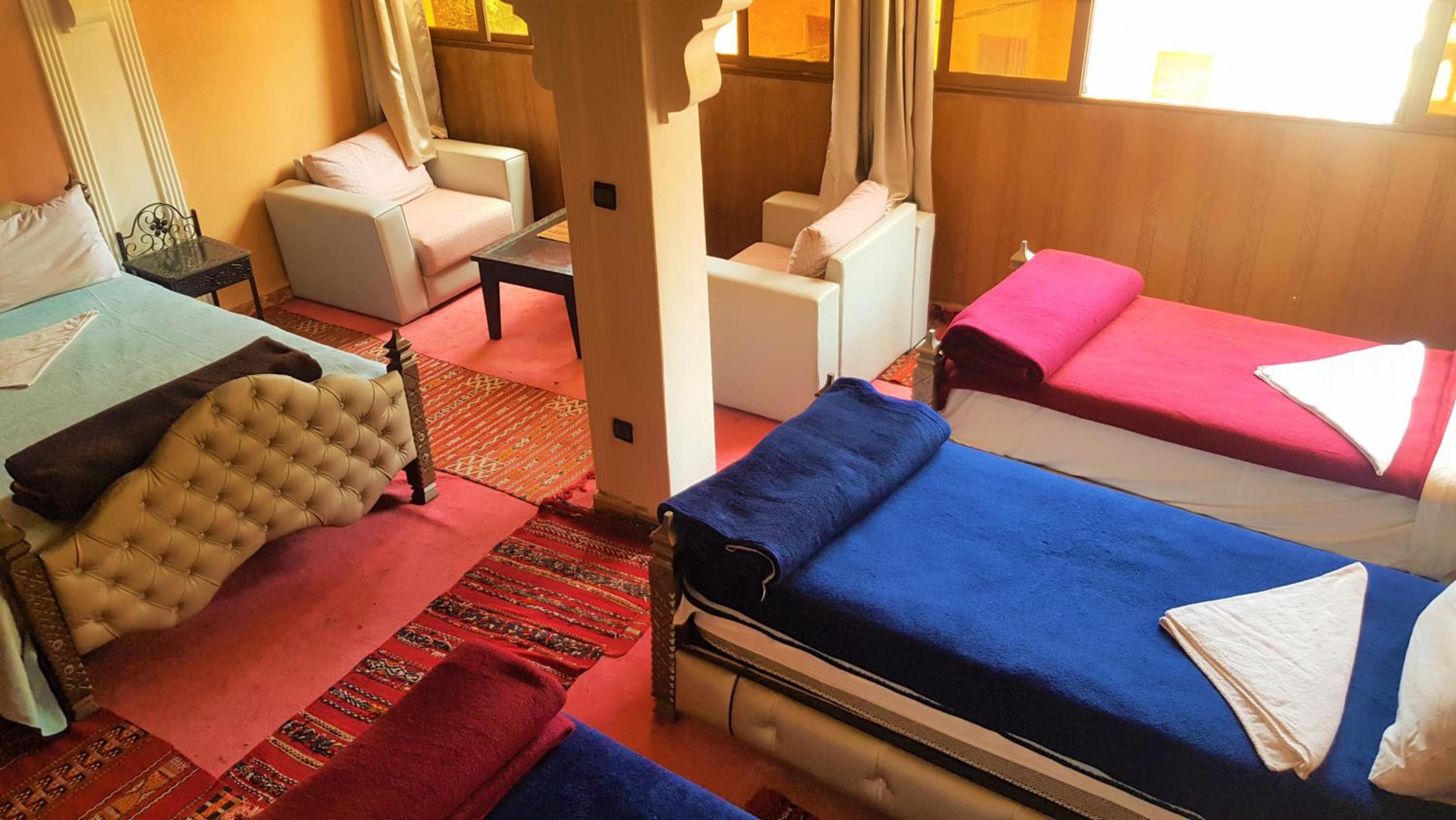 Our group consolidated here after a hike up Toubkal. We were the only guests. Convenient location to check out shops and restaurants, etc. Parking options across the road. Breakfast was outstanding. Staff was courteous. Unfortunately, no staff could be found once we realized our cold water valve in the shower wasn’t functioning. Not possible to shower with only the very hot water. 5 of us waited to cycle through one shower in another guest room. Not how we envisioned it after 12+ hours of hiking. But, we made it work.