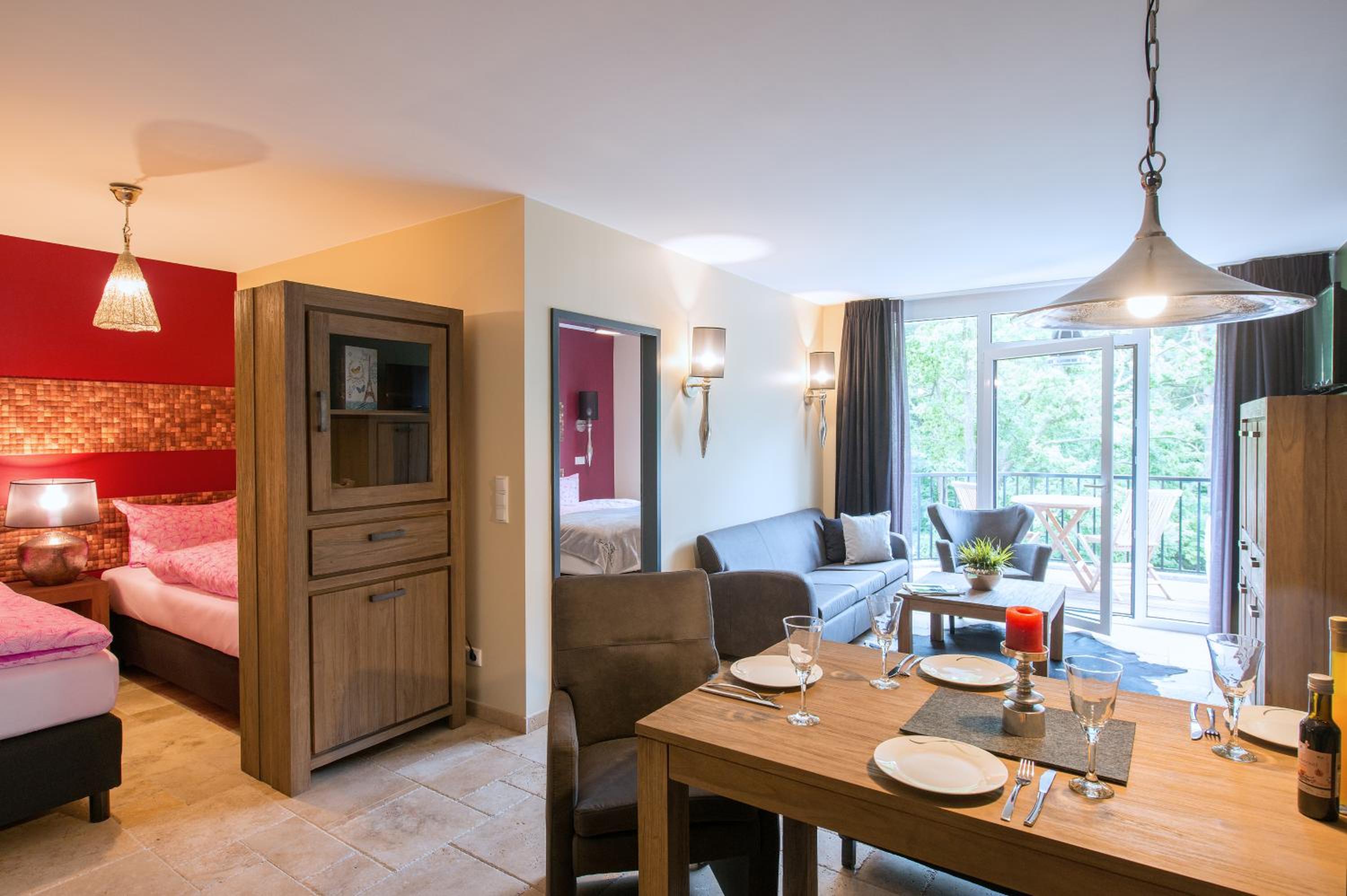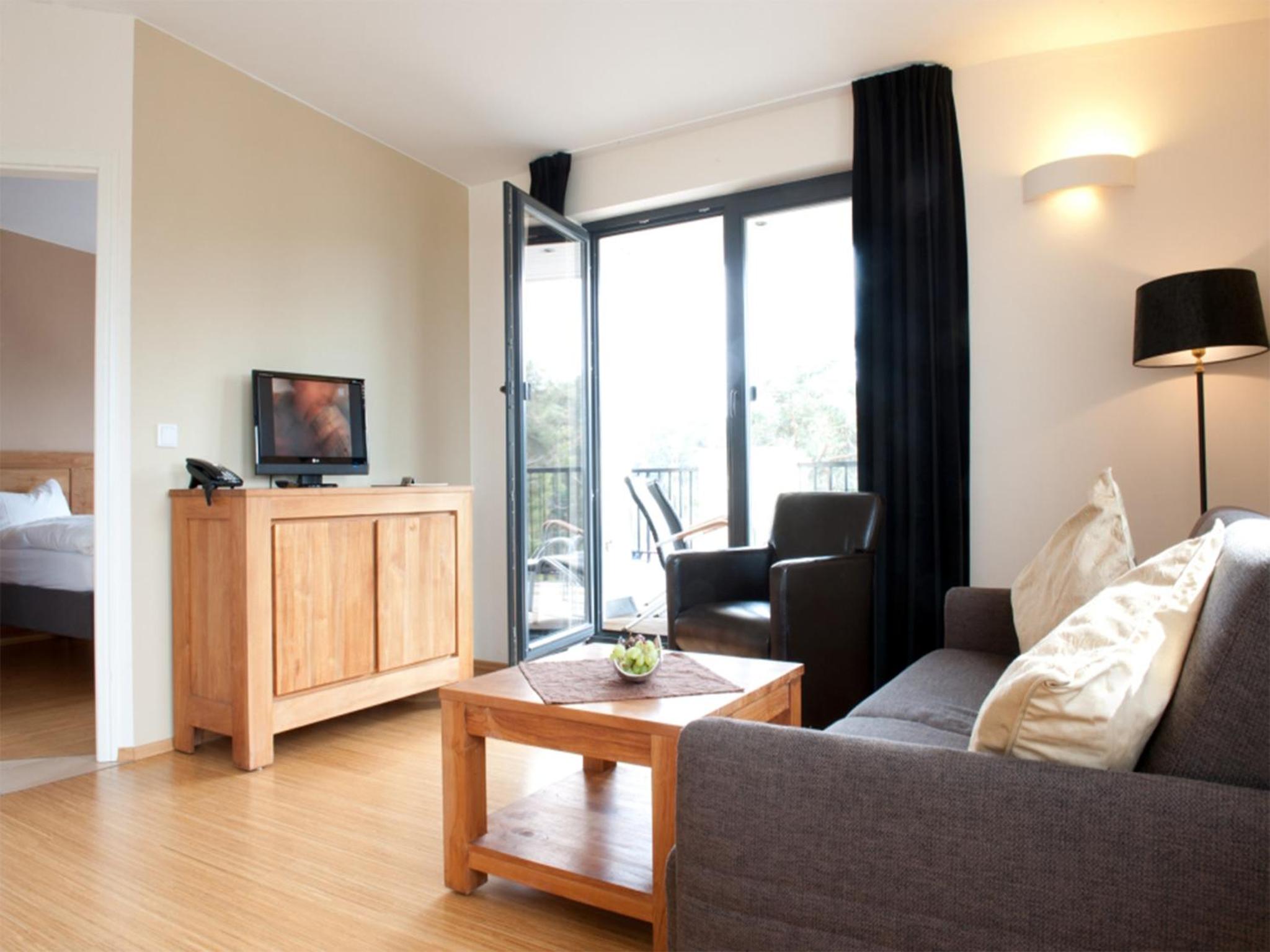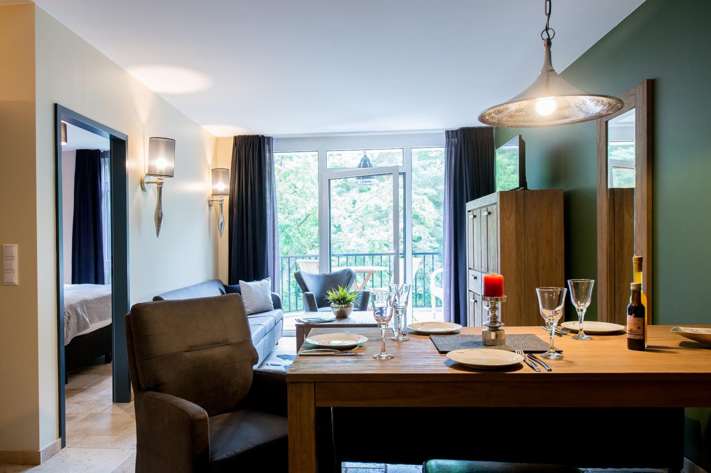 Luxurious Apartments: Aparthotel Ostseeperle Glowe offers spacious apartments with elegant teak designs, perfect for groups or families up to 4. Each apartment boasts a balcony, free WiFi, and a fully equipped kitchen.