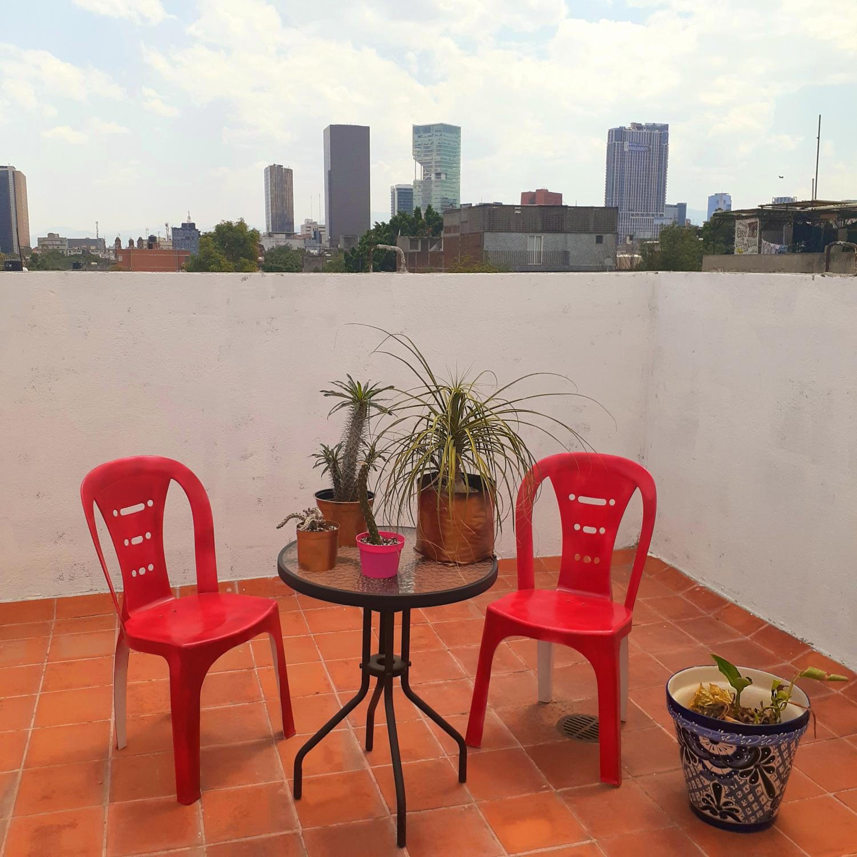 Le toit terrasse avec la vue sur mexico et une chambre agréable et calme