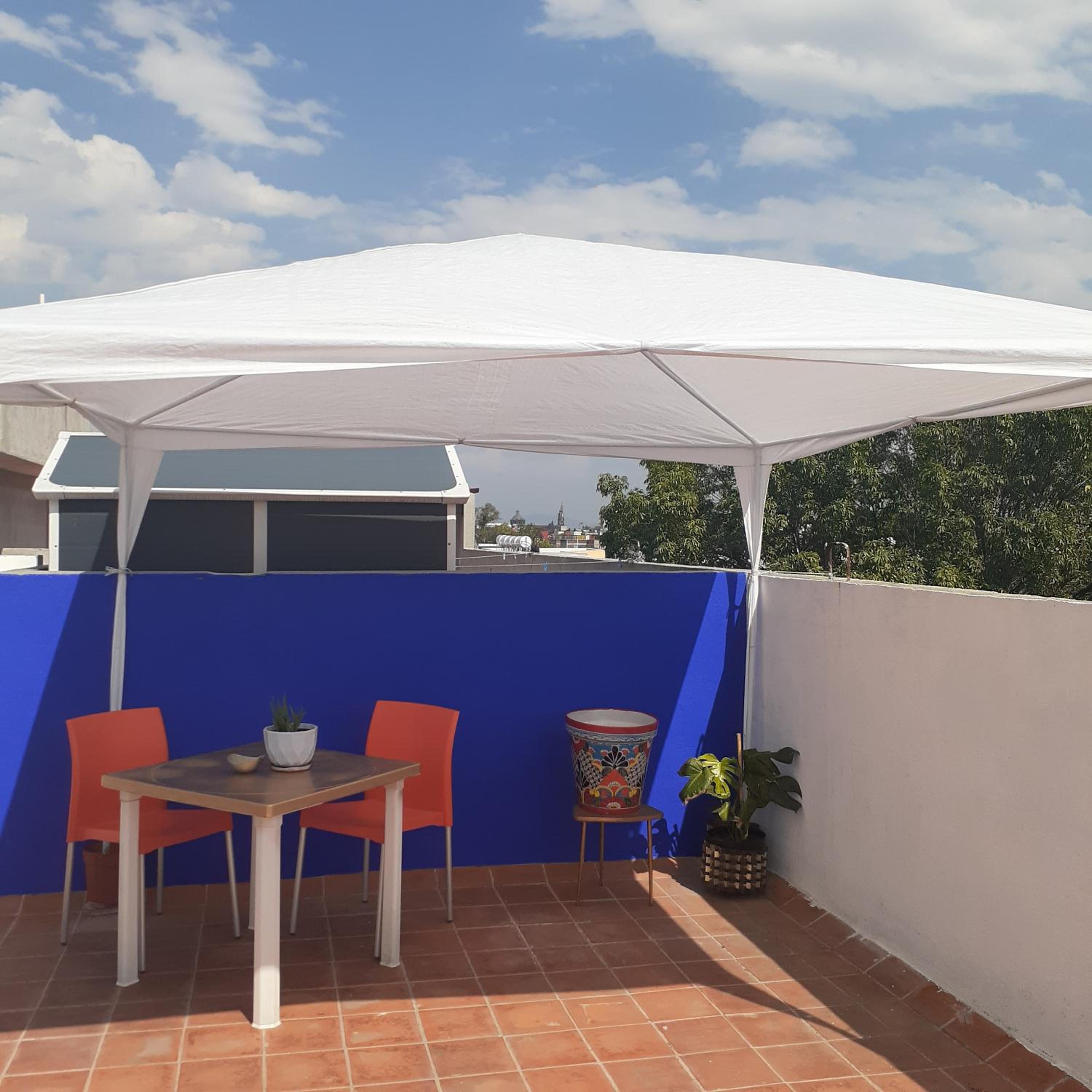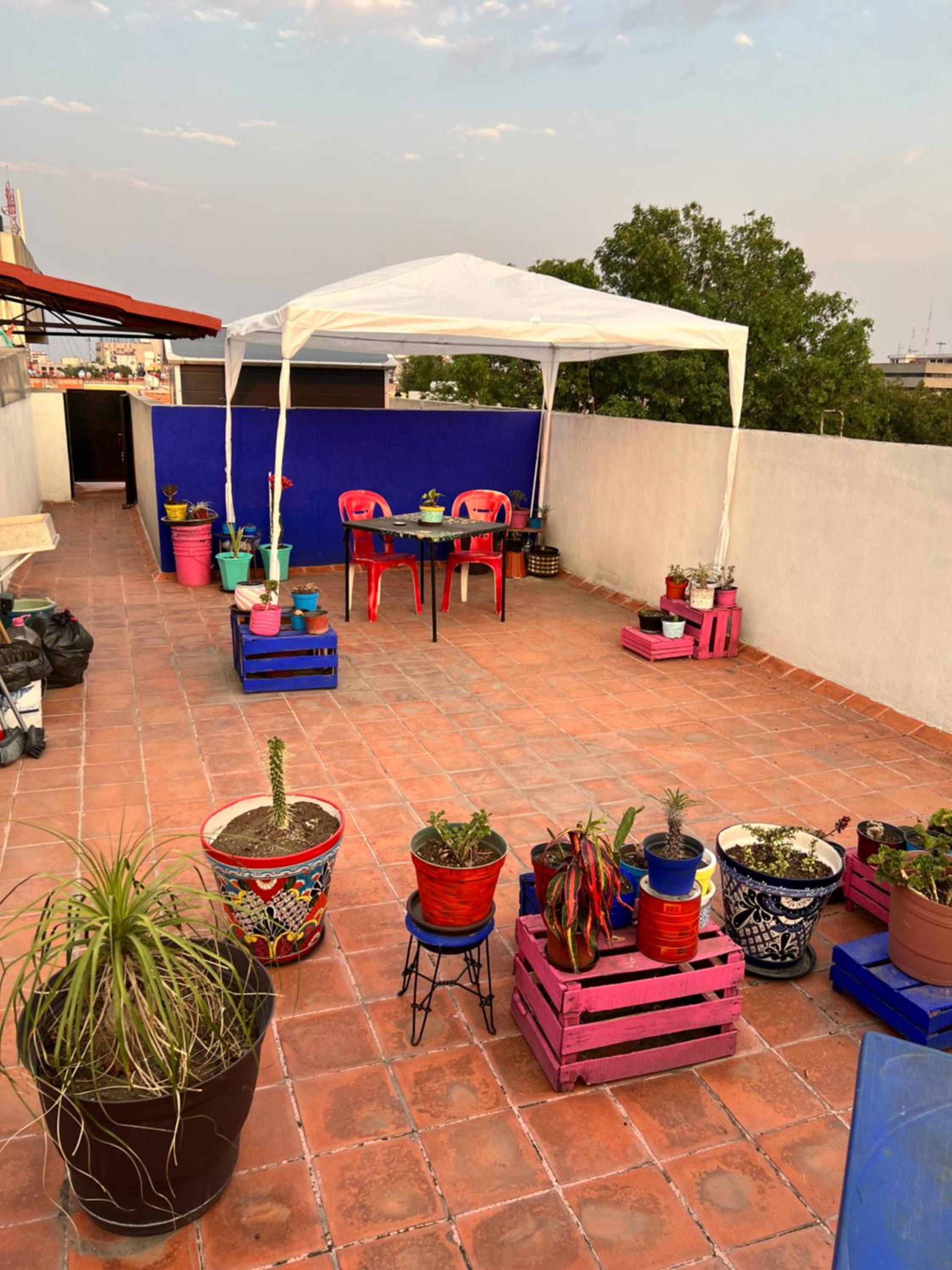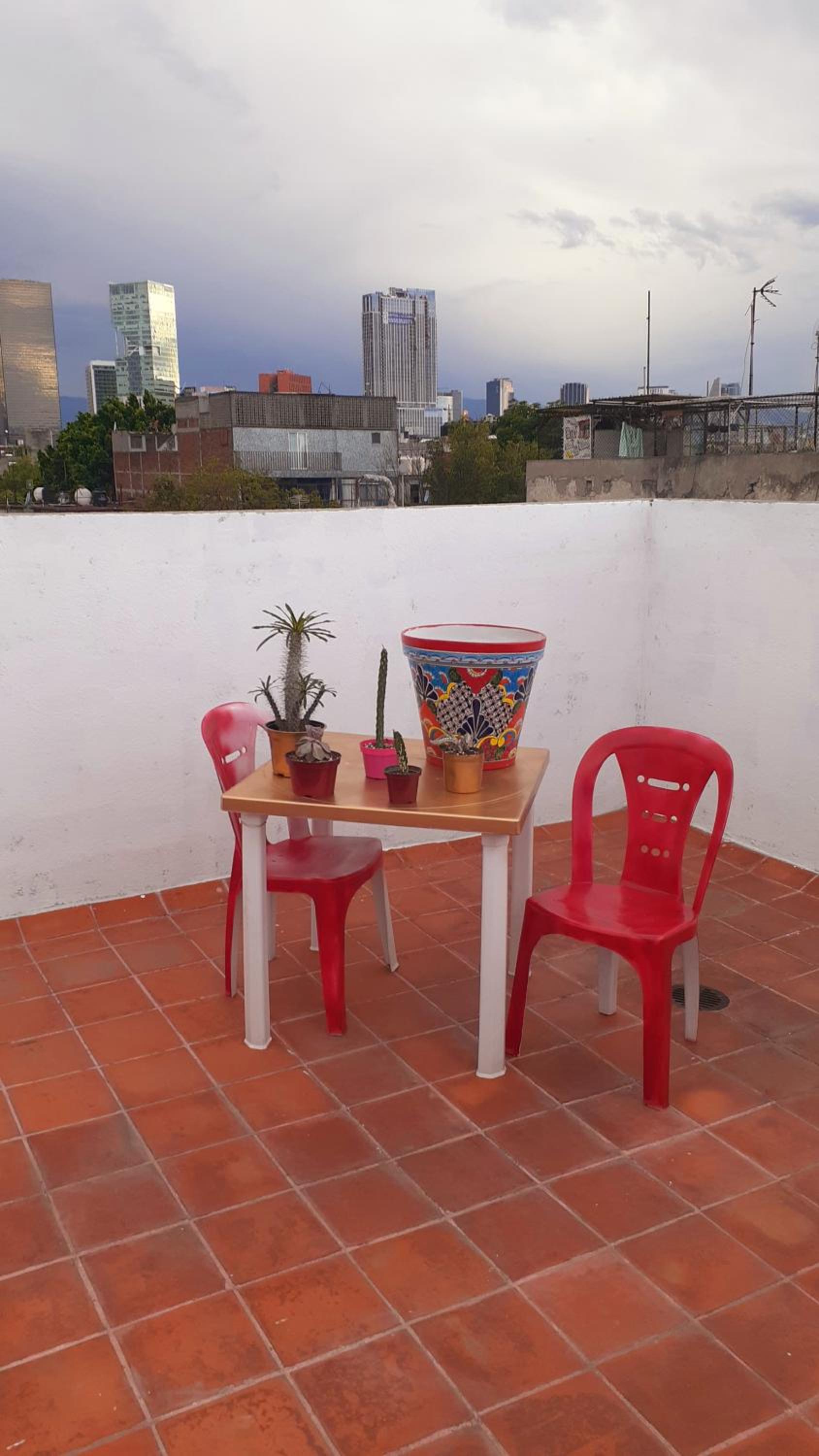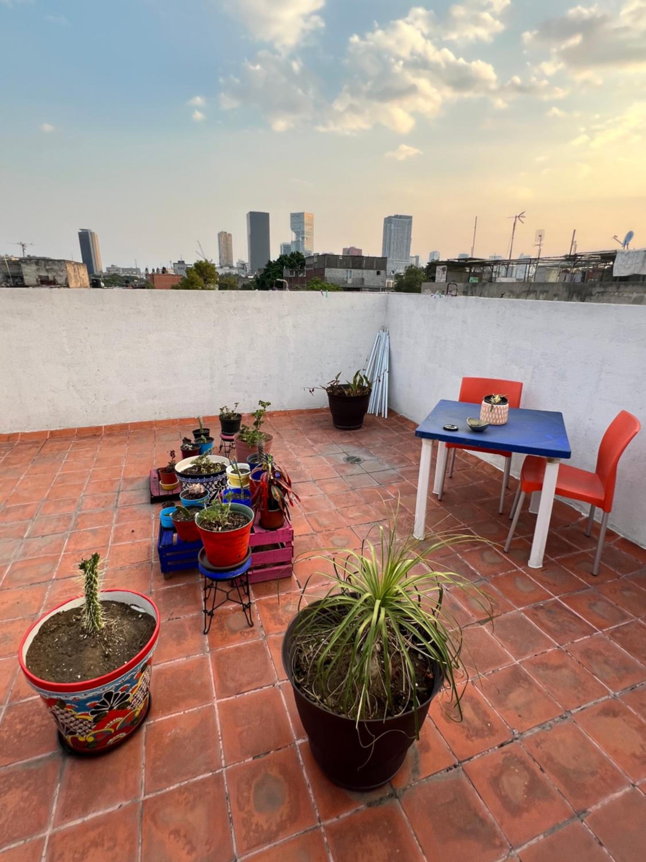 Der Dachgarten ist toll, mit einem Blick über die Dächer von CDMX. Wir konnten sogar unsere Wäsche waschen. Es ist eine sehr zentrale Lage in einem normalen Wohngebiet, sehr nahe gibt es einen großen Markt und viele kleine Lokale mit mexikanischen essen. Die Metrostation Guerrero ist nur ein paar Meter weg.