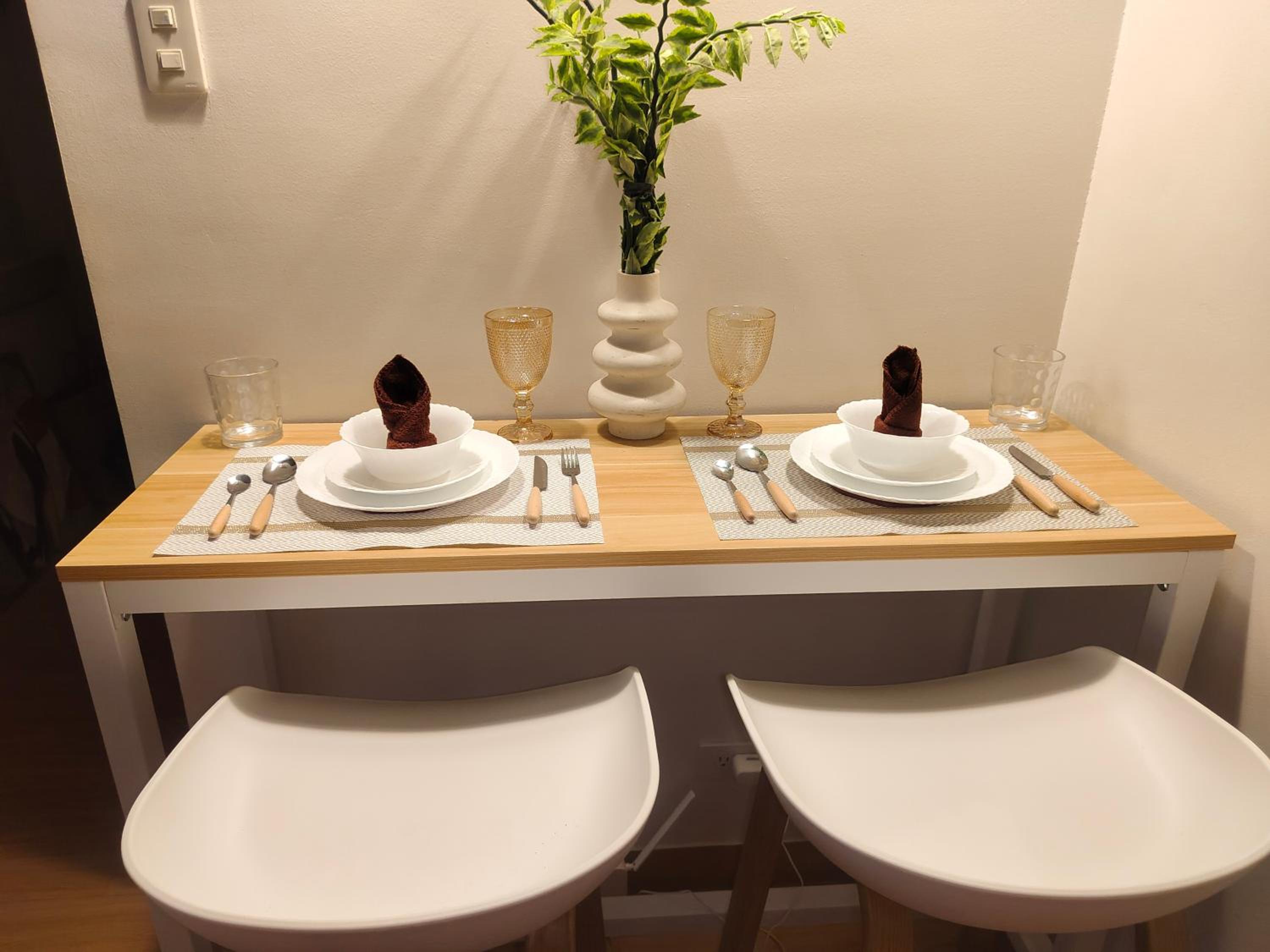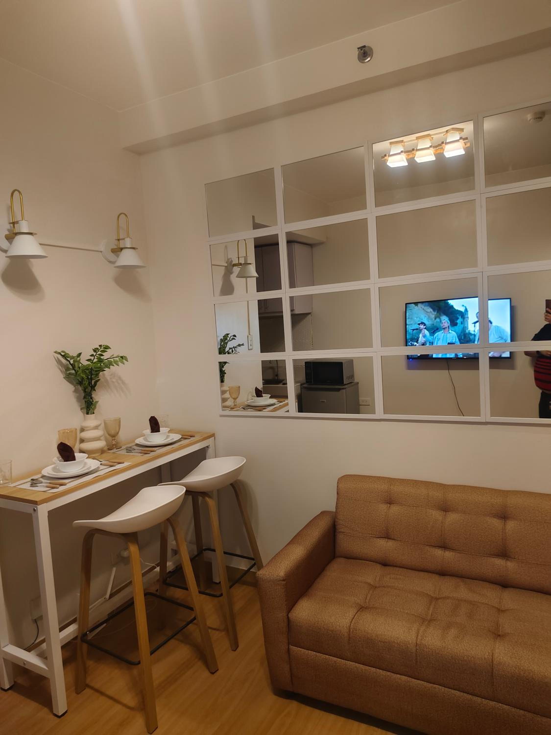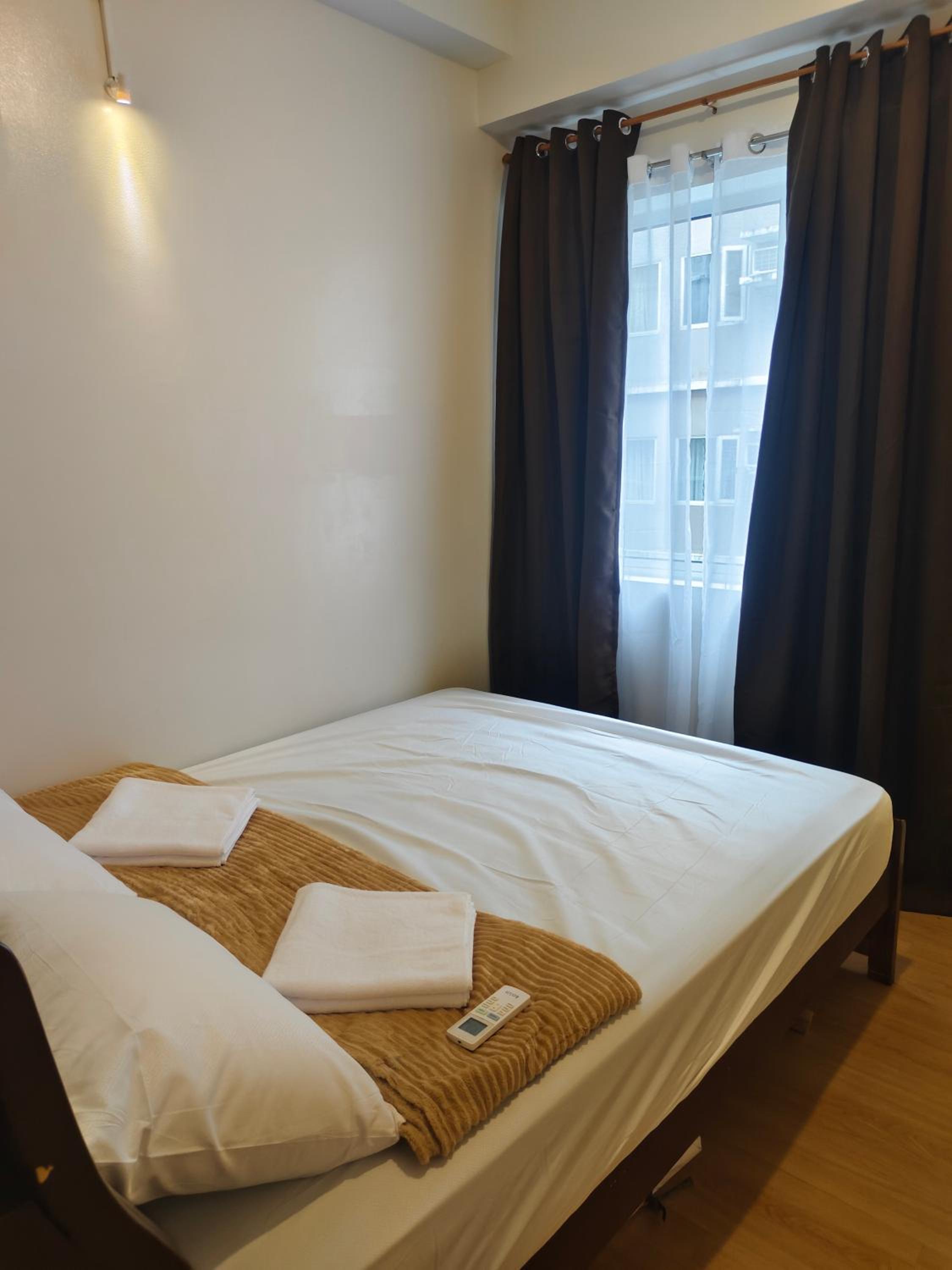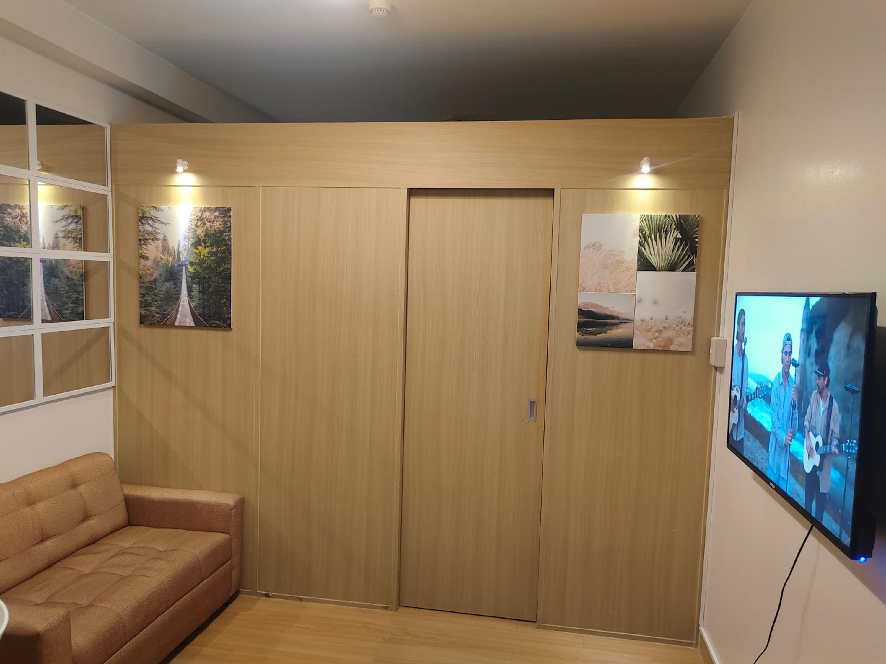 Guests at SMDC Trees Residences Condotel can enjoy the convenience of a flat-screen TV, microwave, and free WiFi in each room.