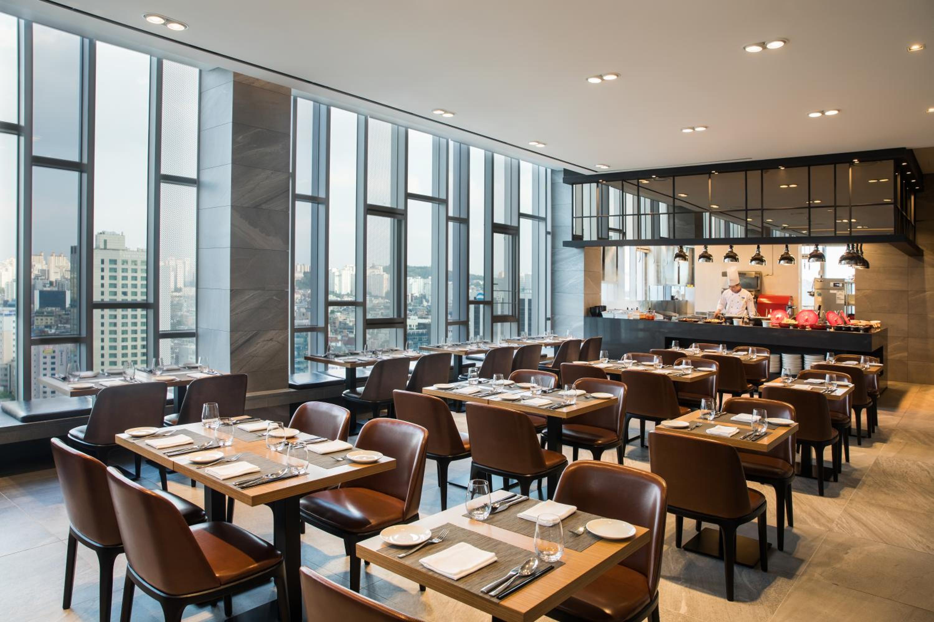 Indulge in a variety of international, Korean, and Chinese dishes at the on-site restaurant. Start your day with an à la carte breakfast on weekdays or a buffet spread on weekends. Don't forget to visit the salad bar for a healthy treat.