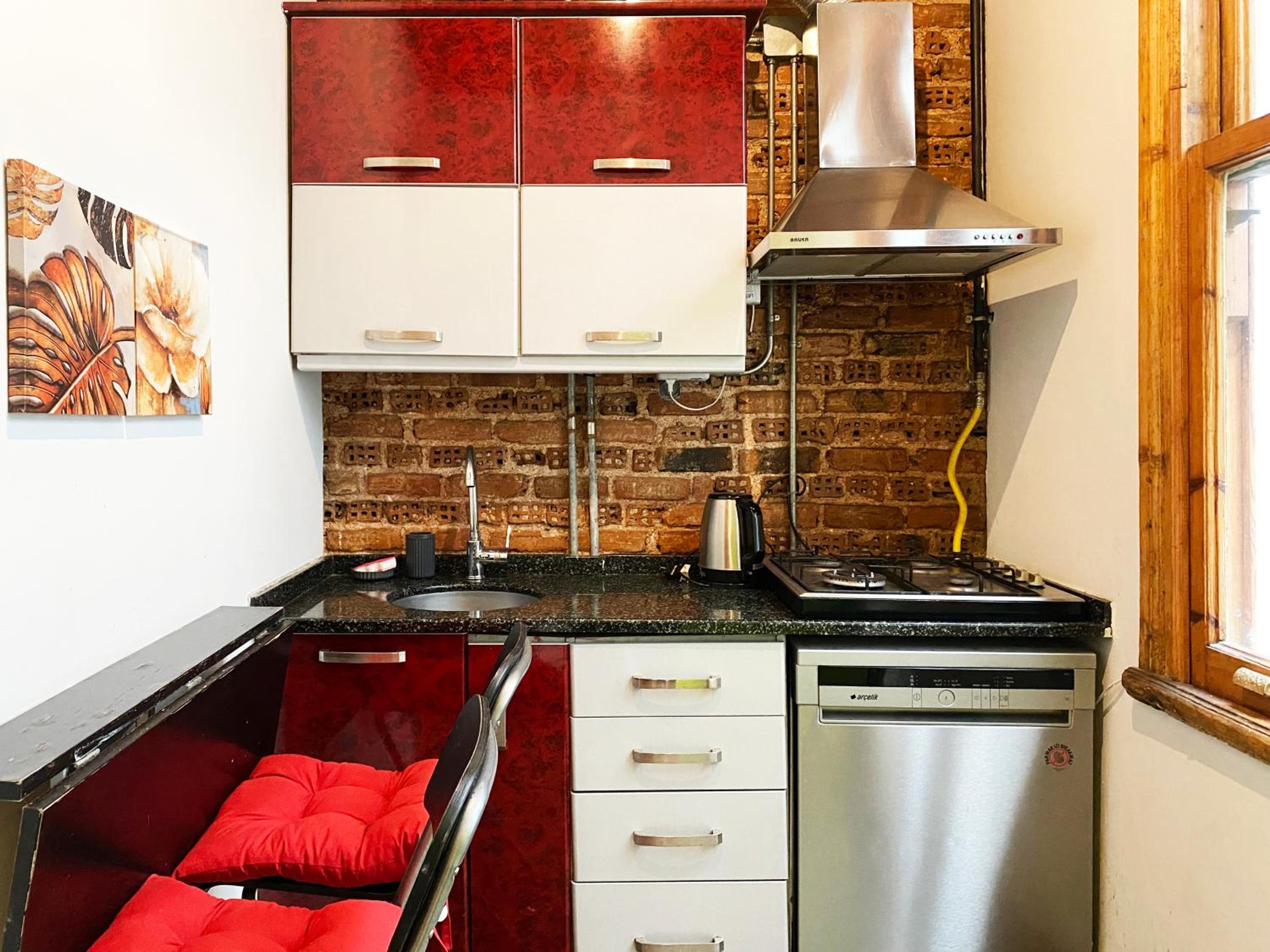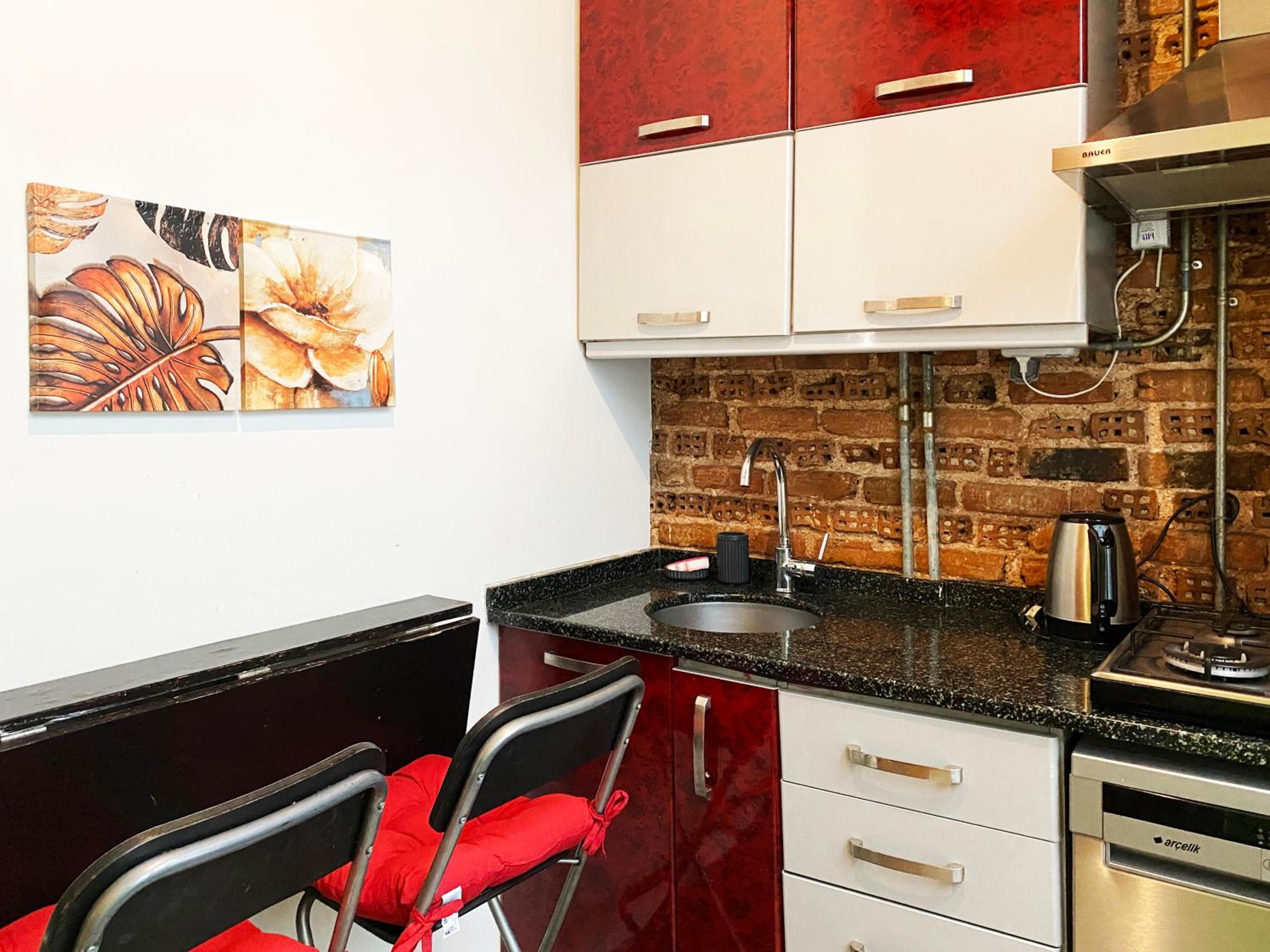 Perfect location for our trip in Istanbul, we stayed in the studio which was located on the top floor, ideal when also using the lovely rooftop terrace. The room was comfortable and clean and we enjoyed the experience. Communication was easy for check in and the use of washing machine was a nice bonus in the apartment.