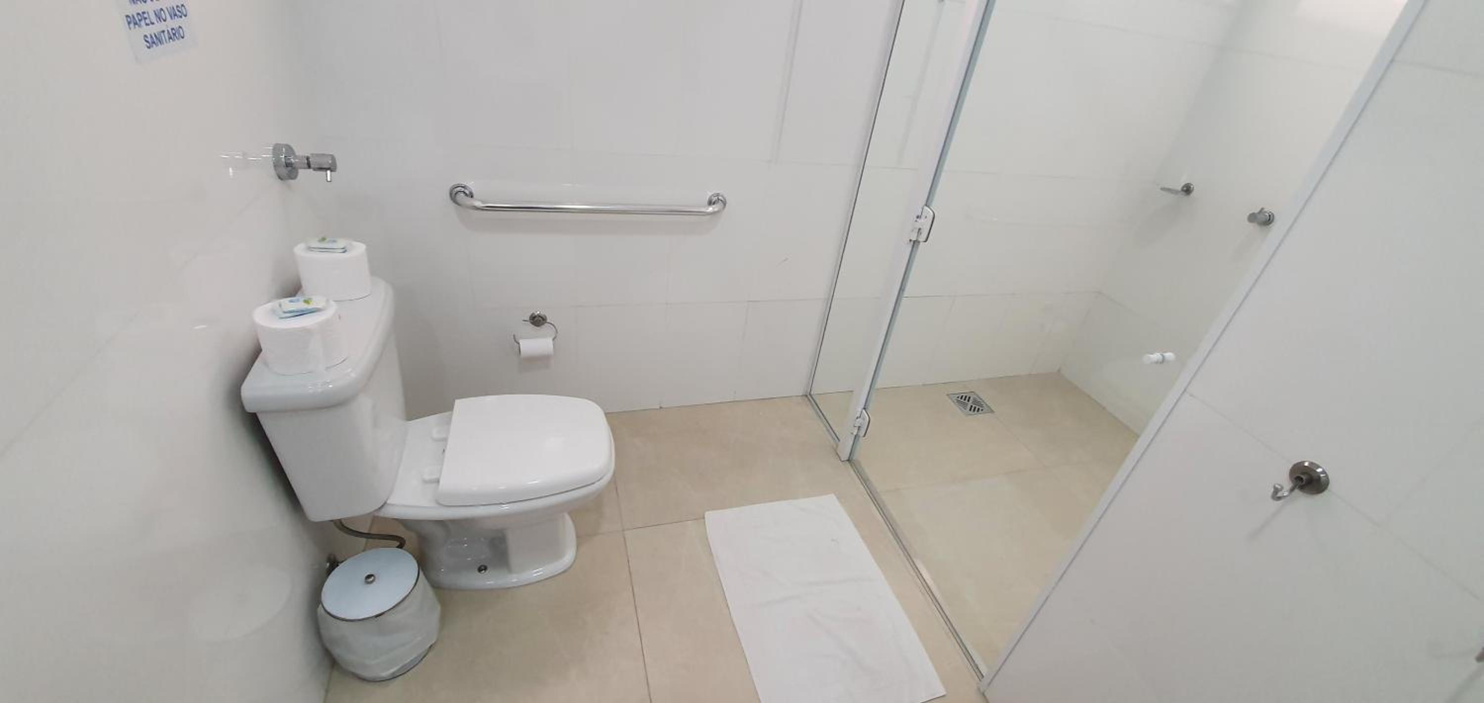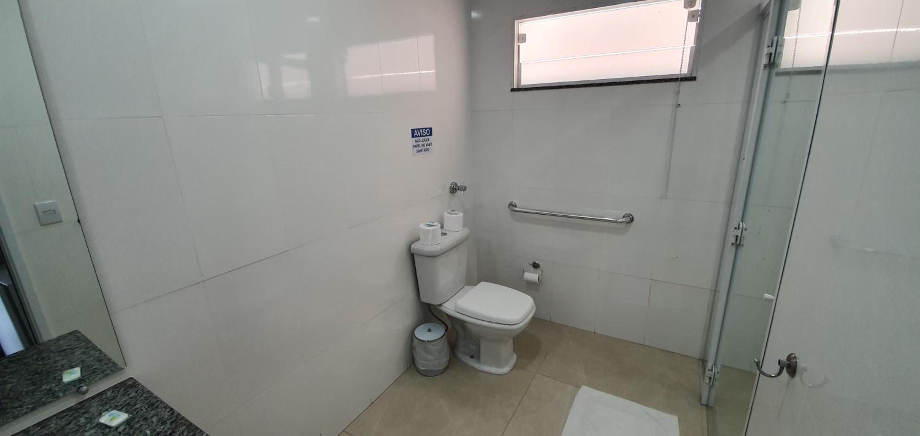 Box de banho com desnível e a água espalhou por todo banheiro, causando tratarmos ao entrar no banheiro a qualquer momento.
