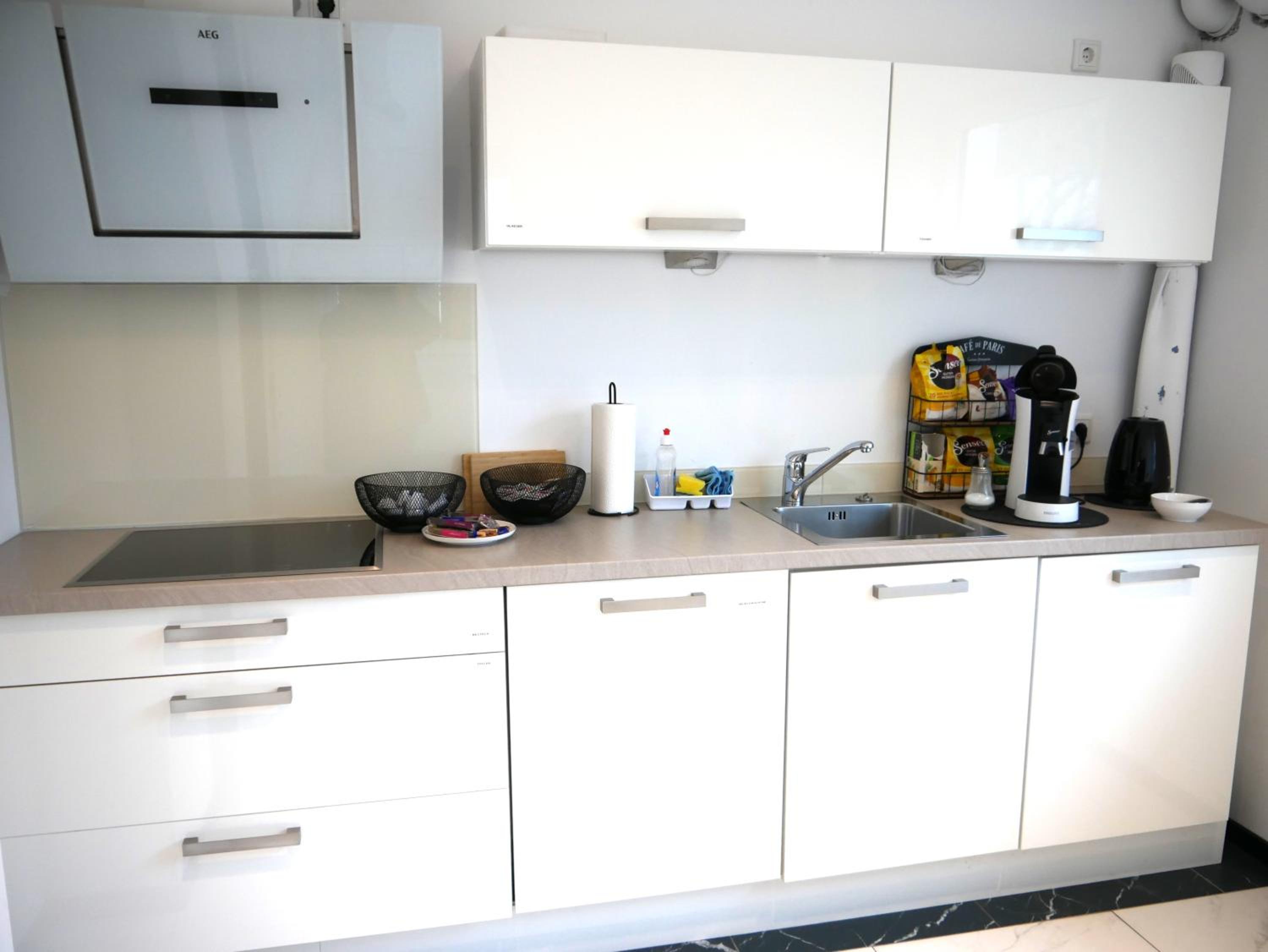 Schöne Ausstattung. (Sogar der Föhn passte zum Ambiente) Kuscheliges bequemes Bett, große Dusche, genügend Platz. Man konnte sich in der Küche auch eine Kleinigkeit zu essen machen und für ein leichtes Frühstück war auch alles da.
