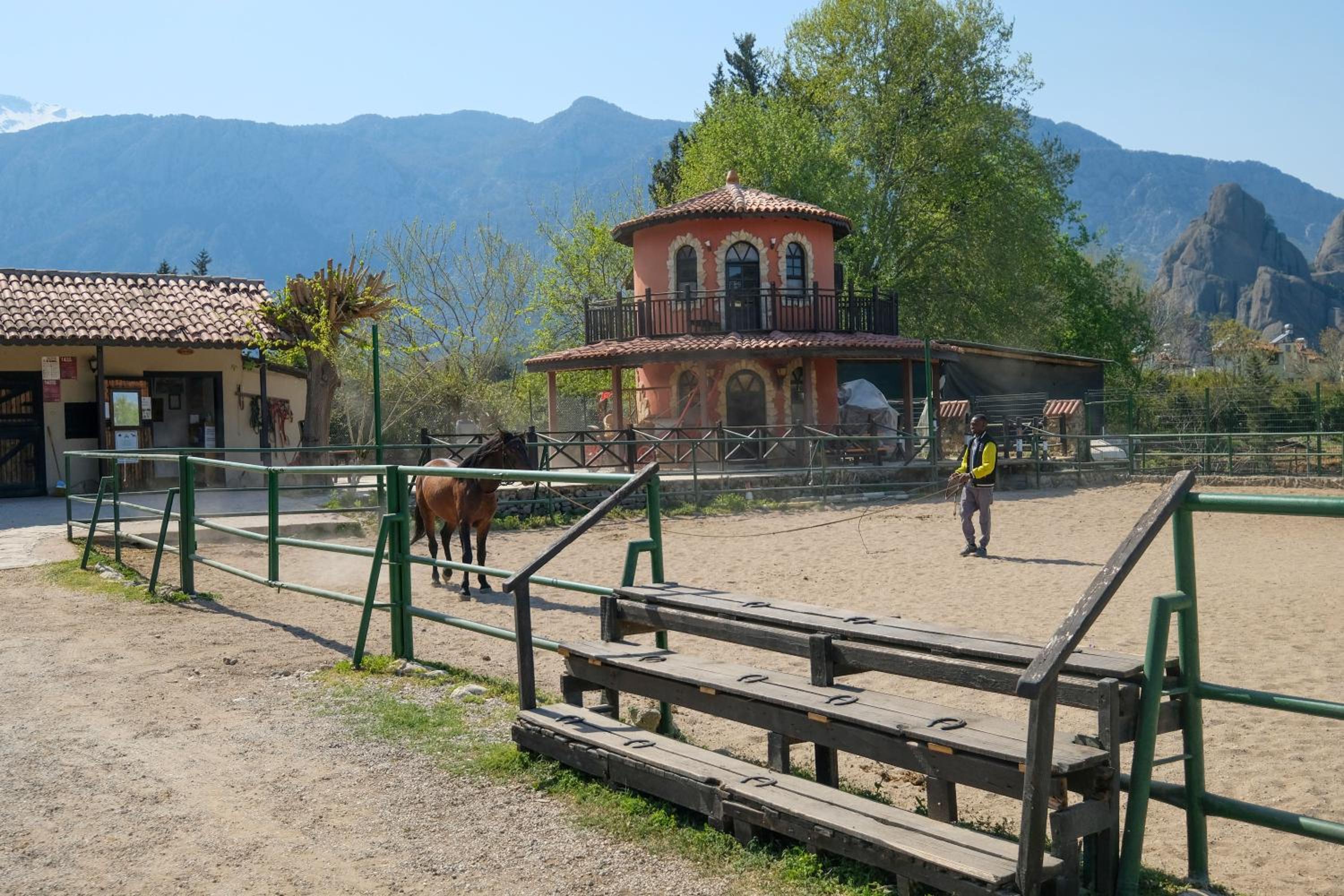 The surrounding nature is stunning, with the hotel nestled among pine trees in the mountains and offering a beautiful view of the twin-peaked mountain. An amazing option is horseback riding, especially if you’re a big fan – there are different routes available, and the prices are very reasonable. The pool stays open late, allowing for a wonderful swim in the evening accompanied by the sound of cicadas.