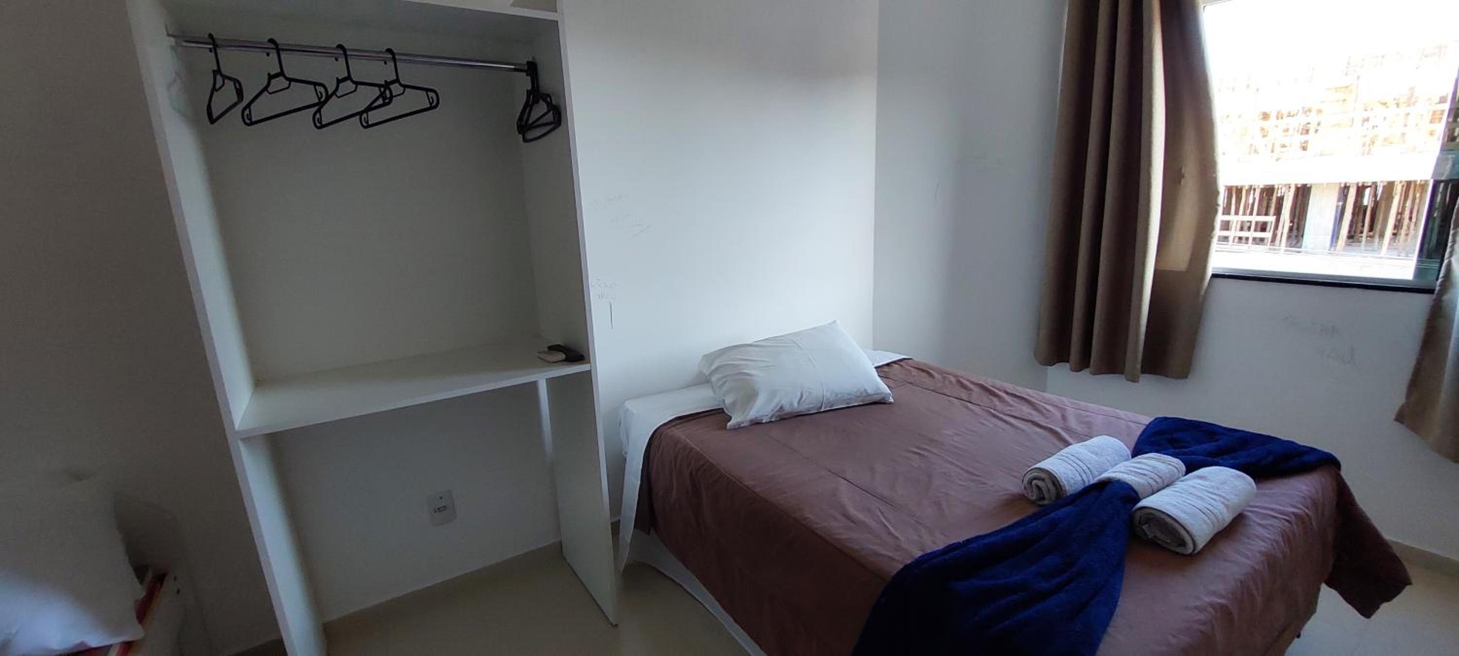 Sem tomadas no quarto ( pra carregar o celular tivemos que desligar a geladeira ou a tv)