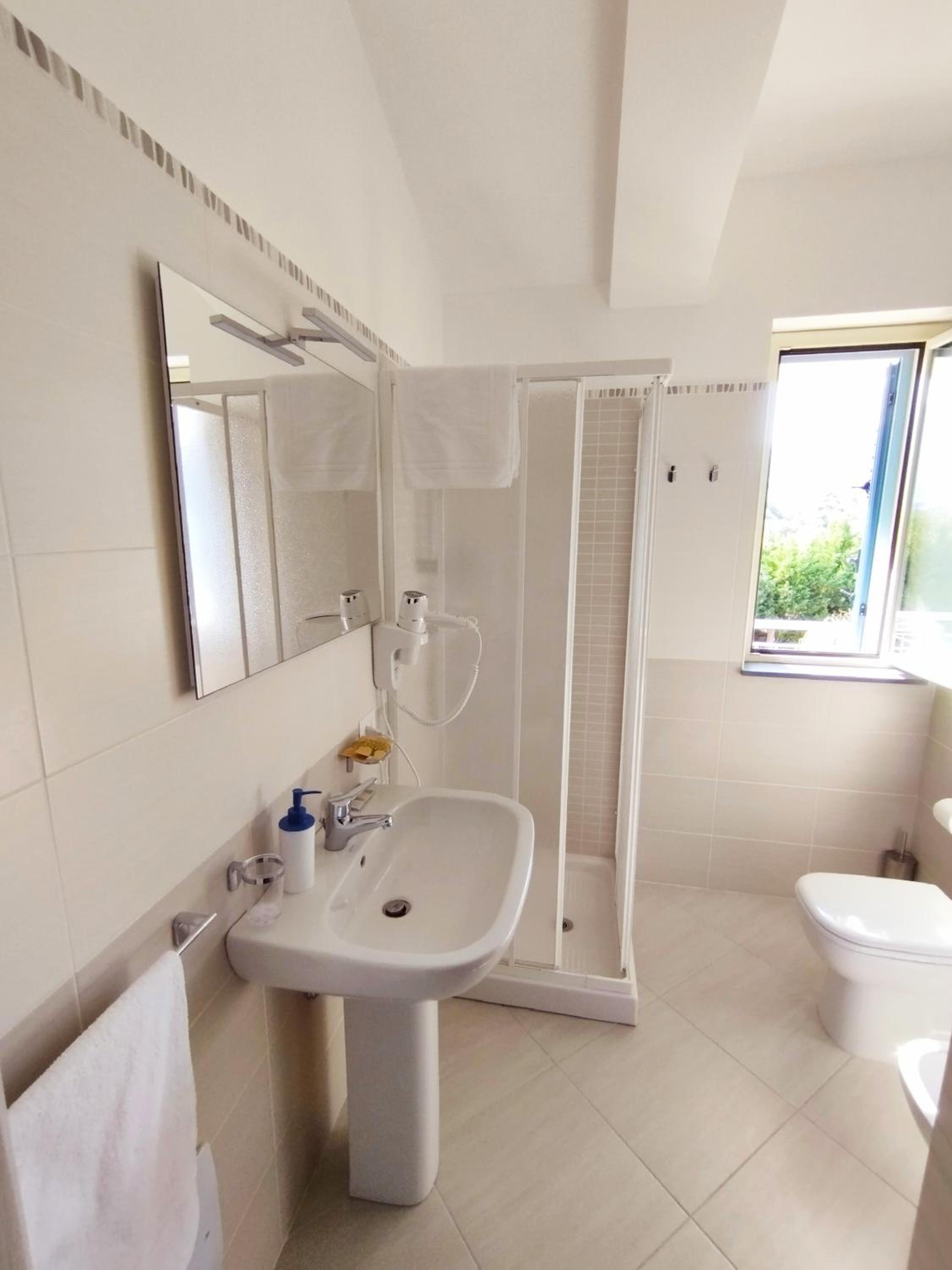 Nowocześnie, super czysto, kompleksowo wyposażona kuchnia. W łazience pralka. Obsługa na wysokim poziomie. Osoby w recepcji bardzo pomocne. W recepji można kupić kawe i coś do przegryzienia. Brak problemów z parkowaniem. Obiekt ma zamykaną bramę na noc. Możliwość korzystania z dużego basenu. Niedaleko do plaży i małych włoskich miasteczek. Czy napisałem już że było bardzo czysto? :)