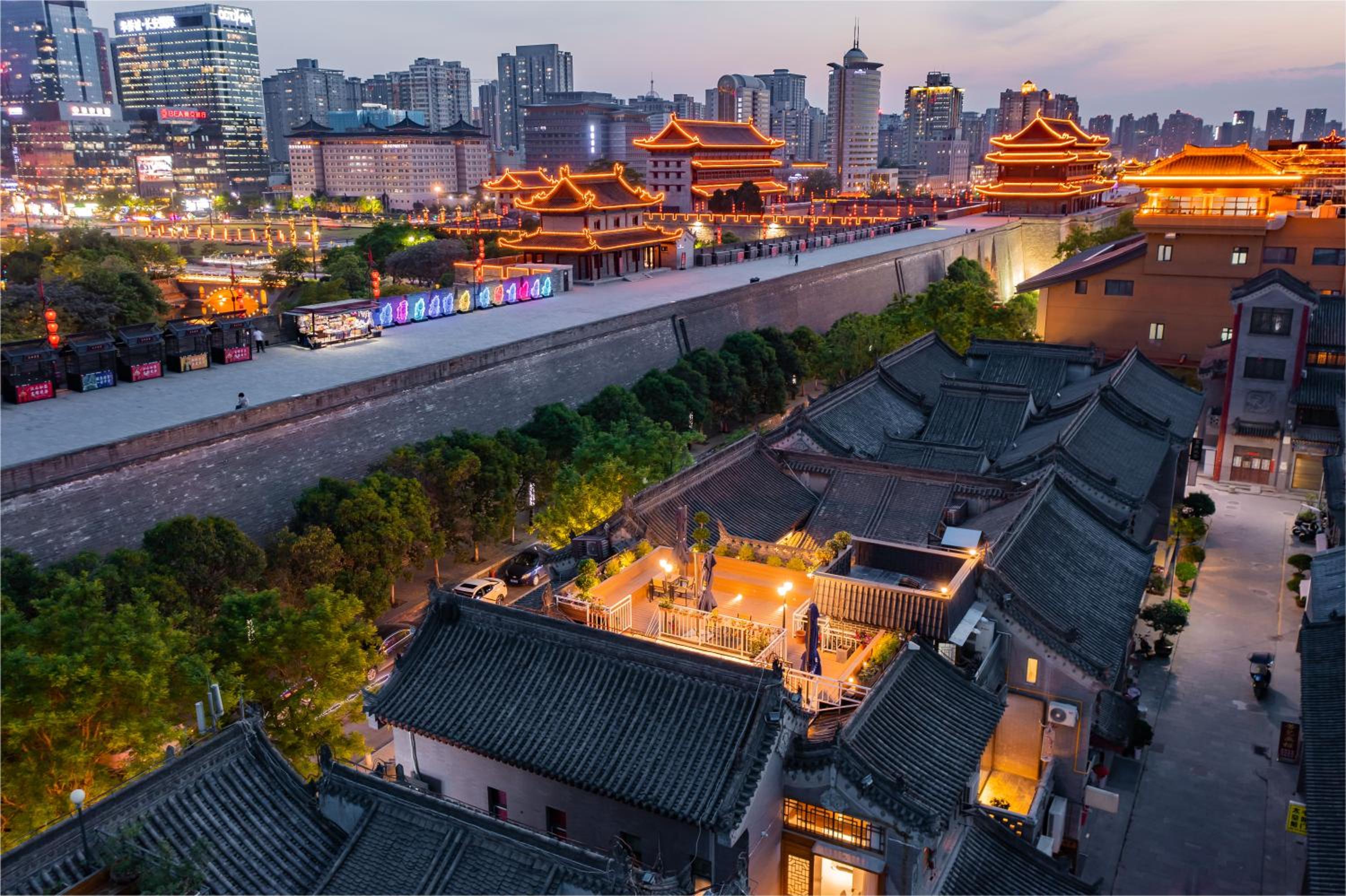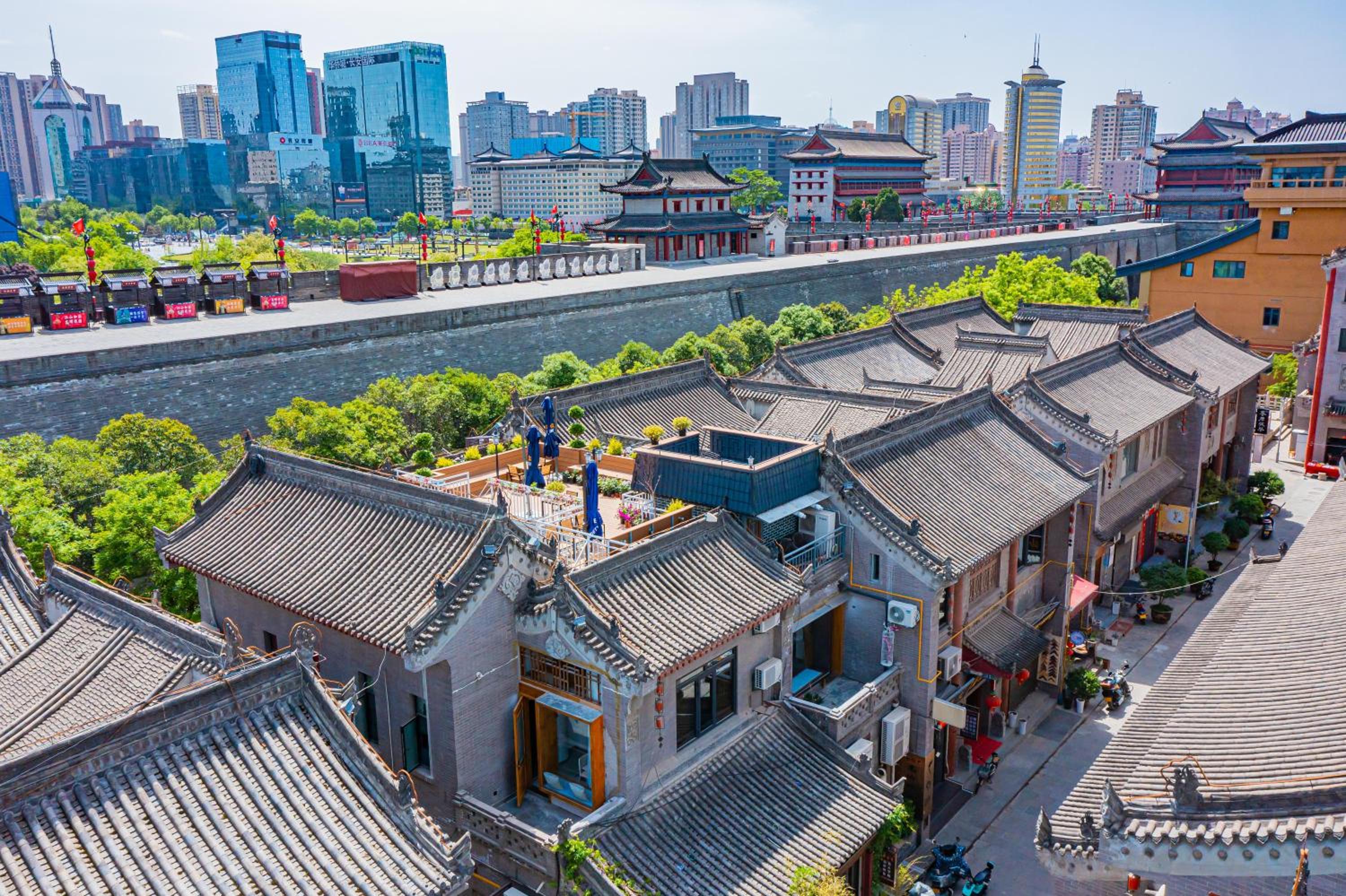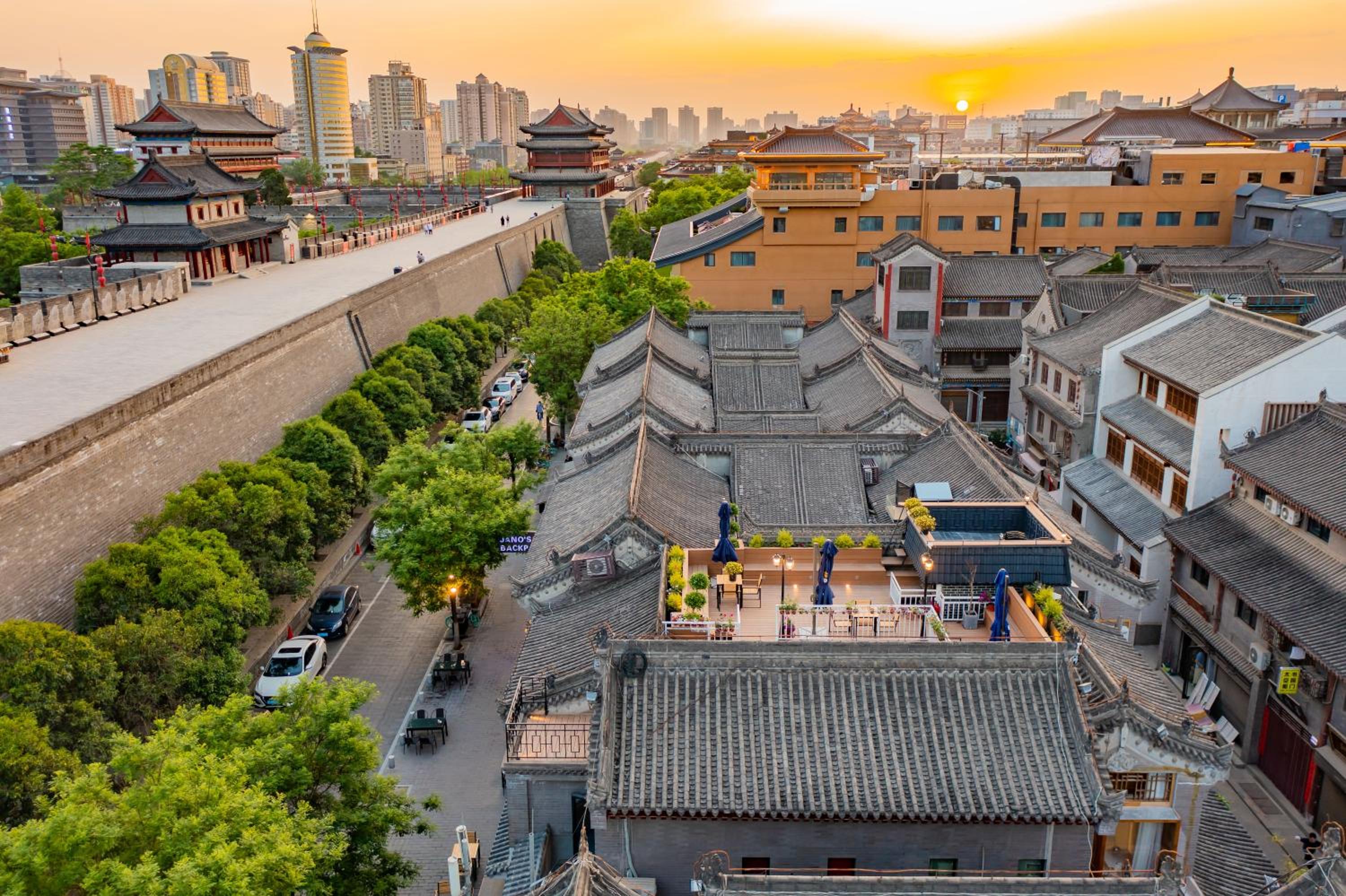 The position is fantastic. Right next to the wall, near the metro, round the corner from the Forest of Steles museum. Staff really helpful booked us taxis and arranged everything. A very lively district. We totally loved this place - it has lots of character. Great roof terrace with amazing view of wall. Very laid back!