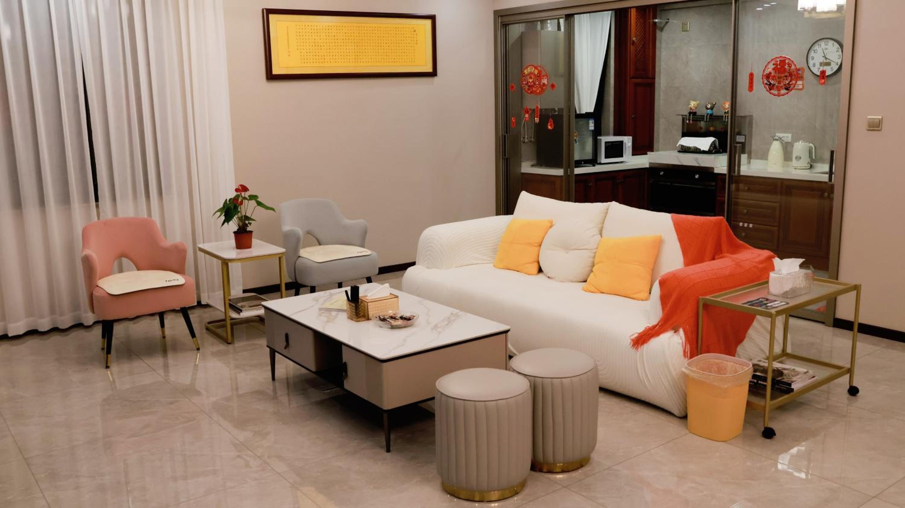 Diese Wohnung liegt direkt über einem Pub, was wir aber vorher wussten und uns dementsprechend Ohrstöpsel mitgenommen haben. Für uns war die Lage top, da sie direkt an der Altstadt Mauer und ganz in der Nähe der Bars und Geschäfte liegt. Die Einrichtung ist einfach, aber dennoch gemütlich und chinesisch. Es gibt einen kleinen Balkon und ein Tee Zimmer. Für uns war die Wohnung (Changle) ideal, da wir als Familie zu viert hier wohnen konnten. Für eine Freundesgruppe ist sie sicherlich nicht optimal, da die Waschbecken frei im Flur sind und auch die Toilette nur eine Klapp Duschtür besitzt. An der Rezeption wird nur rudimentär Englisch gesprochen, was die Kommunikation erschwert. Bezahlen kann man auch nur mit Alipay oder WeChat!