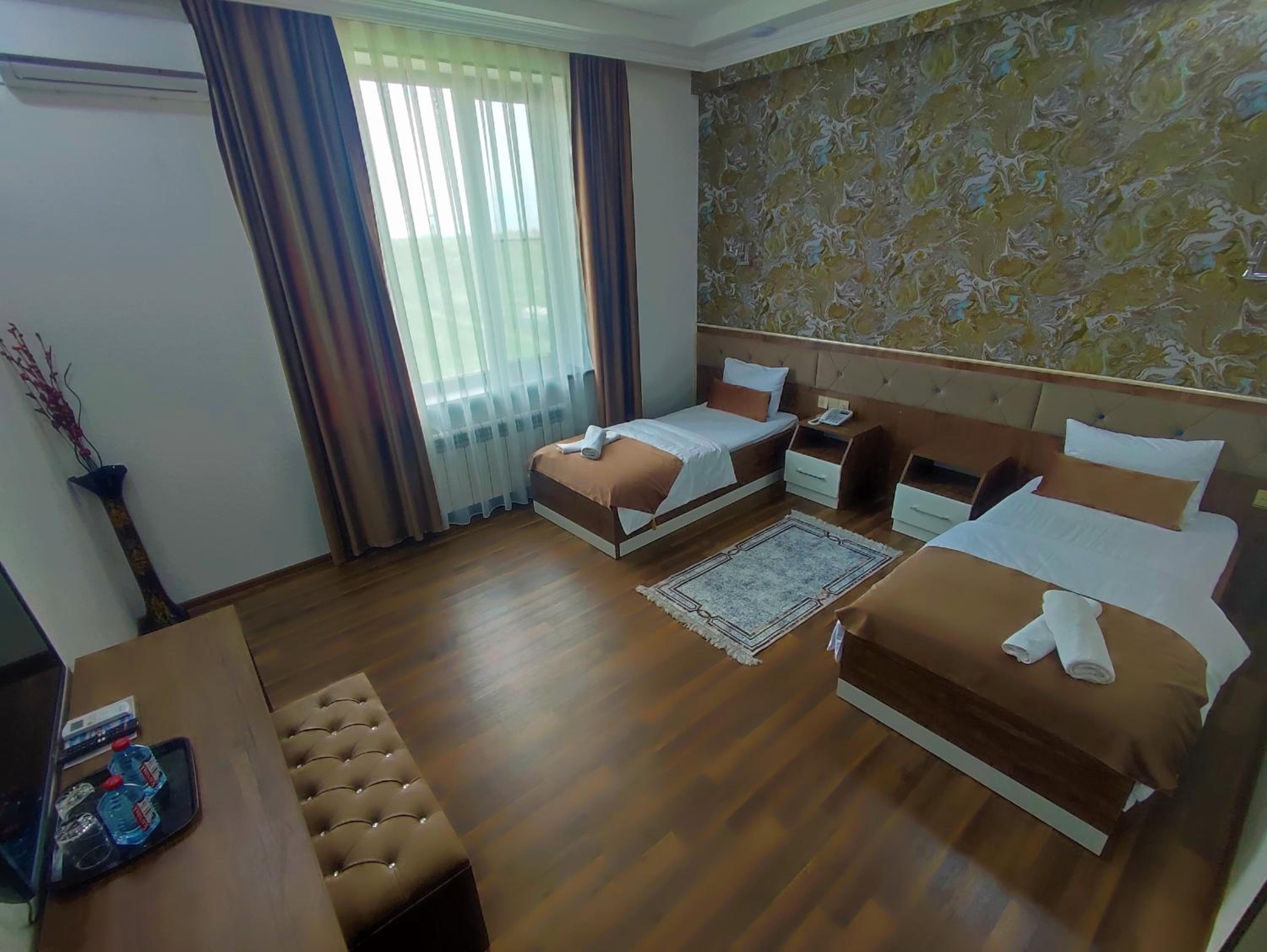 Indulge in elegant rooms equipped with modern amenities like flat-screen TVs and cozy bed linens at River Ditch Hotel Göyçay.