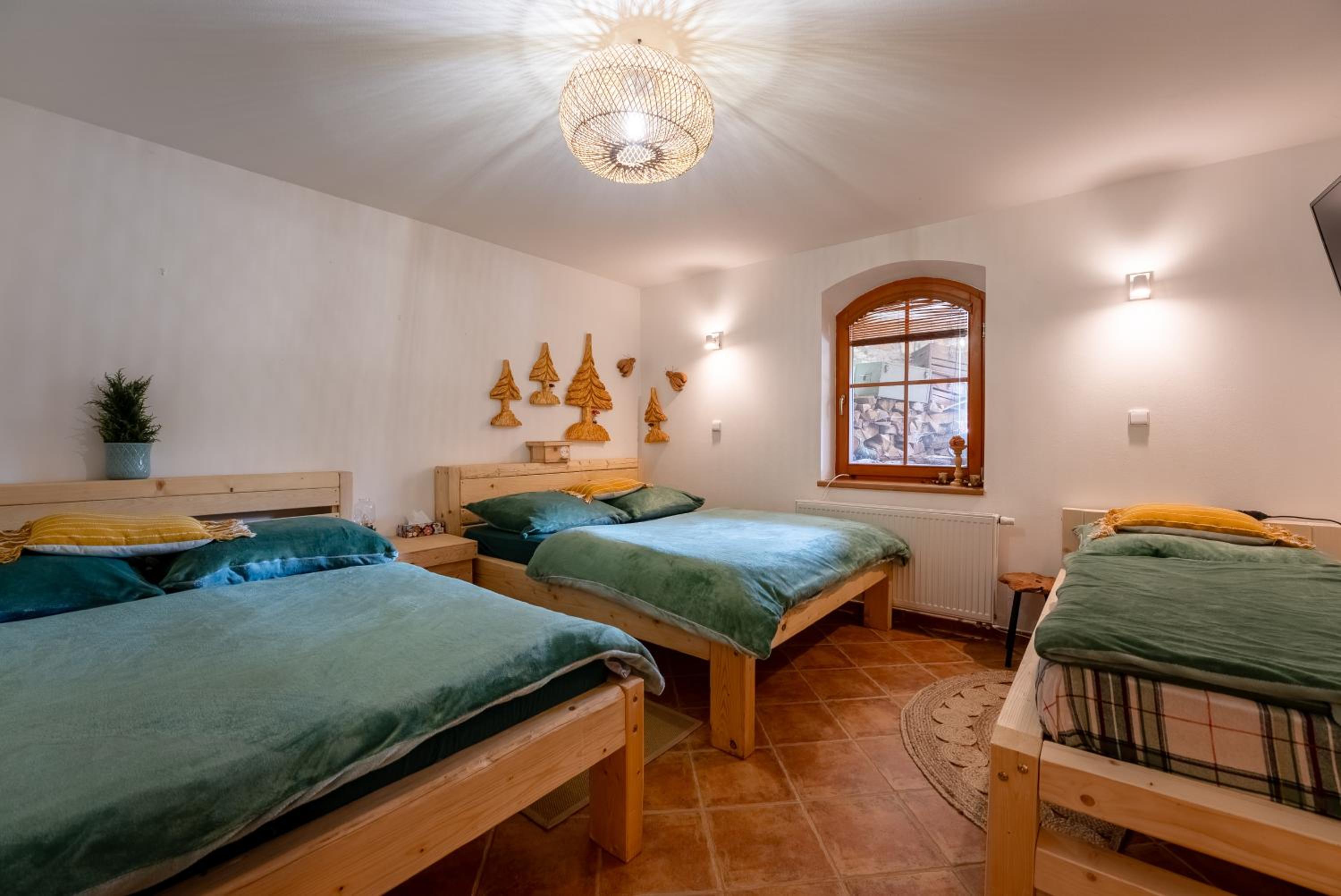 Děkujeme za mimořádně vstřícnou atmosféru a přijetí majitelům ubytování. Komunikace bez problémů, příjezd také. Na jakýkoli dotaz reagovali okamžitě. Ocenili jsme možnost pohybu po obrovské členité zahradě, kde je pamatováno i na menší děti. V sousedství koně a celkově klid venkova. Uvnitř domu nám kromě pokoje byla k dispozici společenská místnost, ve které se nachází kulečník a stolní fotbal. Každý si tak najde vyžití. Pokoj vkusně zařízený s výjimečně pohodlnými postelemi.