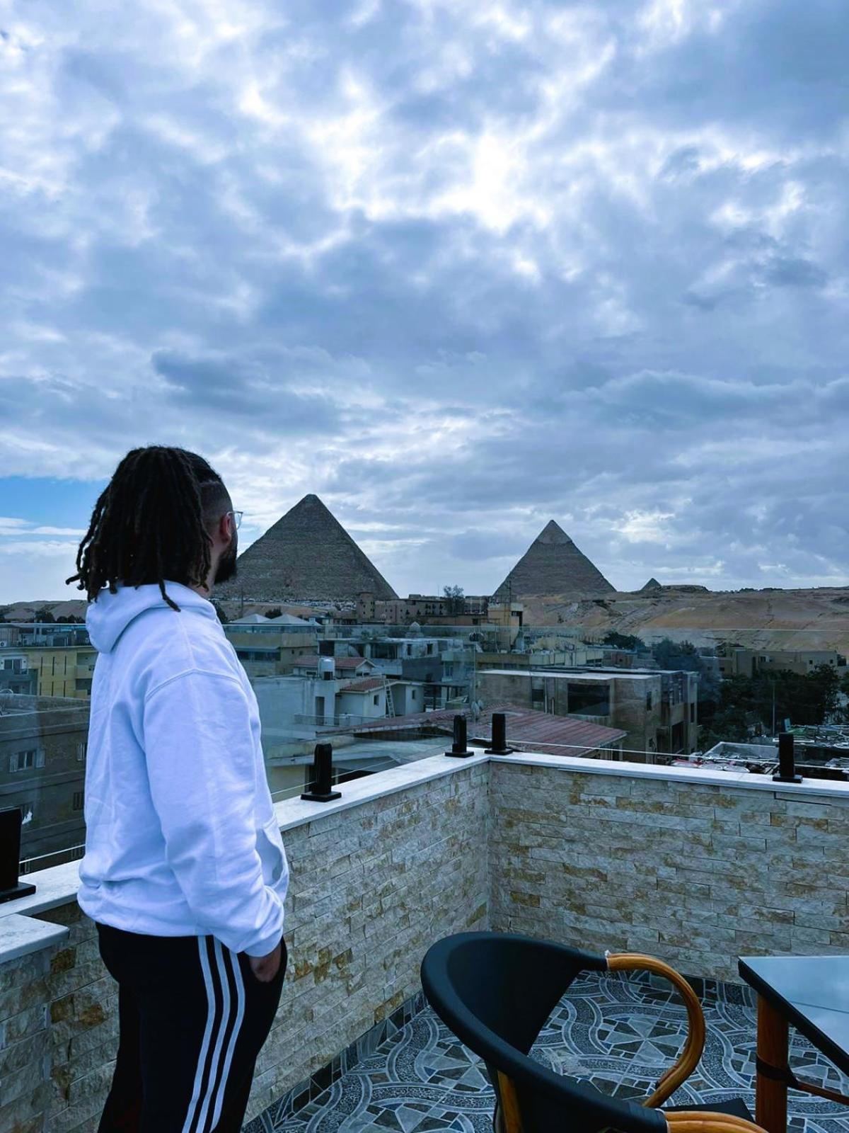 Taras na dachu z widokiem na piramidy. Blisko do piramid i muzeum egiptu