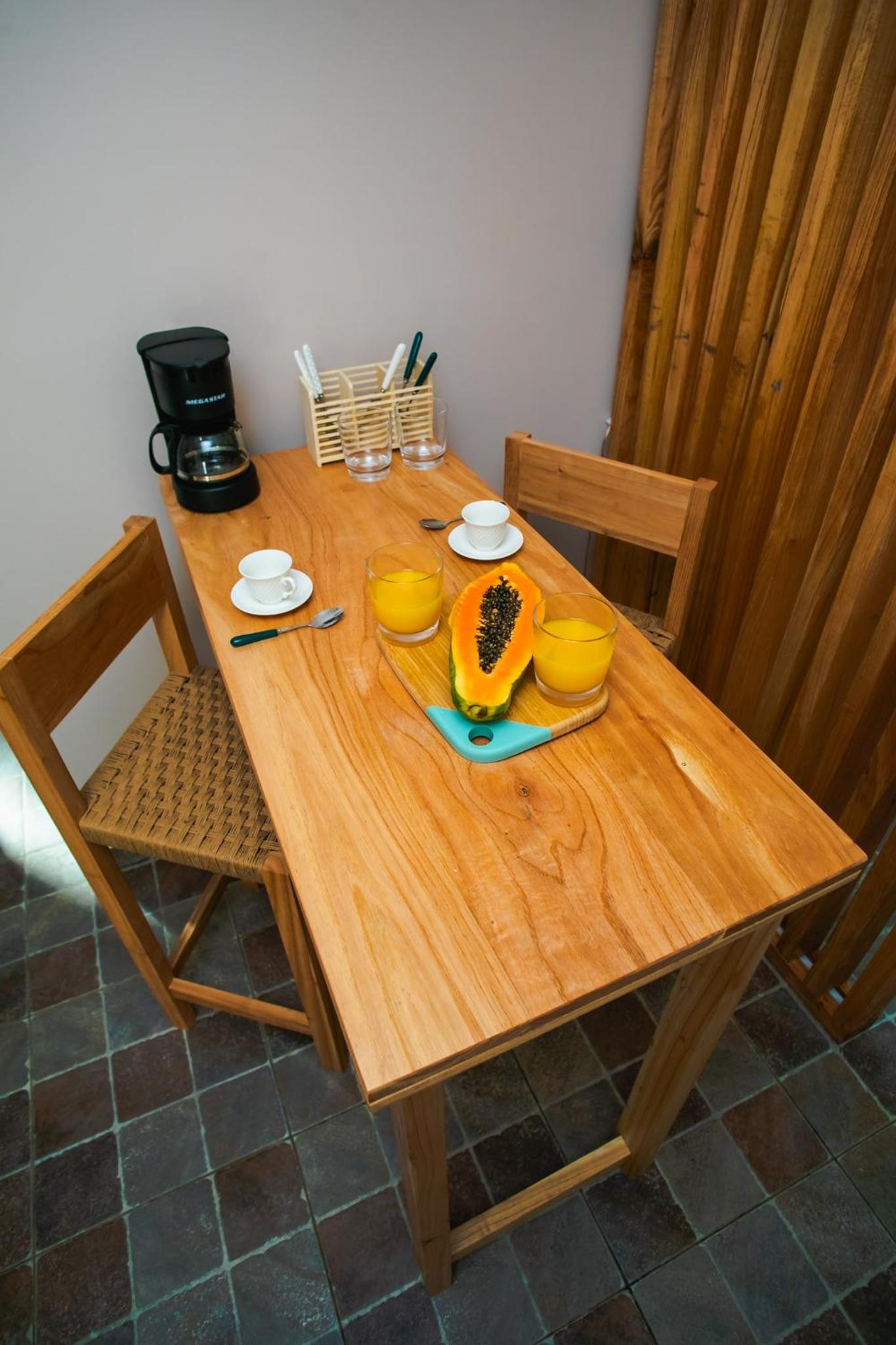 Et le petit déjeuner qui est déjà mis dans la chambre avec un jus de fruit