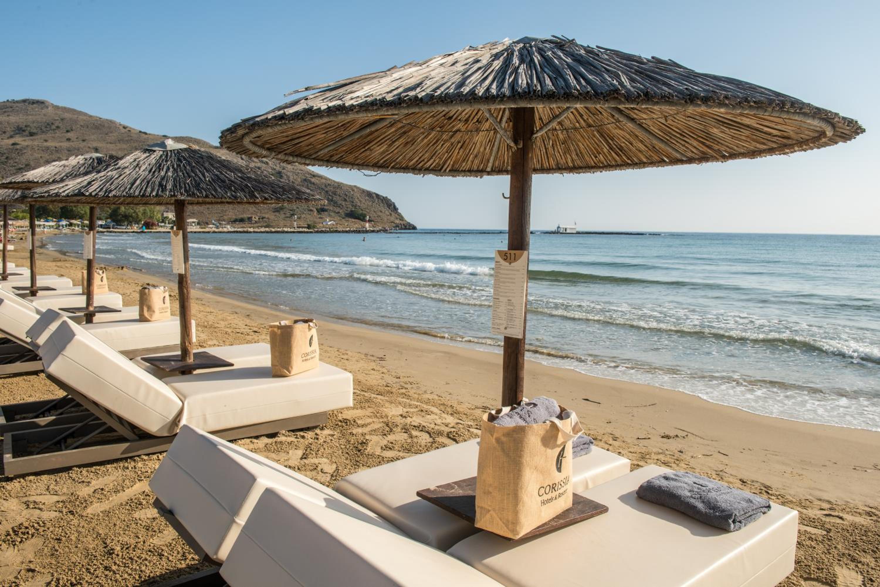 Hervorragende Lage direkt am Strand, wunderschöne Restaurants mit leckerem Essen, nutzbare Anlagen aller Corissia Hotels, Liegen und Schirme kostenlos, extrem freundliche Mitarbeiter die jeden Gast persönlich Empfangen und herumgeführt haben.