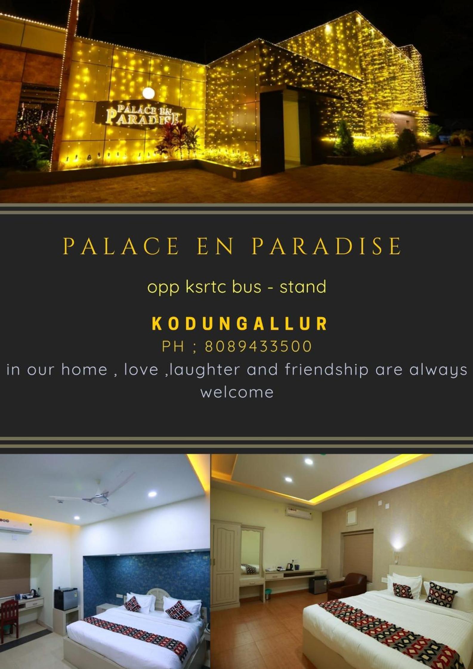 HOTEL PALACE EN PARADISE, located in Kodungallūr, offers a luxurious stay with air-conditioned rooms featuring modern amenities like flat-screen TVs, safety deposit boxes, and balconies in some units.