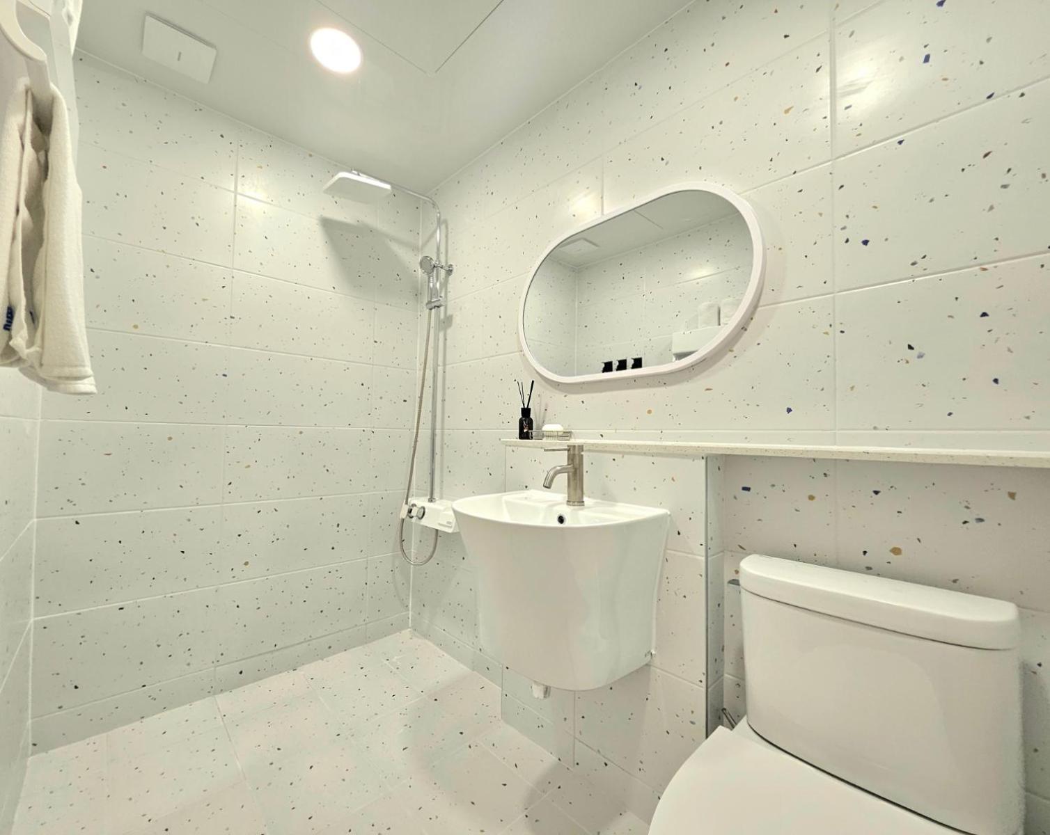 Bed was a little hard but ok, internet speed was great. Close to the small river, nice for morning walks. Convenience stores, food shops, roadside stalls plenty, also lotte mart, daiso nearby and quite well stocked so can get all your shopping done too. Not equipped for foreign travellers but area is not targeted at foreign tourism anyway, so it was expected. Aircon and TV operational.