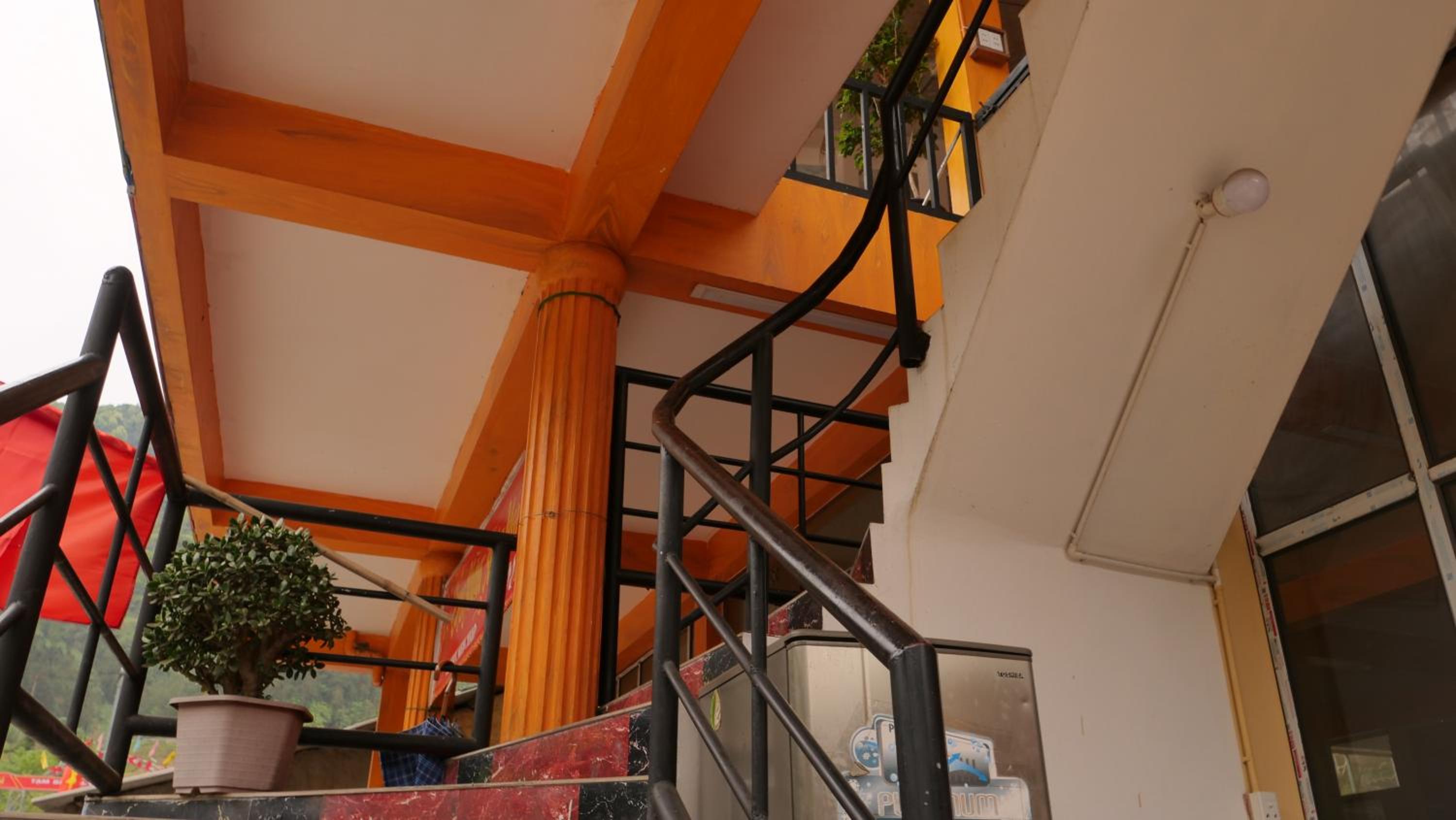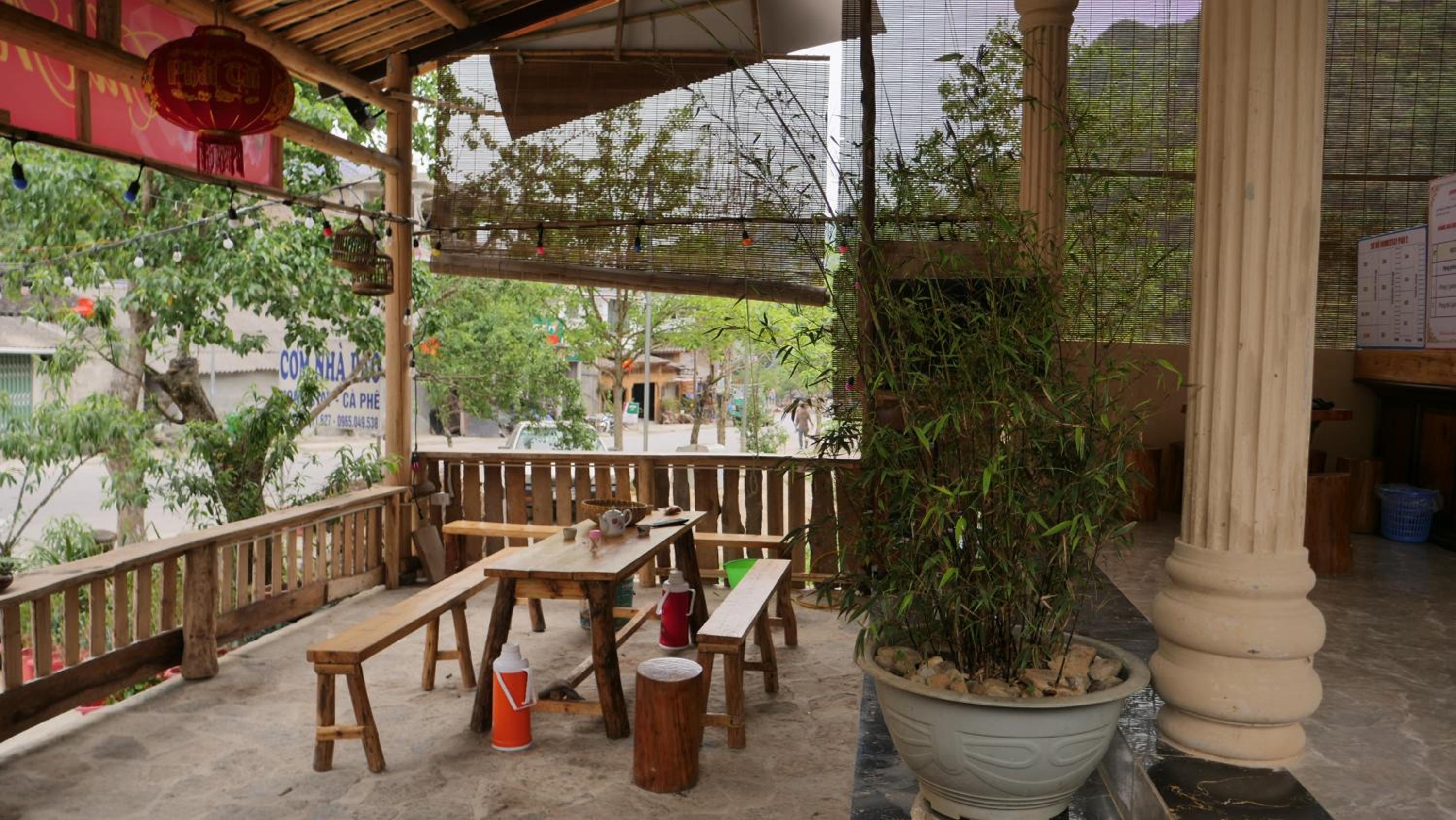 Extremely caring owner, made us tea when we arrived, asked which room we want, helped with the bags and was very keen overall to help and quick to use Google translate. Their restaurant opposite also made us cheap rice and veg vegetarian dinner and gave us free pickles and water. The town is cute. Very quiet and private 3rd floor room.