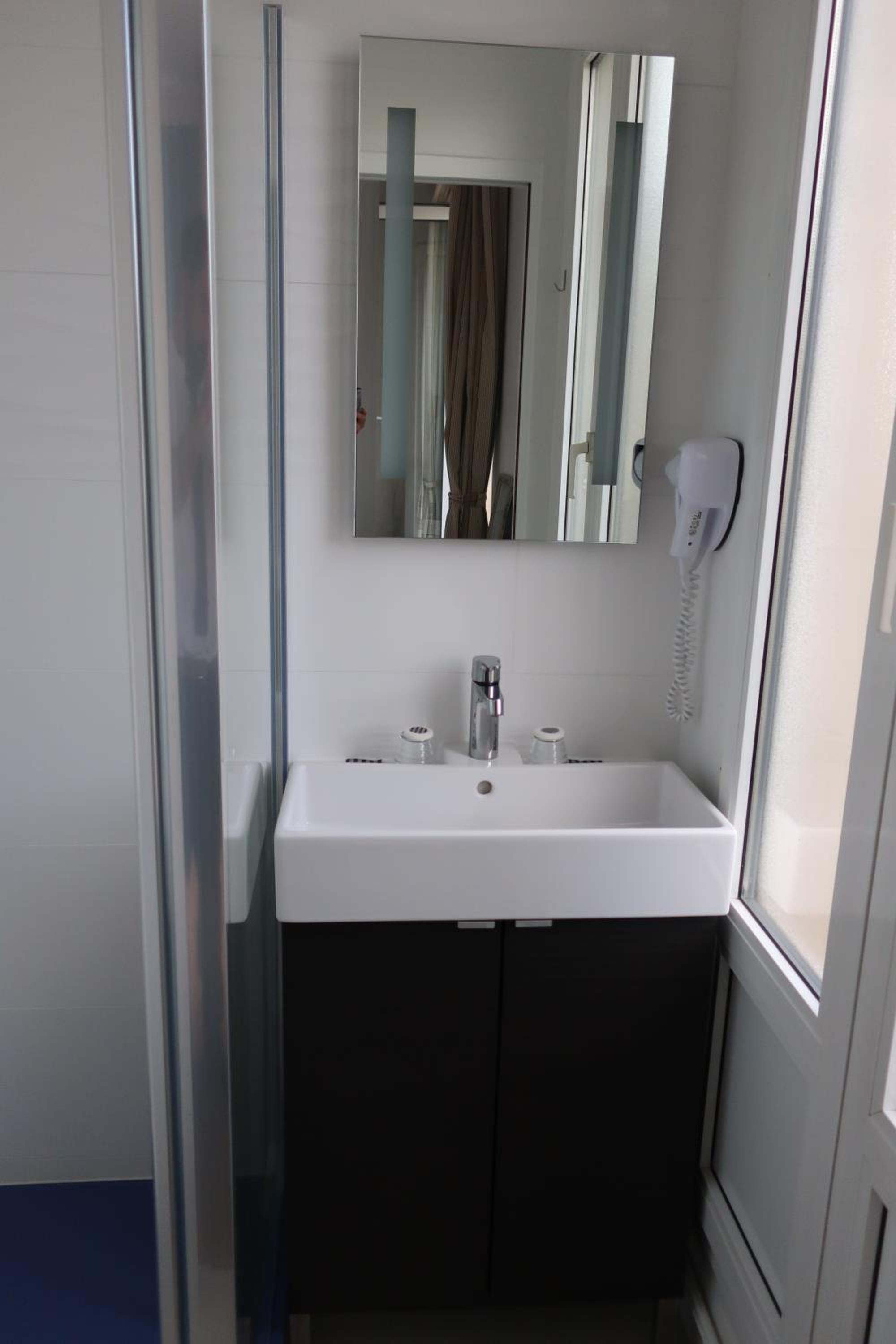 Il manque un point de chauffage pour la salle de bain ou les serviettes restent mouillées. Beaucoup d’humidité du à la vétusté des fenêtres ce qui montre l’humidité mais sinon c’est un hôtel que je conseille vraiment.