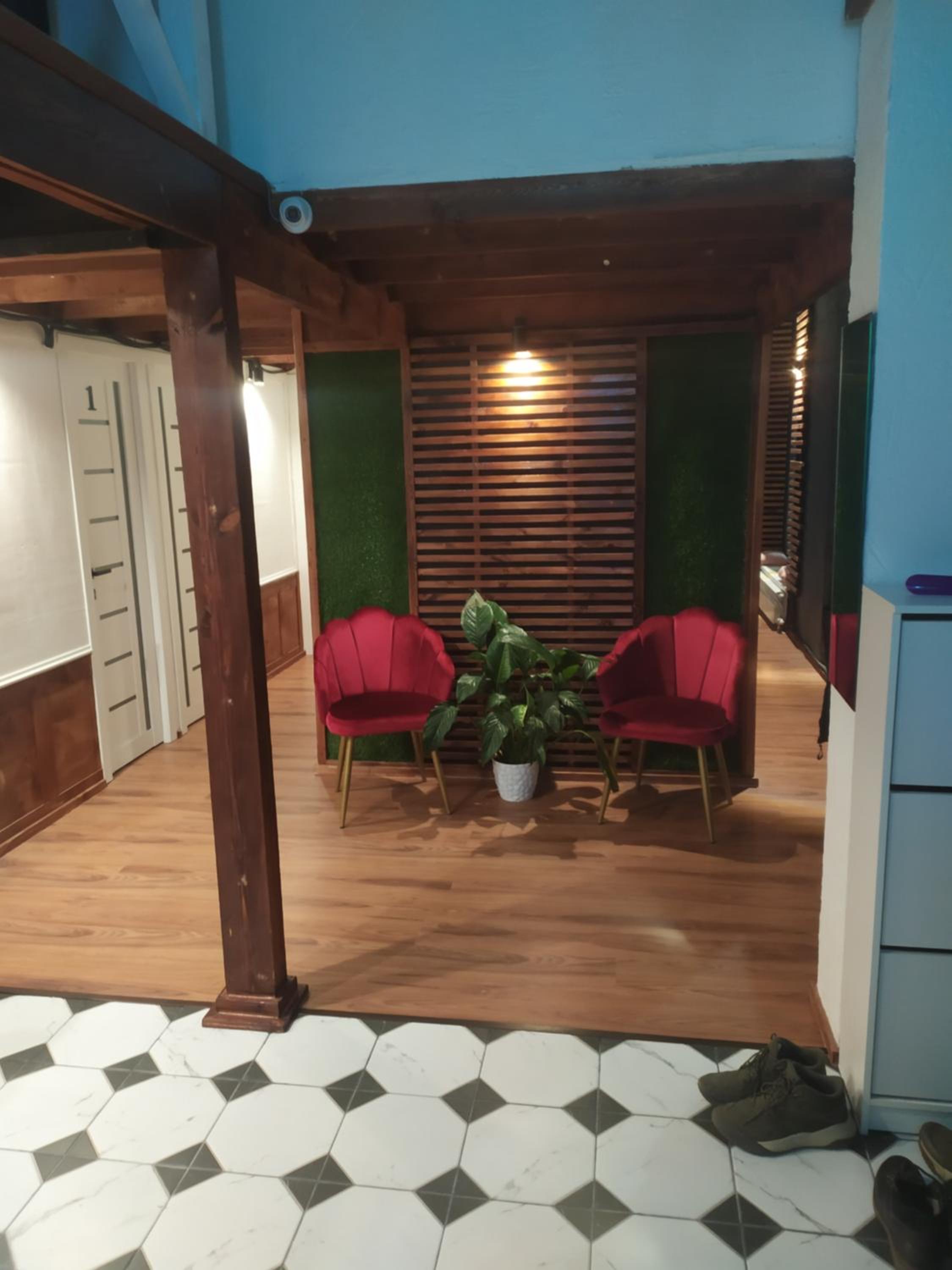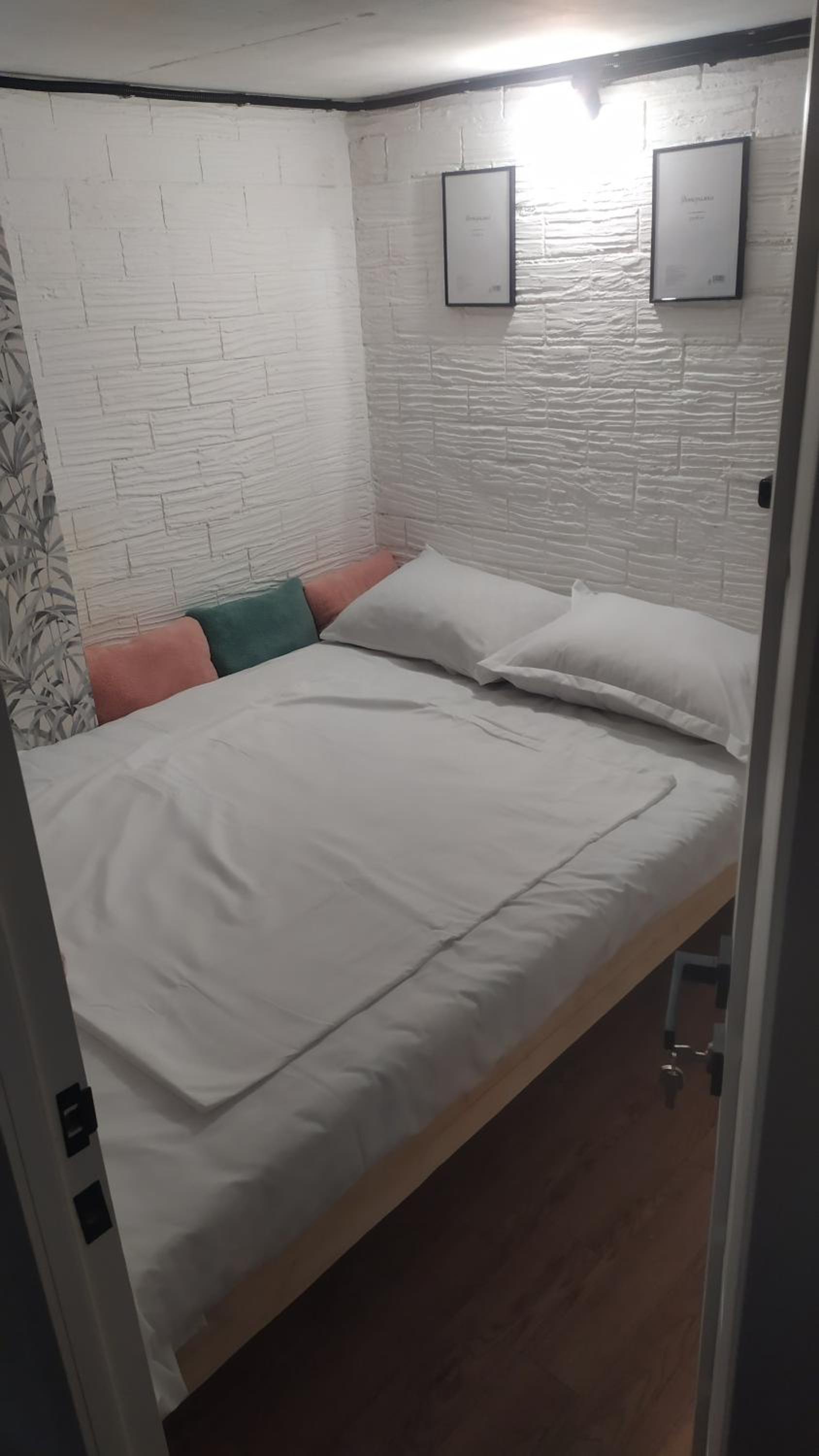 Оооочень,просто очень малюсенькая комната. Низкий потолок настолько, что мои 162 см роста почти доставал до него. Не могу в таких помещениях находиться. Прям душит. Не было туалетной бумаги в туалетах. Полотенца тоже не выдаются. Хотели перекусить, но поблизости никаких кафе так и не нашли. Но еще раз повторюсь, переждать поезд за такую сумму пойдет.