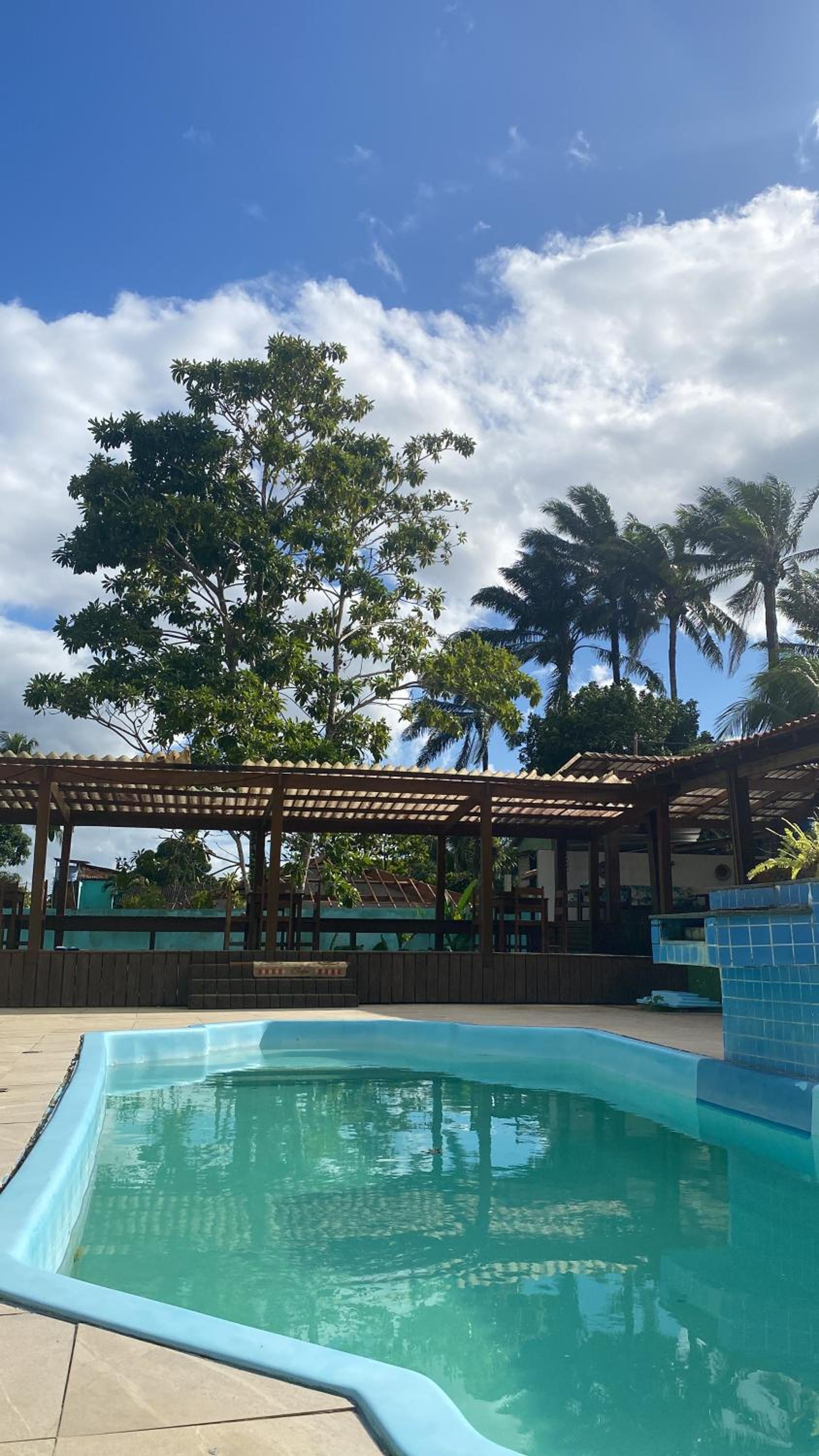 A limpeza deixou a desejar, a área do fundo estava bem suja com teia de aranhas e sujeira no chão, a piscina achei a água um pouco turva e a localização a rua não é calçada, o café poderia ser self service.