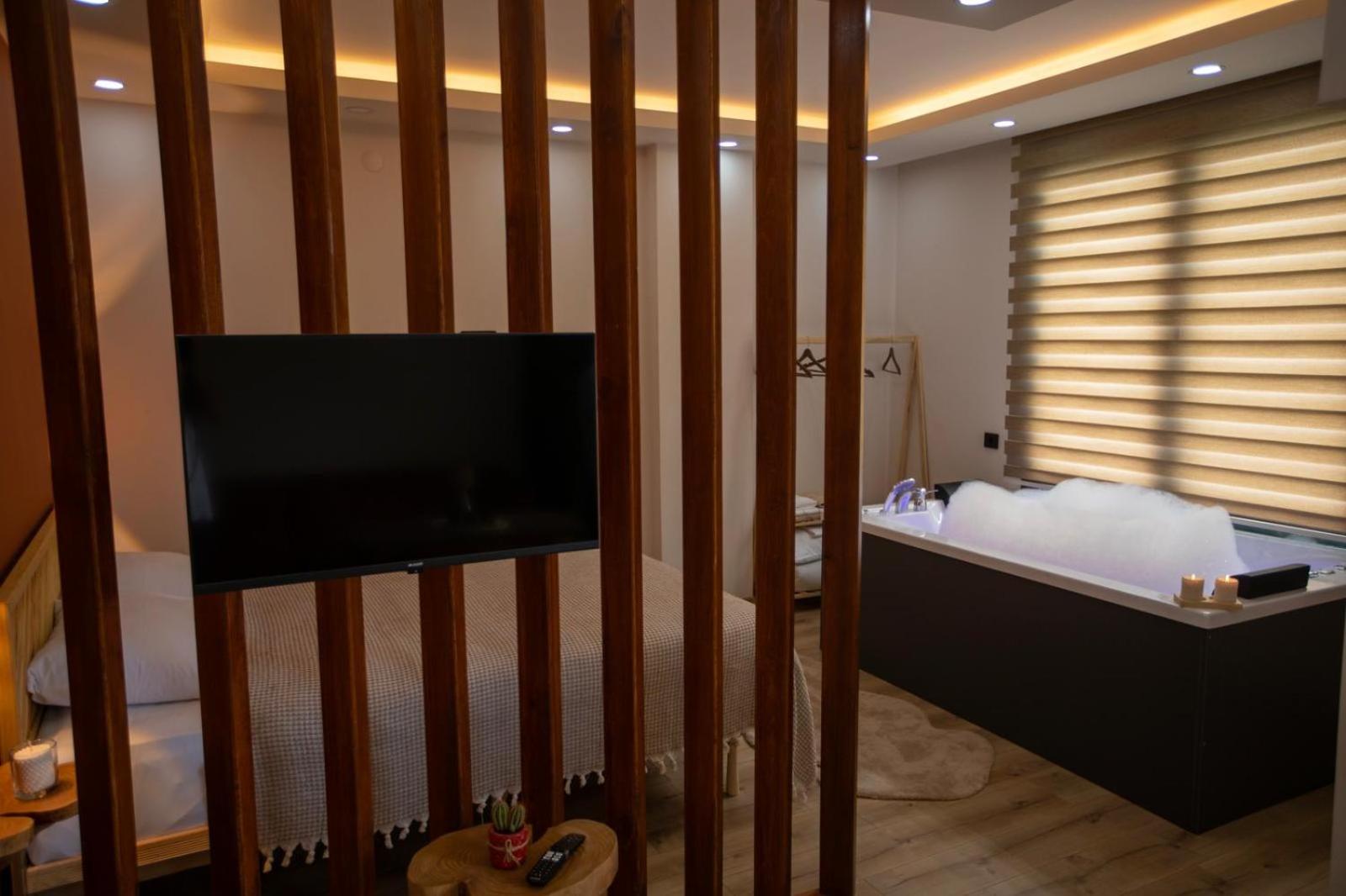 Comfortable Accommodation: Our aparthotel offers a balcony with mountain views, a spacious living room, a fully equipped kitchen, and modern amenities like a flat-screen TV.
