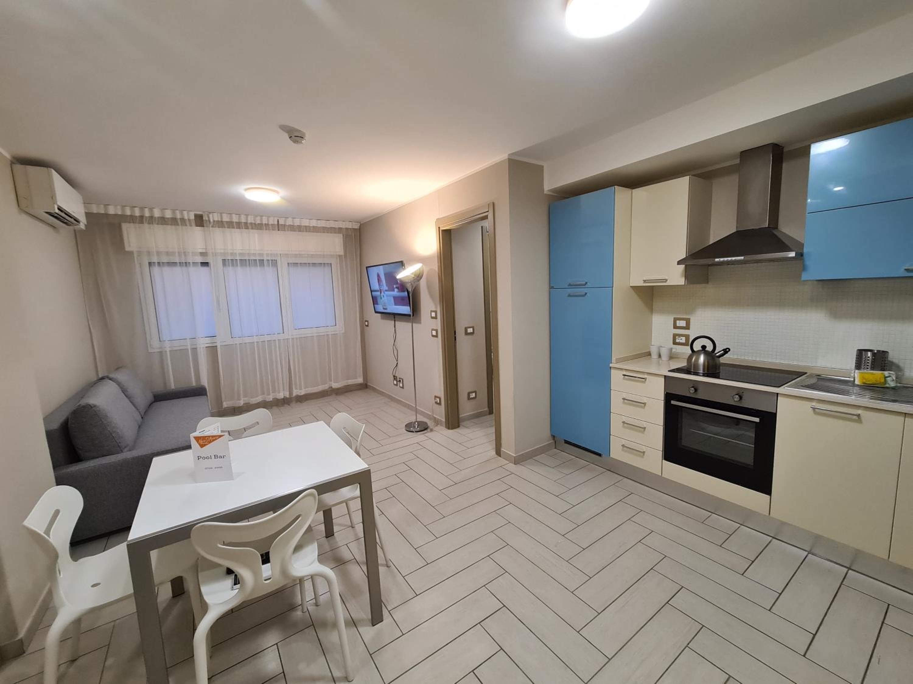 Each unit at the aparthotel is equipped with air conditioning, a flat-screen TV, kitchen with essential appliances, and a safety deposit box. The private bathrooms feature a bidet, slippers, and a hair dryer. Free WiFi, bed linen, and towels are also provided for a comfortable stay.