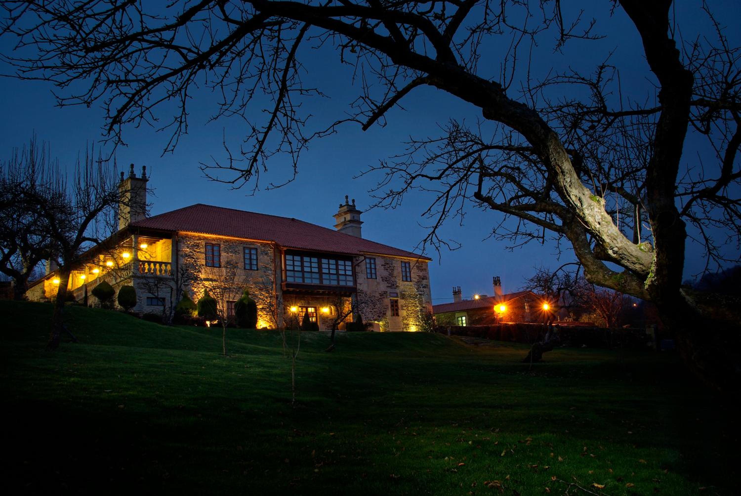 The Pazo de Bendoiro hotel, nestled in Bendoiro amidst lush greenery, presents a picturesque setting for your getaway. The property boasts a garden, a terrace, and a unique swimming pool featuring a sliding roof.