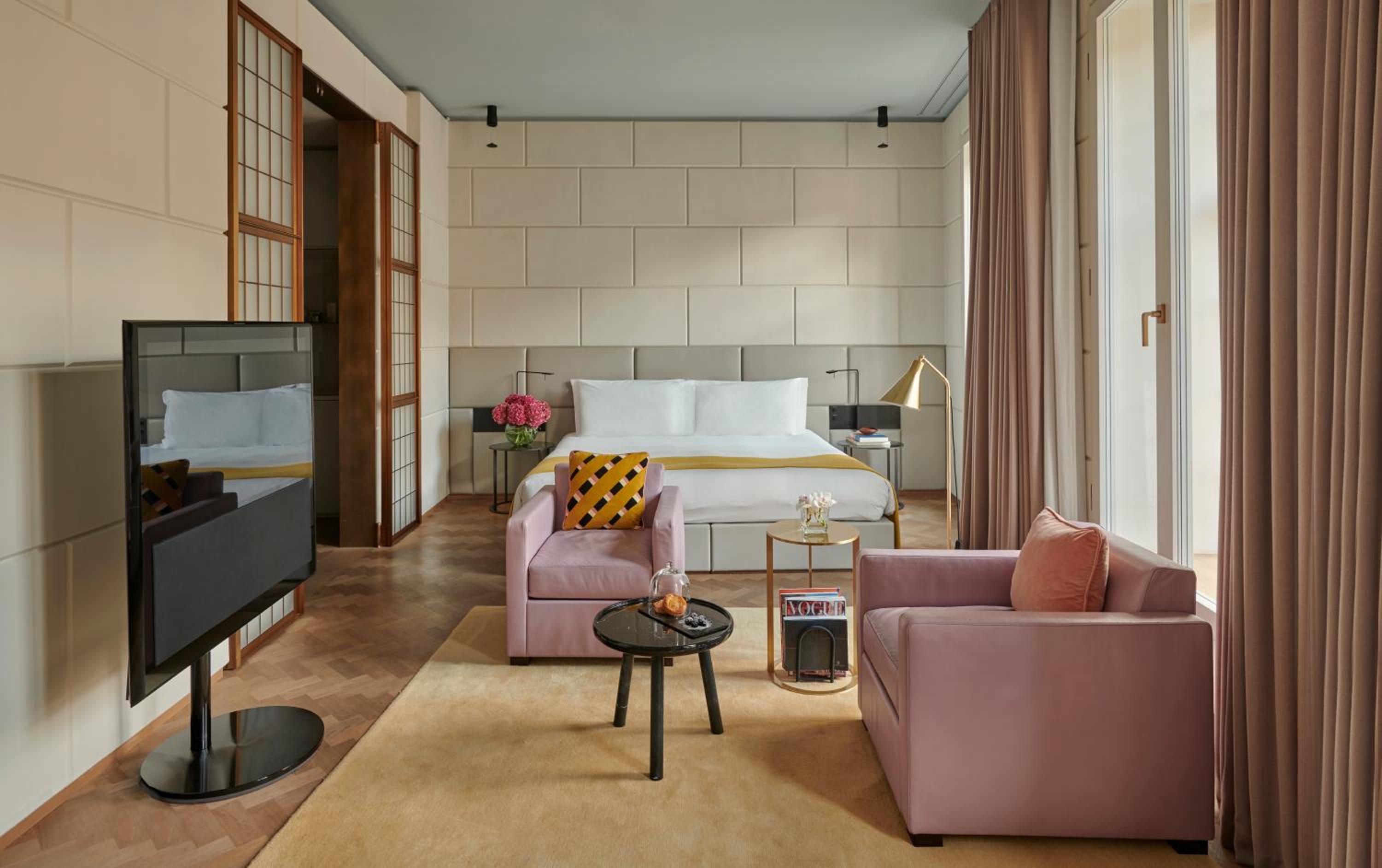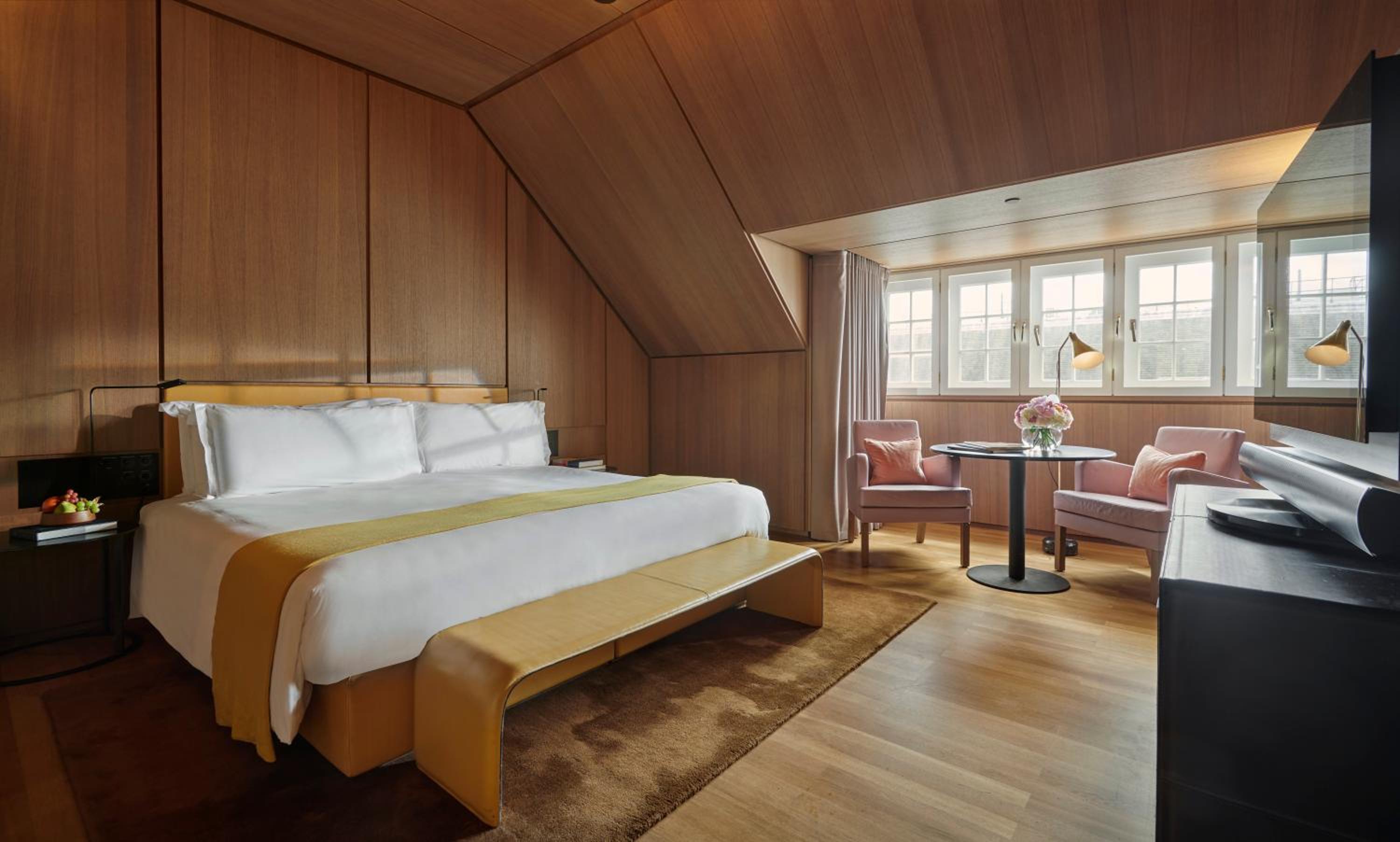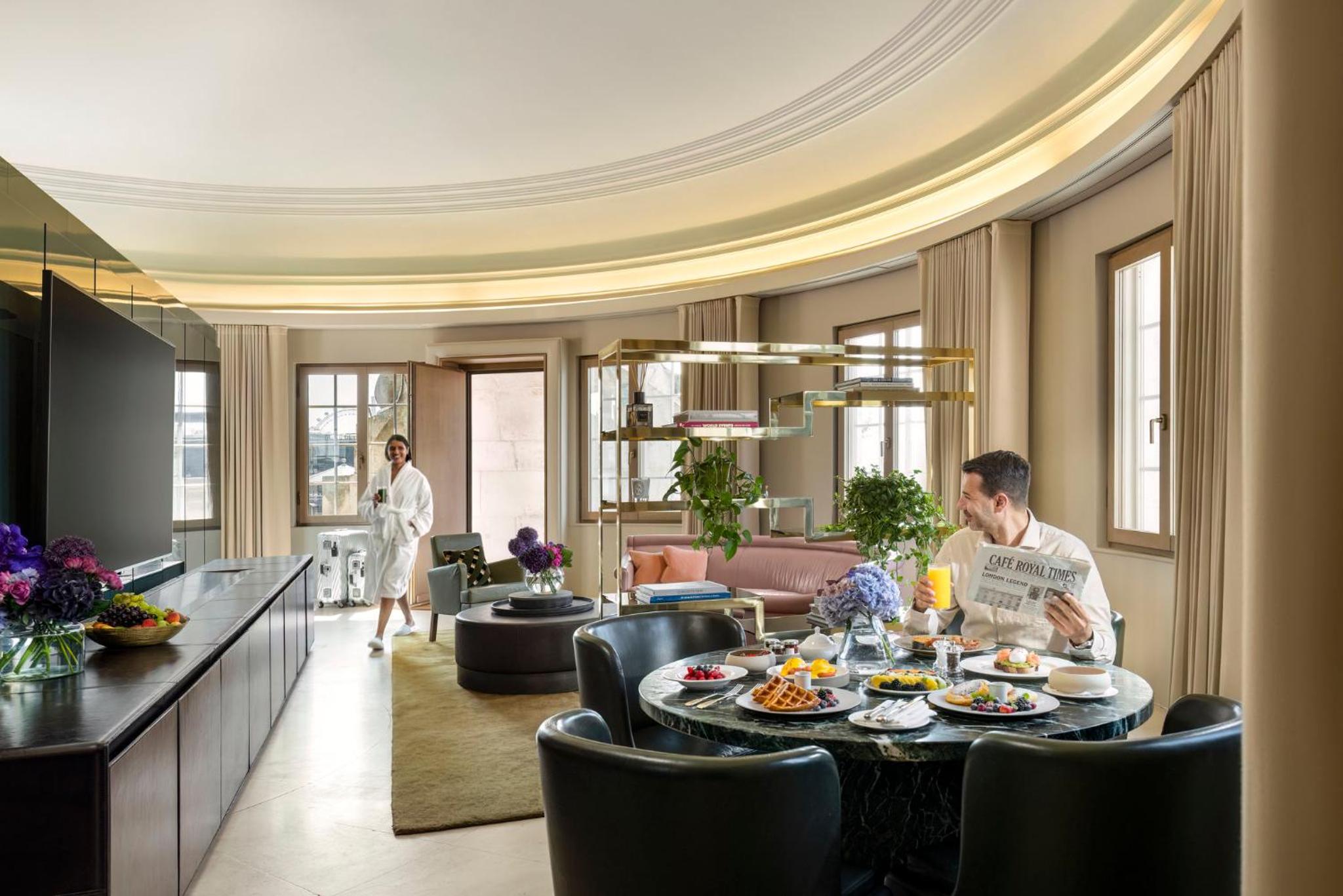 Hotel Café Royal, nestled in central London, offers elegantly designed rooms with modern entertainment systems and luxurious bathroom amenities. Some suites even come with a complimentary minibar, adding an extra touch of indulgence to your stay.