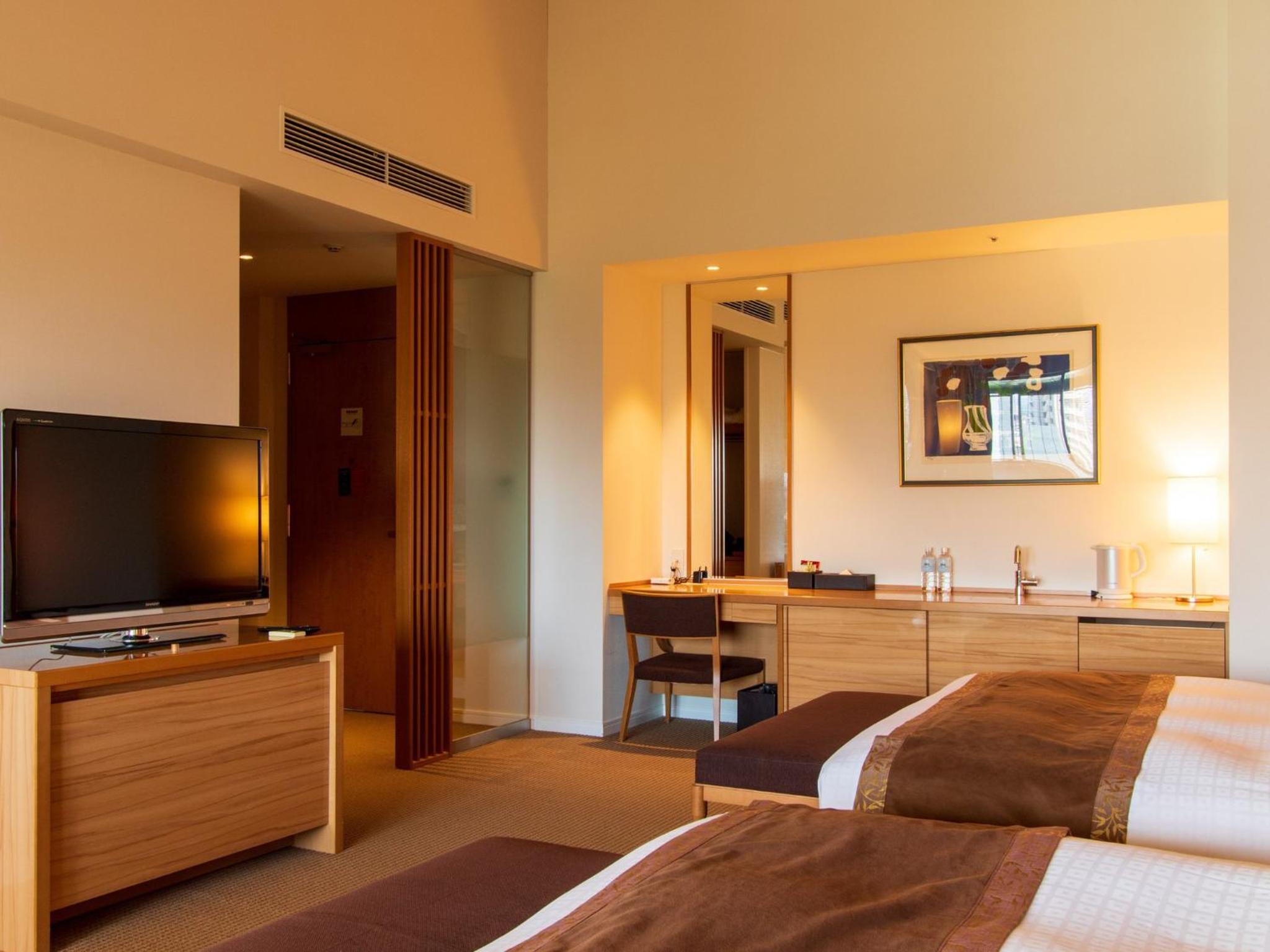 Superbe hôtel à Gotemba. Propre et très confortable, l'hôtel dispose tout ce dont on a besoin. Le onsen commun est assez grand et parfaitement bien équipé (plusieurs bains intérieurs, bain extérieur, sauna et pleins d'équipements pour l'après bain). La chambre avec onsen extérieur est également très bien aménagée et la vue sur Gotemba et le Mont Fuji est très agréable pour se relaxer. Le personnel est très accueillant et à l'écoute de nos questions et requêtes. Il y a également un très beau jardin à l'intérieur de l'hôtel qui permet de faire une petite promenade de temps à autre. L'hôtel se situe en face d'un FamilyMart et à 3 minutes à pied du Shuttle Bus jusqu'à Gotemba Premium Outlet. Nous avons utilisé le taxi pour nous déplacer depuis l'hôtel jusqu'à la station et cela ne prend que 5 minutes.