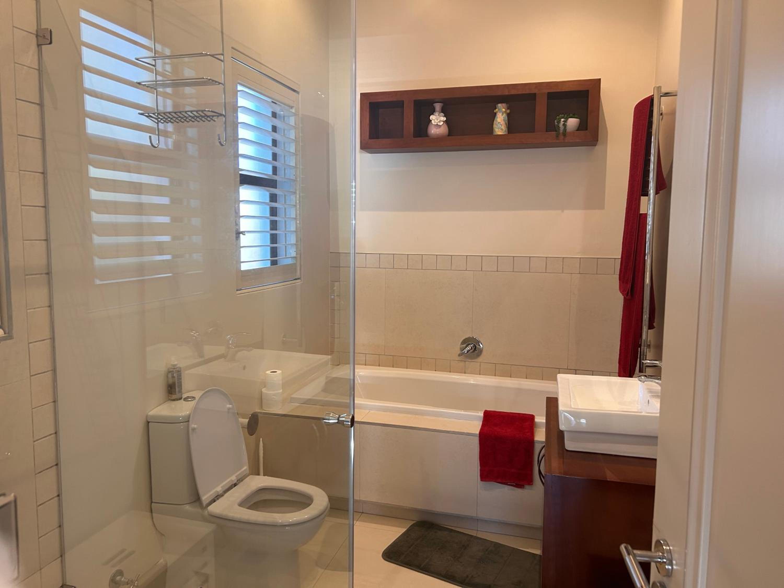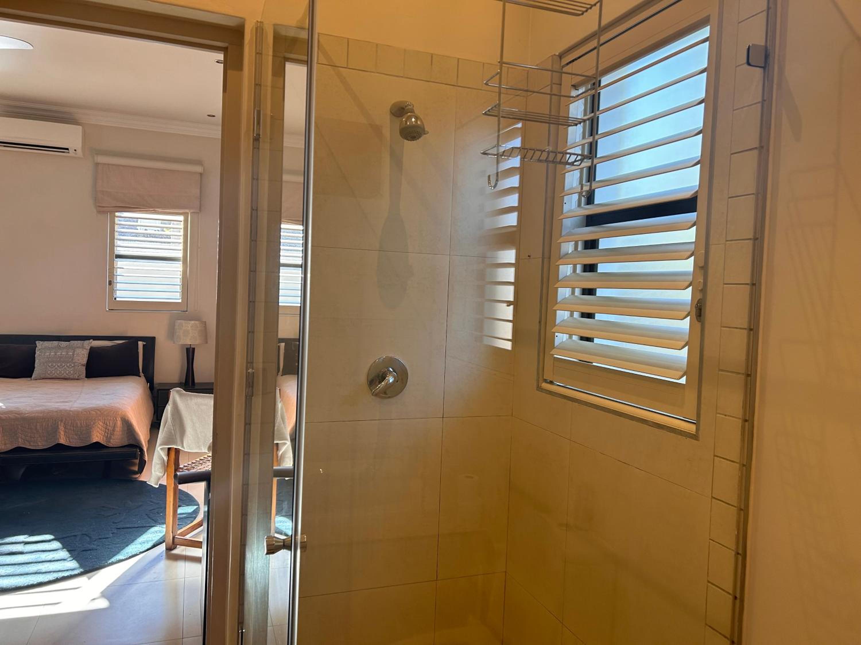 Calm, well located, secure, roomy, clean. Great bathroom and main bed !