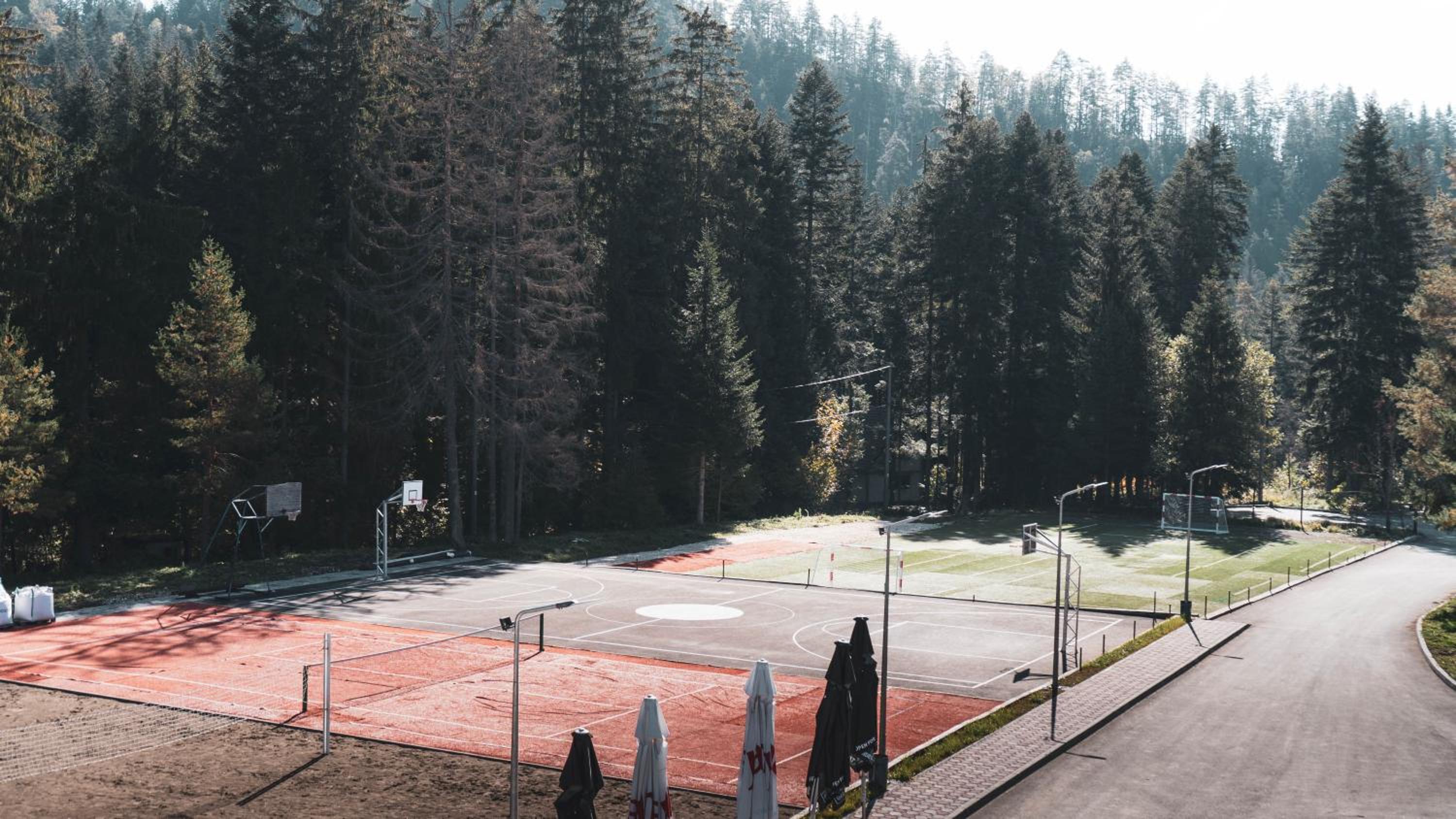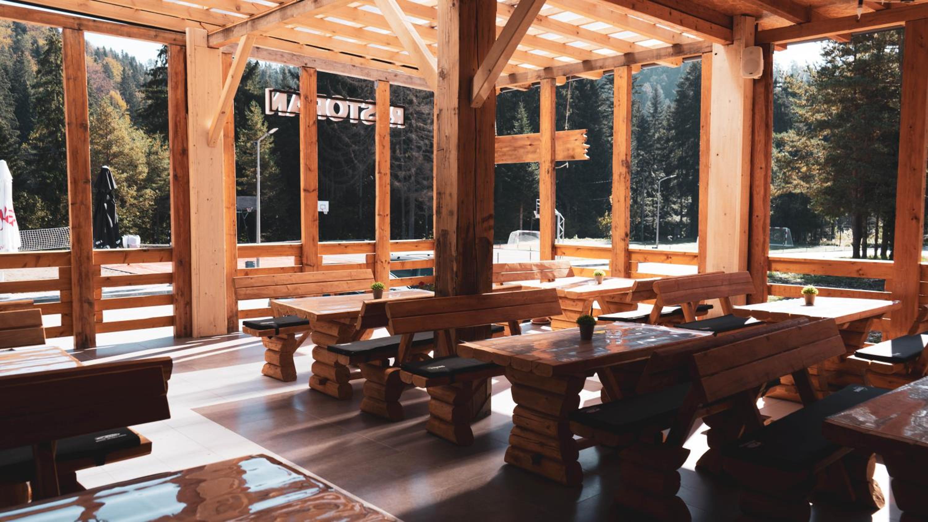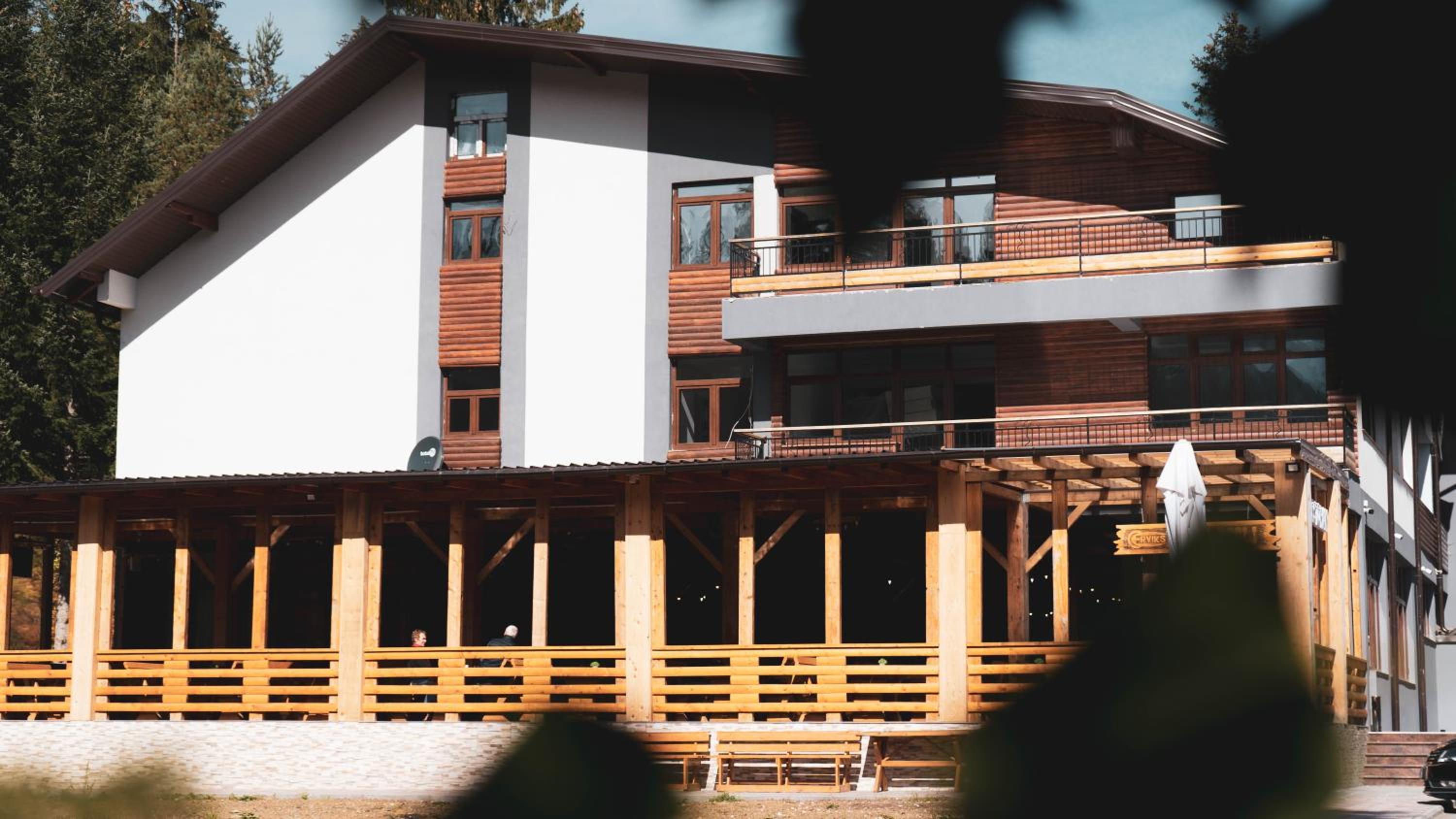 Breakfast is pretty good. Otherwise, the food at the hotel is quite tasty and abundant. The hotel's surroundings are excellent for long walks. The abundance of coniferous trees and water springs creates a pleasant atmosphere. The hotel is not very crowded and is quite quiet. The silence is only disturbed by the occasional barking of dogs.