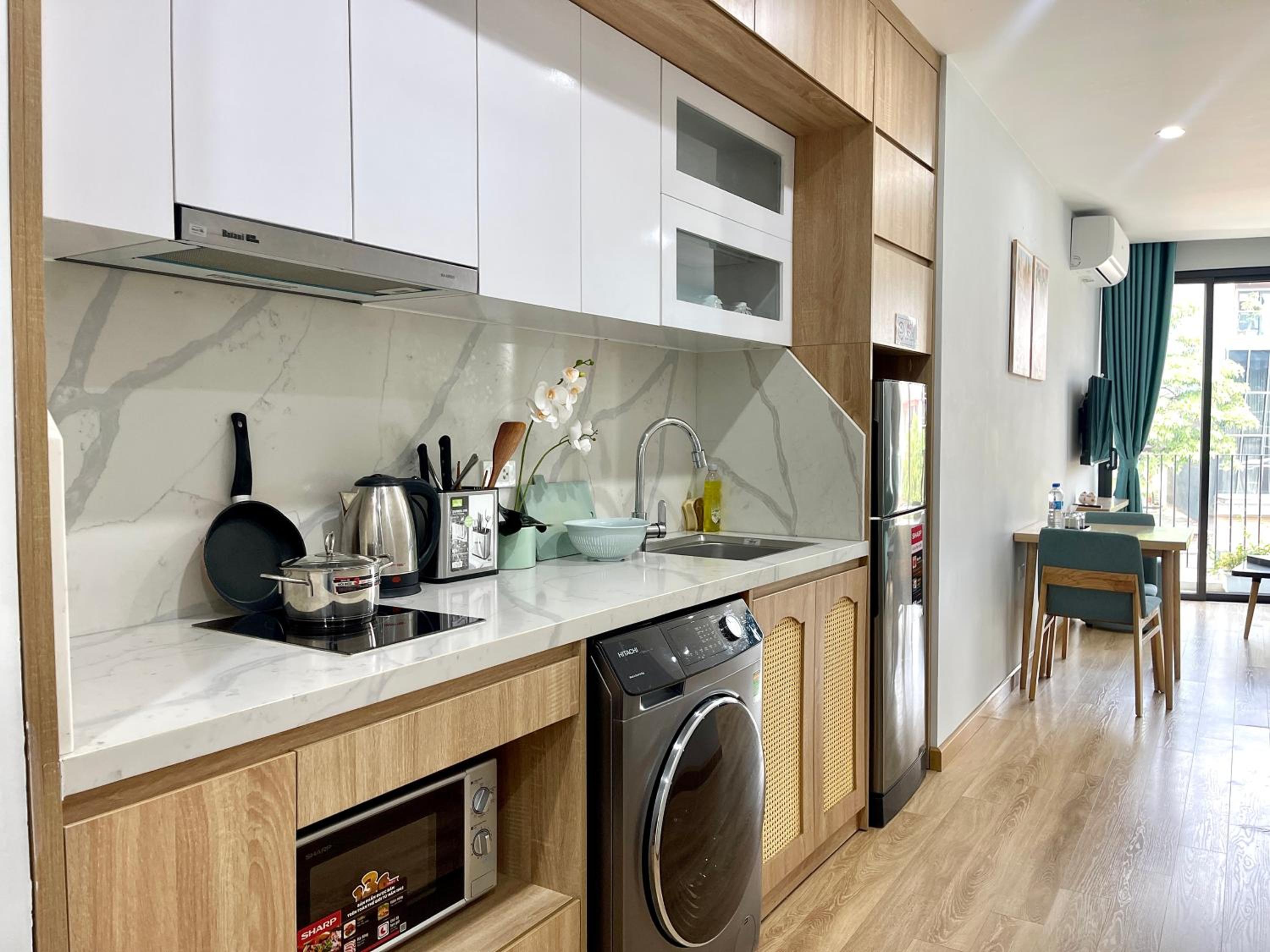 The apartment is located in a quiet area near West Lake, making it a peaceful stay. The room was clean and well-equipped, providing a comfortable stay.
