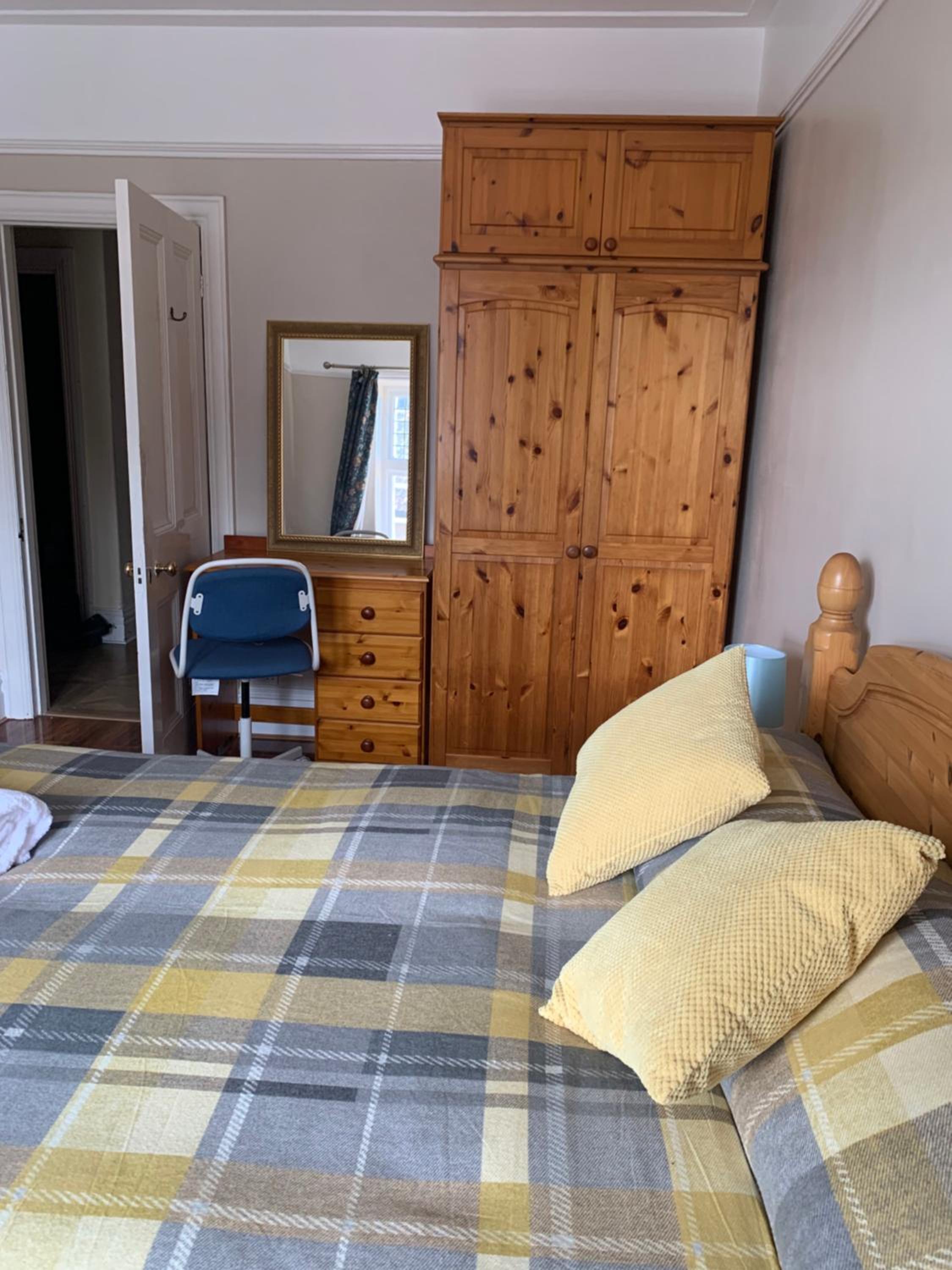 The dog was loose when I got back in the evening , even though I had been assured it would not be. Had to ring door bell to get in as dog was barking at the main door. No key to the room only bolt on inside which made me feel unsafe.
