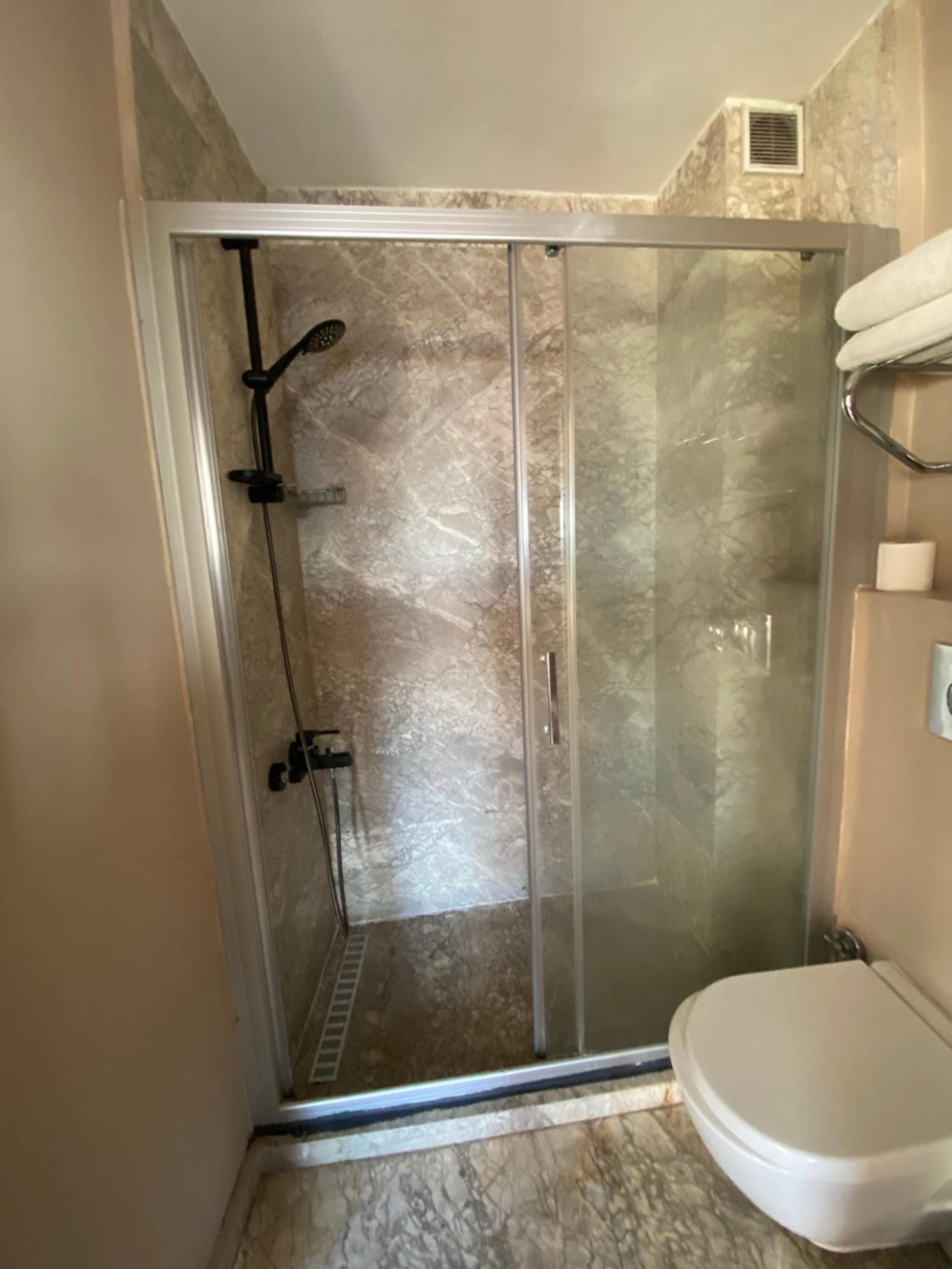 The room had all the necessary facilities mini fridge, microwave, tissues, and a clean washroom with hand wash and soap. We also received a free room upgrade, which was a lovely surprise. Initially, we were assigned a first-floor room, but the staff upgraded us to a third-floor room with a balcony. The balcony view was stunning I could almost see all parts of Istanbul from there, which was definitely the highlight of the stay.