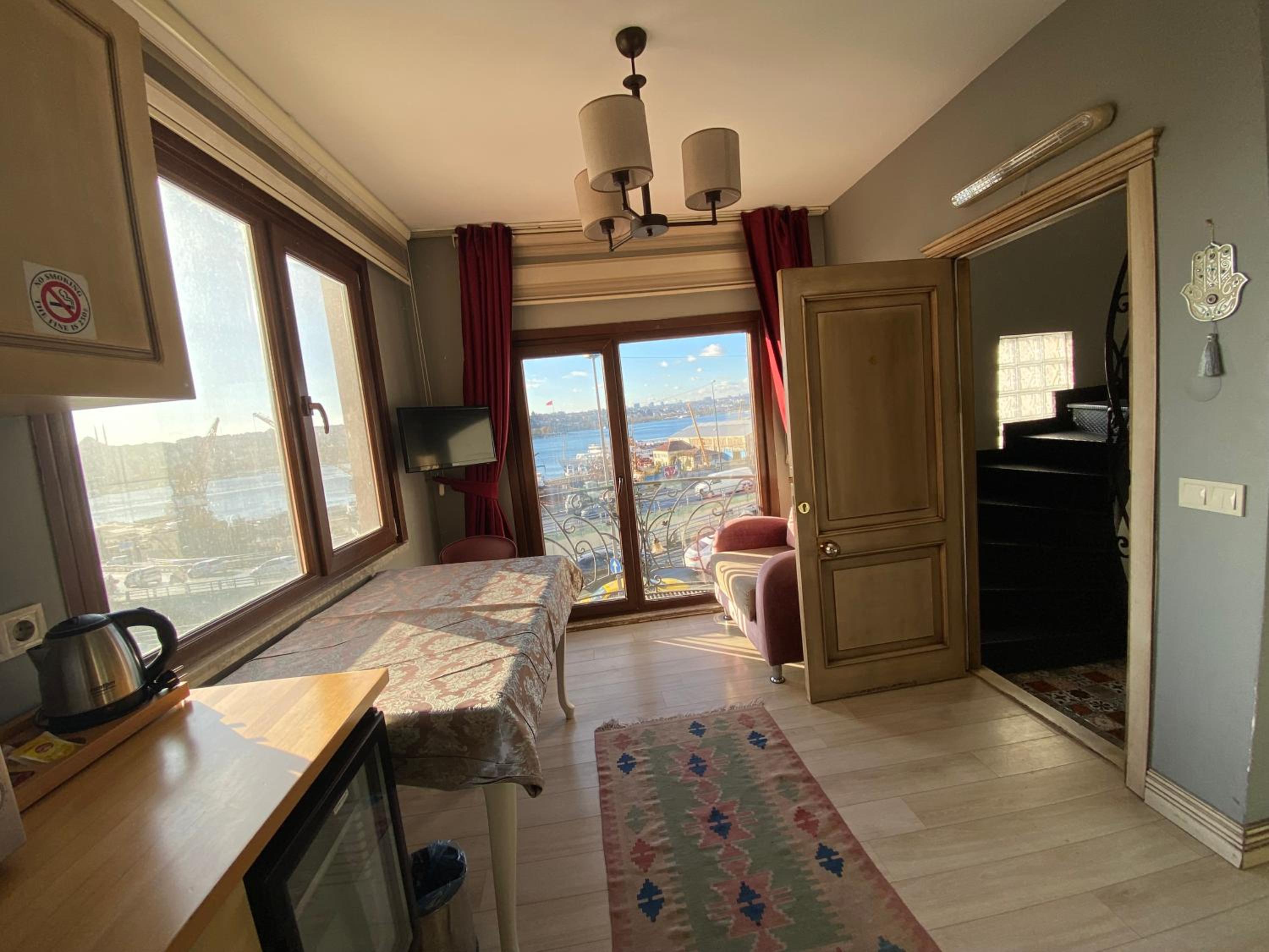 This accommodation exceeded my expectations! As soon as you get off the Atatürk Bridge, on the right side I found a great parking lot, with security, next to a mosque. I paid about 1300 TL for 48 hours. Right across from the parking lot is the accommodation, in a building made up only of mini apartments like studios, with kitchenettes and all the comfort you need! The entrance to the building is via an intercom code, and the entrance to the apartment is also code-based. The owner is a very serious, educated and common-sense person. I have rarely met such a person in Turkey with whom I got along from the first time! The accommodation is a few steps from the Galata Tower and many food options (for all budgets), you also have local markets nearby. The icing on the cake is the view from the apartment window (enjoying a glass of...)😀 In conclusion, if you want a place where you feel comfortable, and close to the attractions, and especially that doesn't break your budget, this is the ideal place. The owner told me that he has special friends from Romania, and that says good things about him (because we Romanians are more picky 😇)
