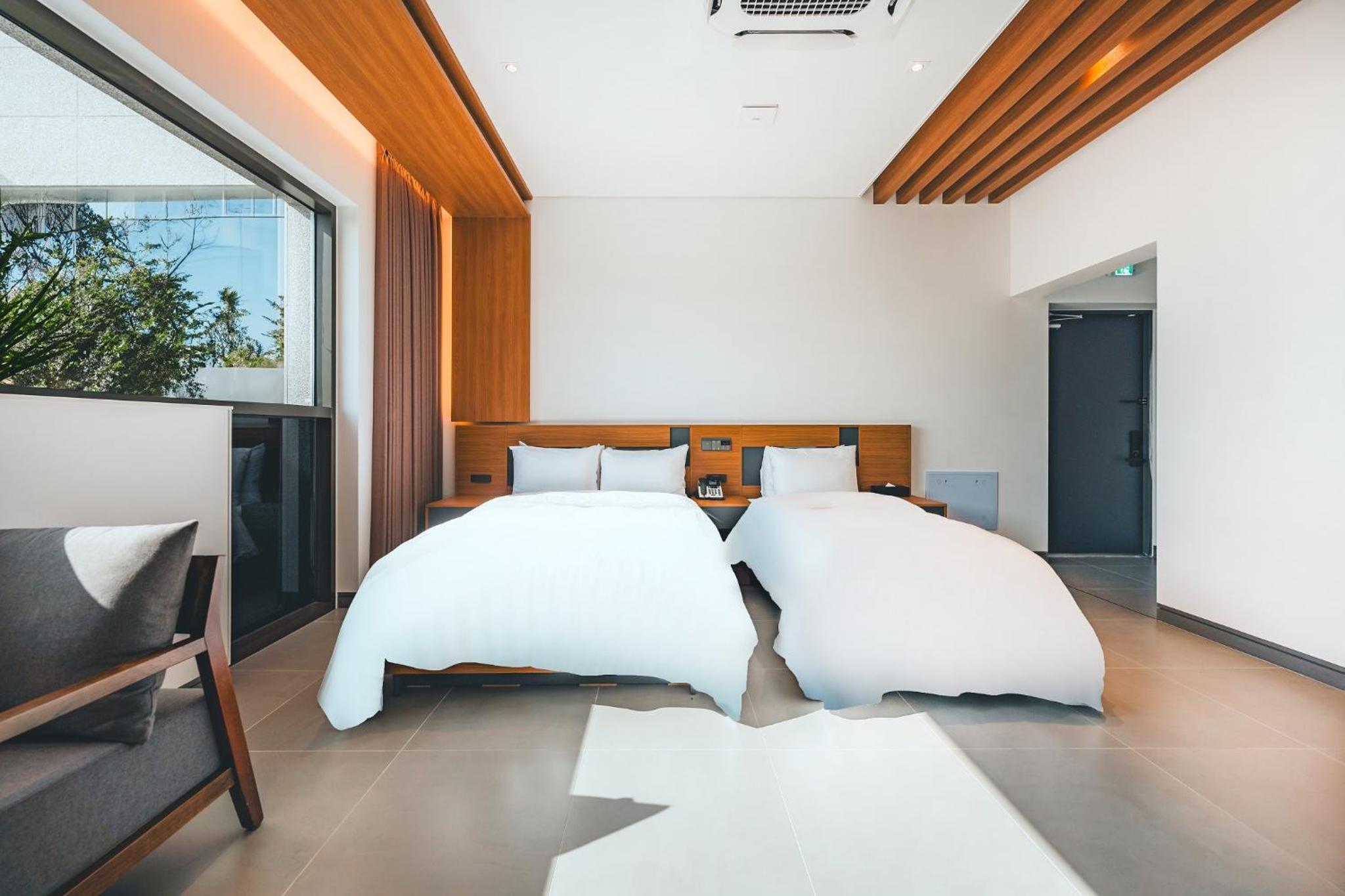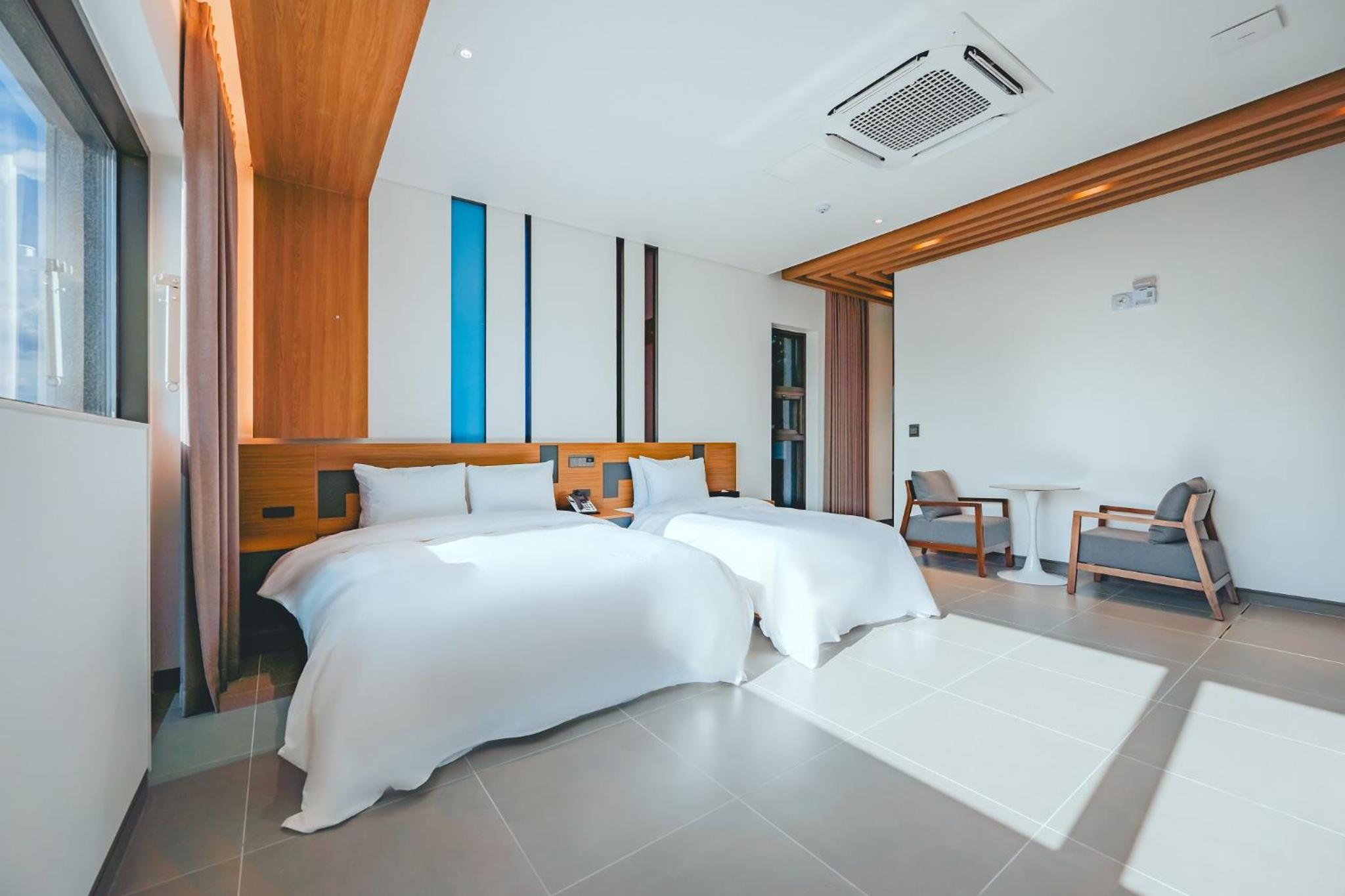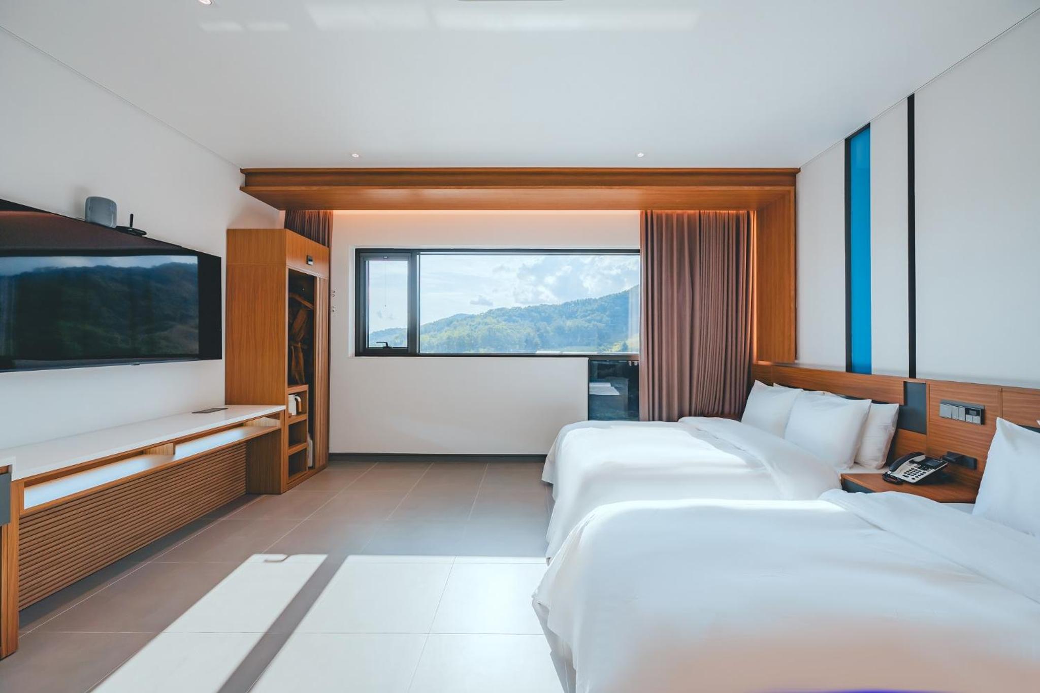 Each room at Wonju city hotel is thoughtfully equipped with modern amenities for a comfortable stay, including a flat-screen TV, private bathroom, and air conditioning.