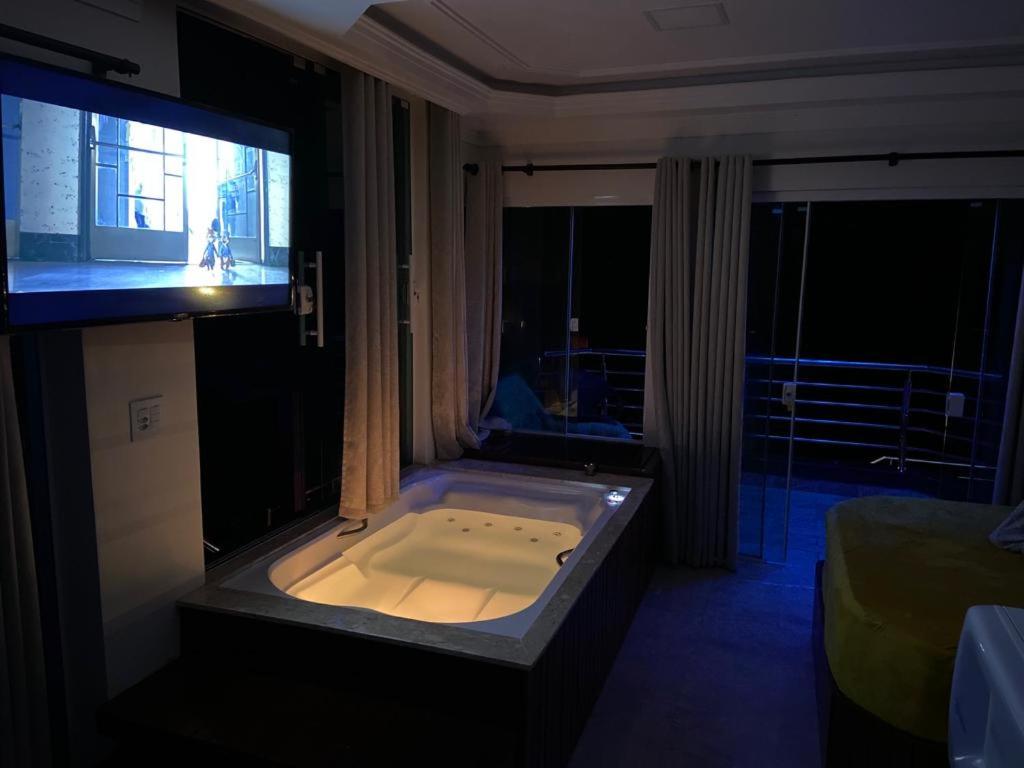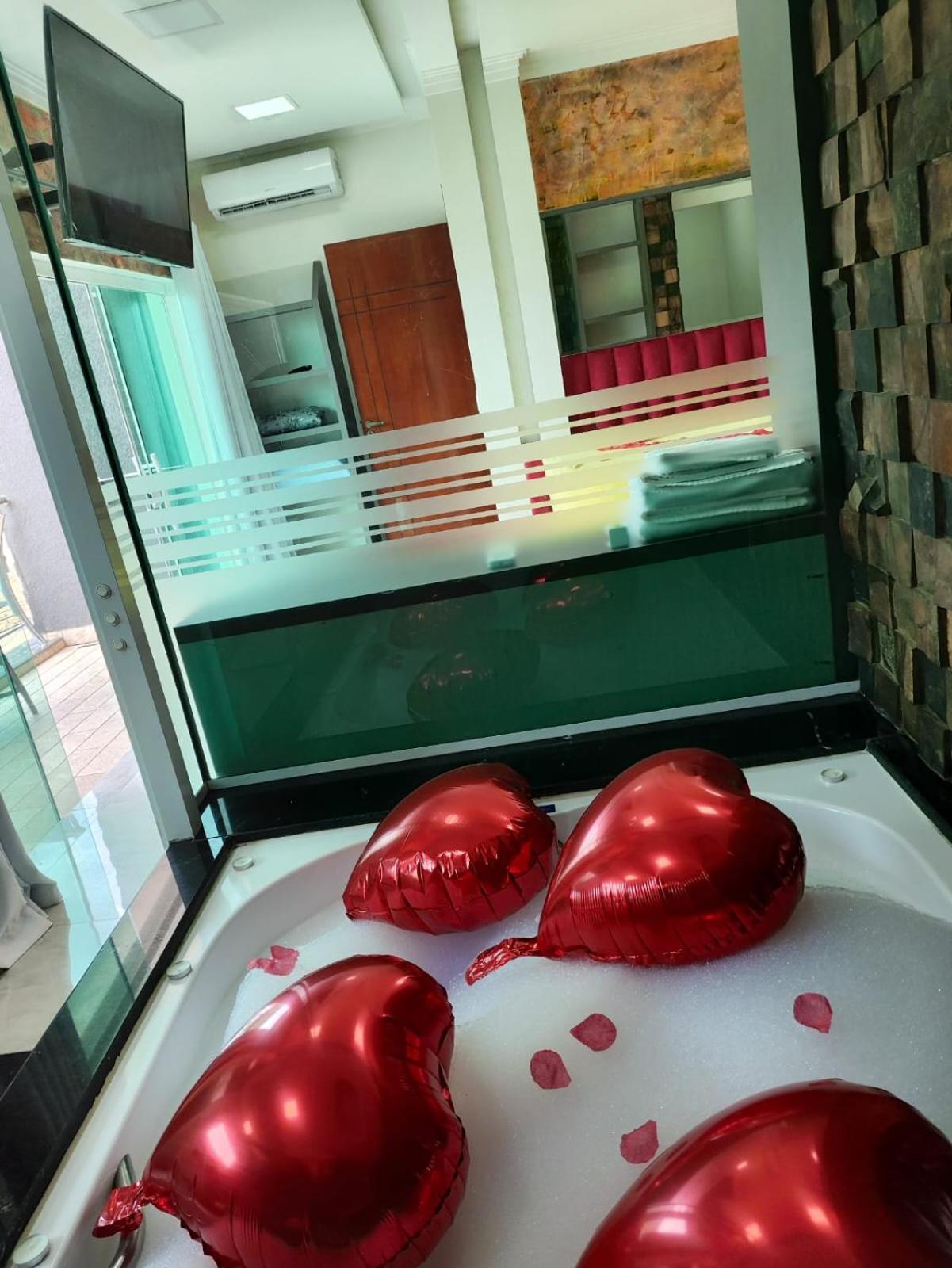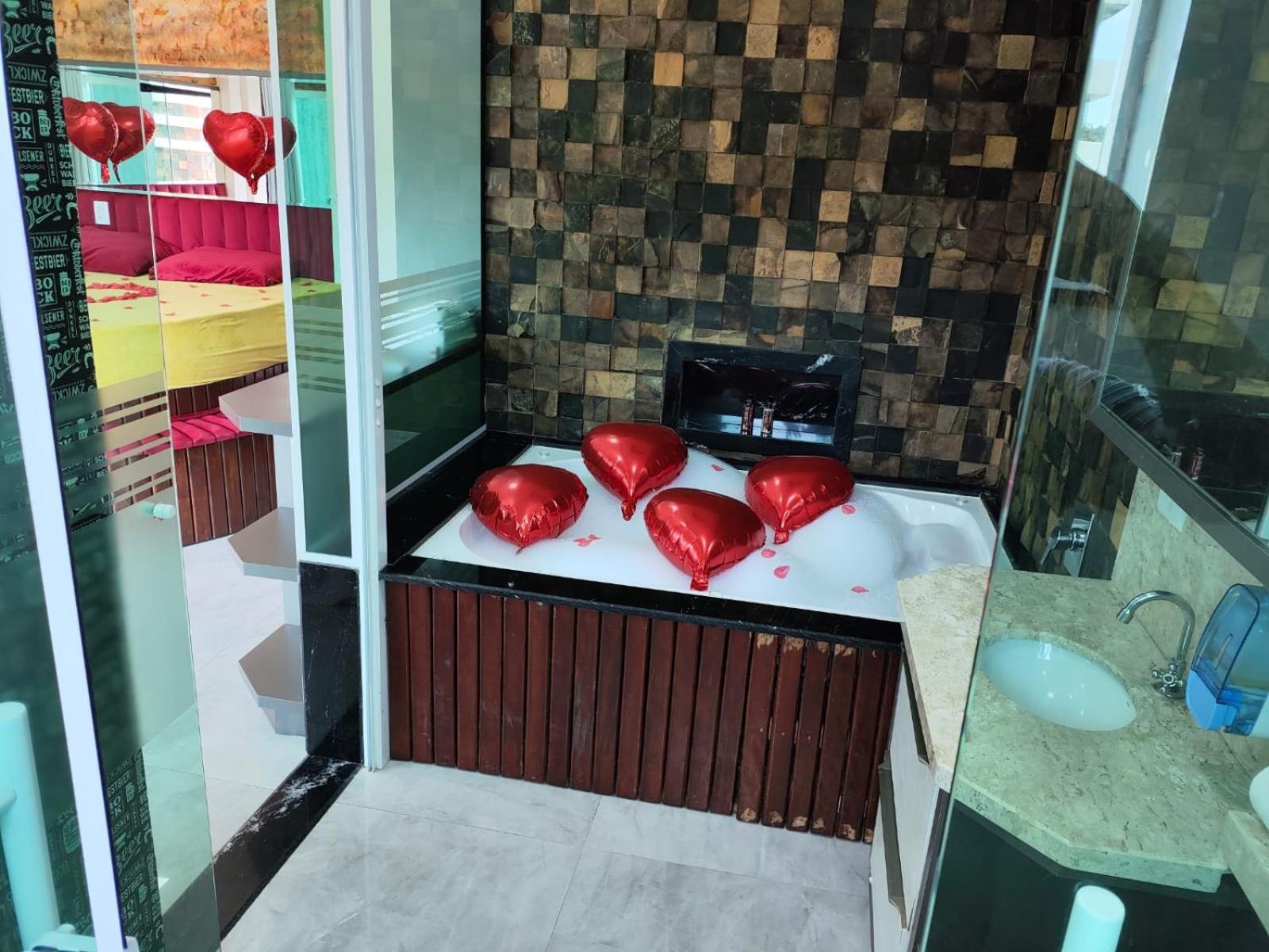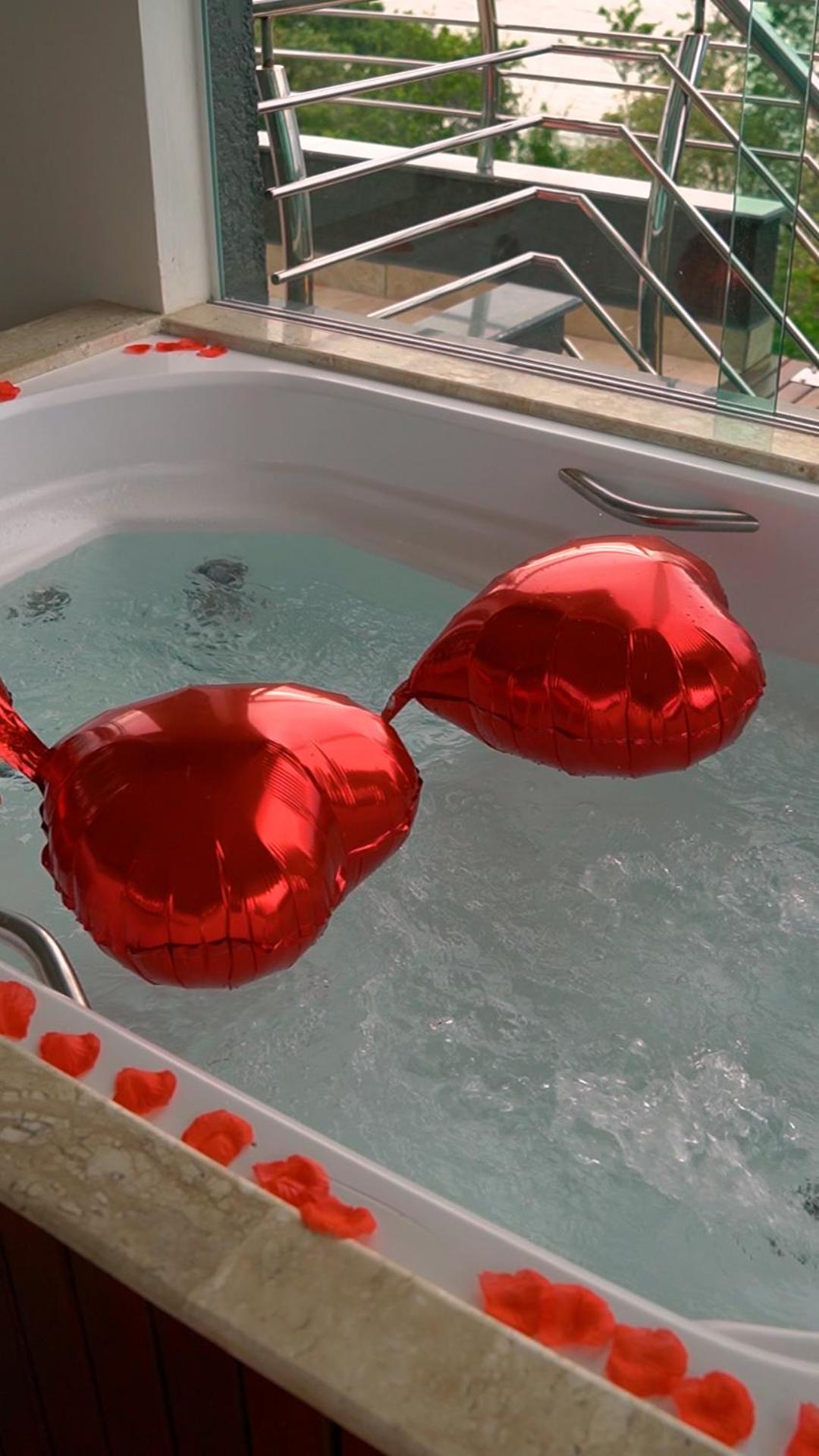 O quarto que pegamos tem banheira e cozinha