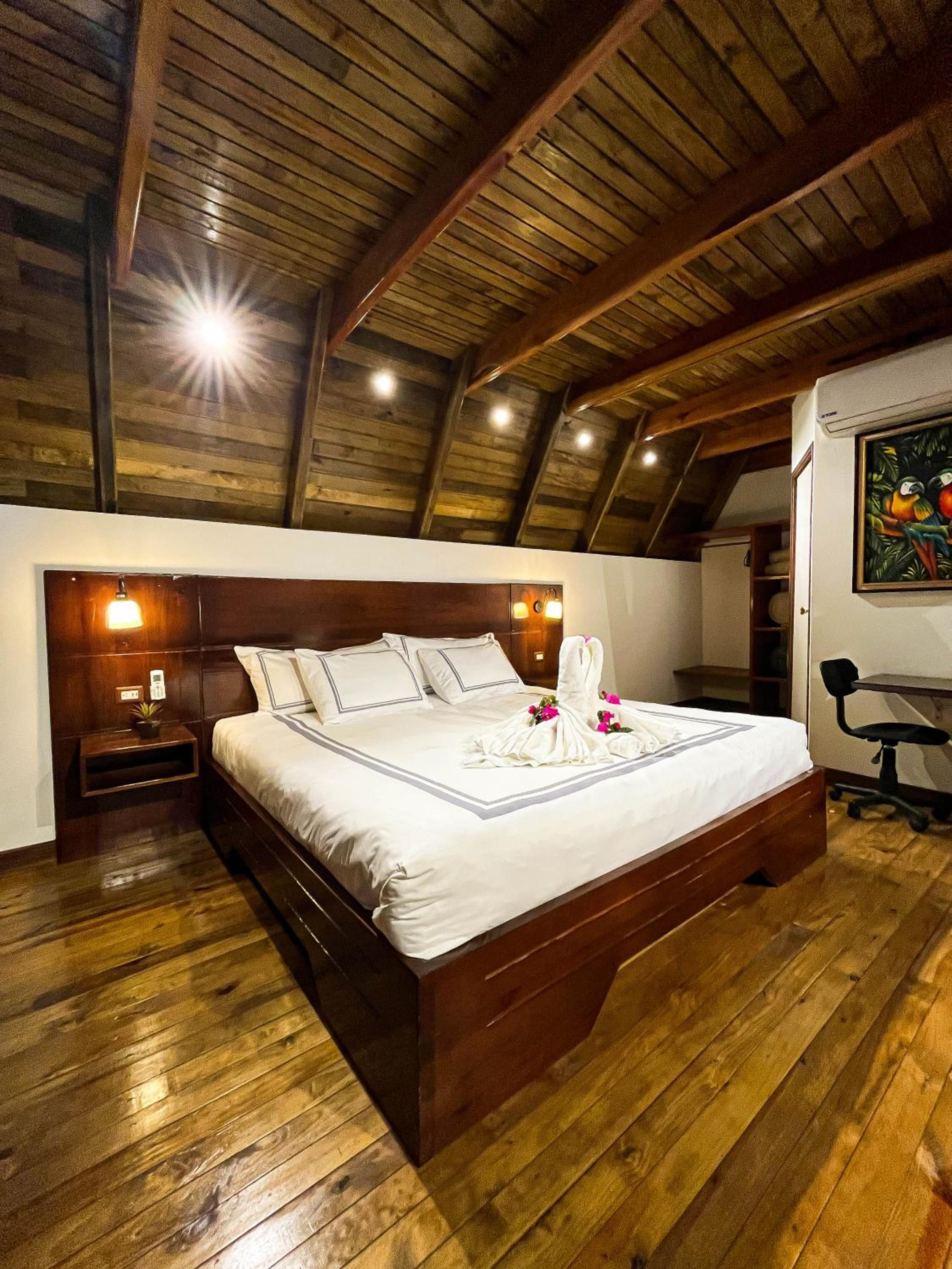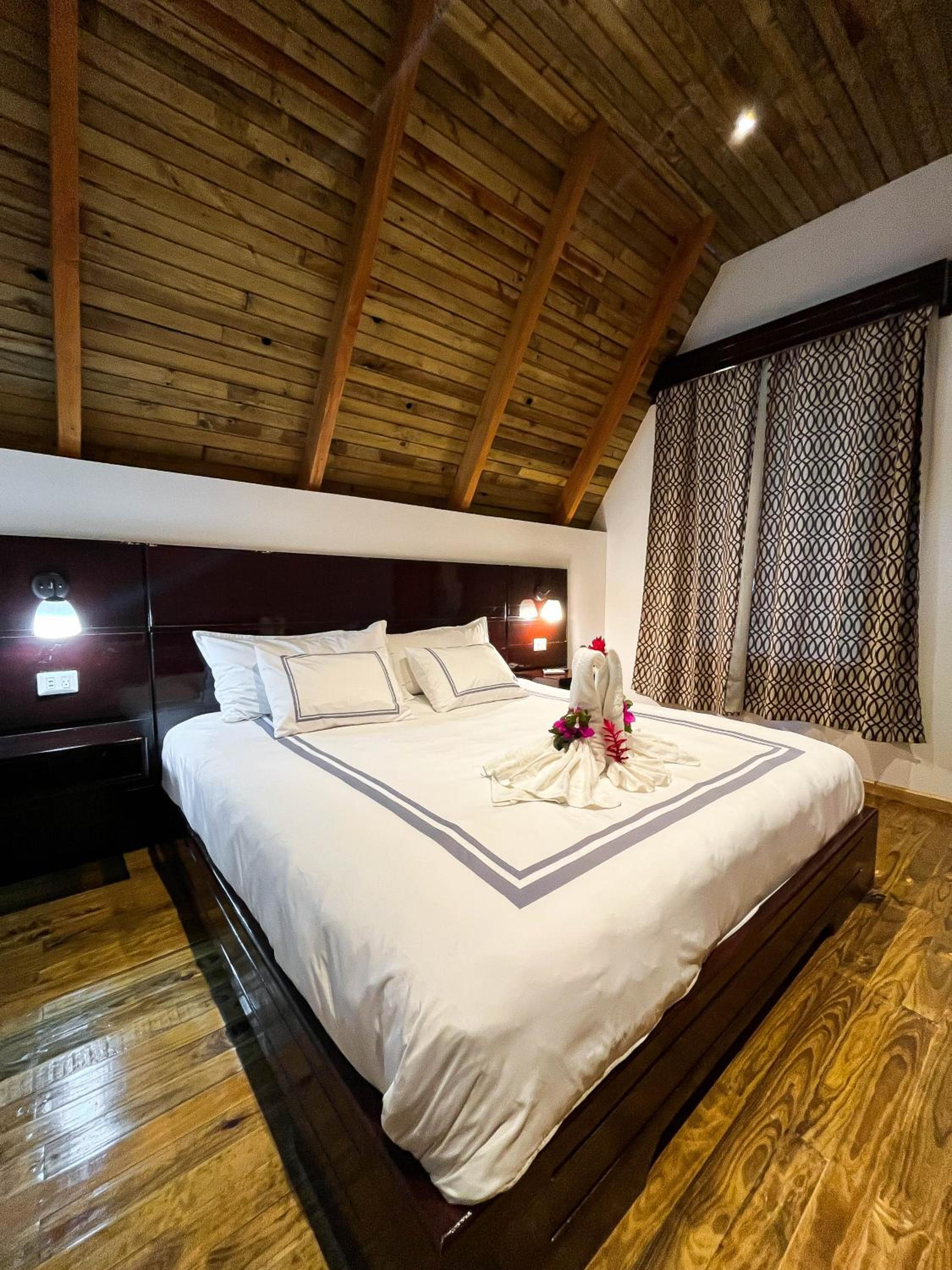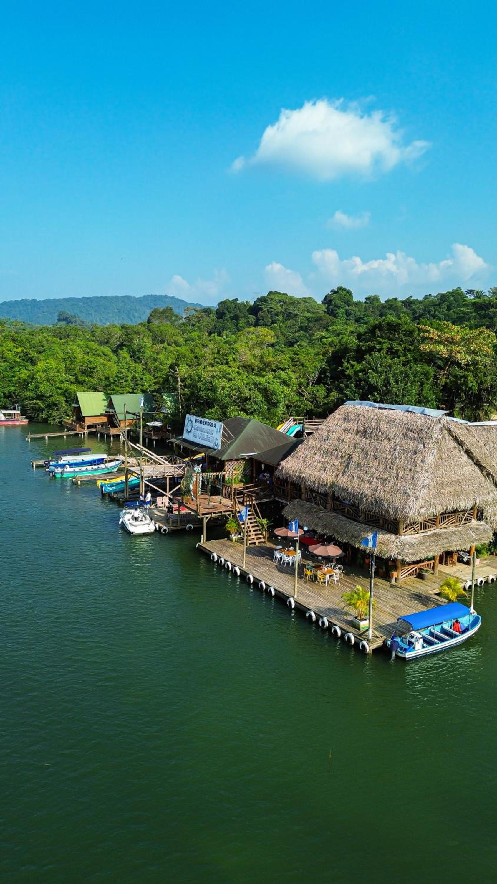 El hotel esta a 40 min en lancha desde rio dulce. Se nos hizo tarde y el hotel arreglo una lancha que nos recogiera y nos llevara . Era de noche y llovia muy fuerte . No fue una experiencia muy agradable hasta que llegamos al hotel . Increible lugar ! compensó el susto del viaje en lancha . La habitacion situada encima del rio , todo de madera con un fantastico comedor , los toboganes al agua , la piscina increible . Todo en este hotel es fantastico para visitar durante unos dias rio dulce y el caribe guatemalteco .