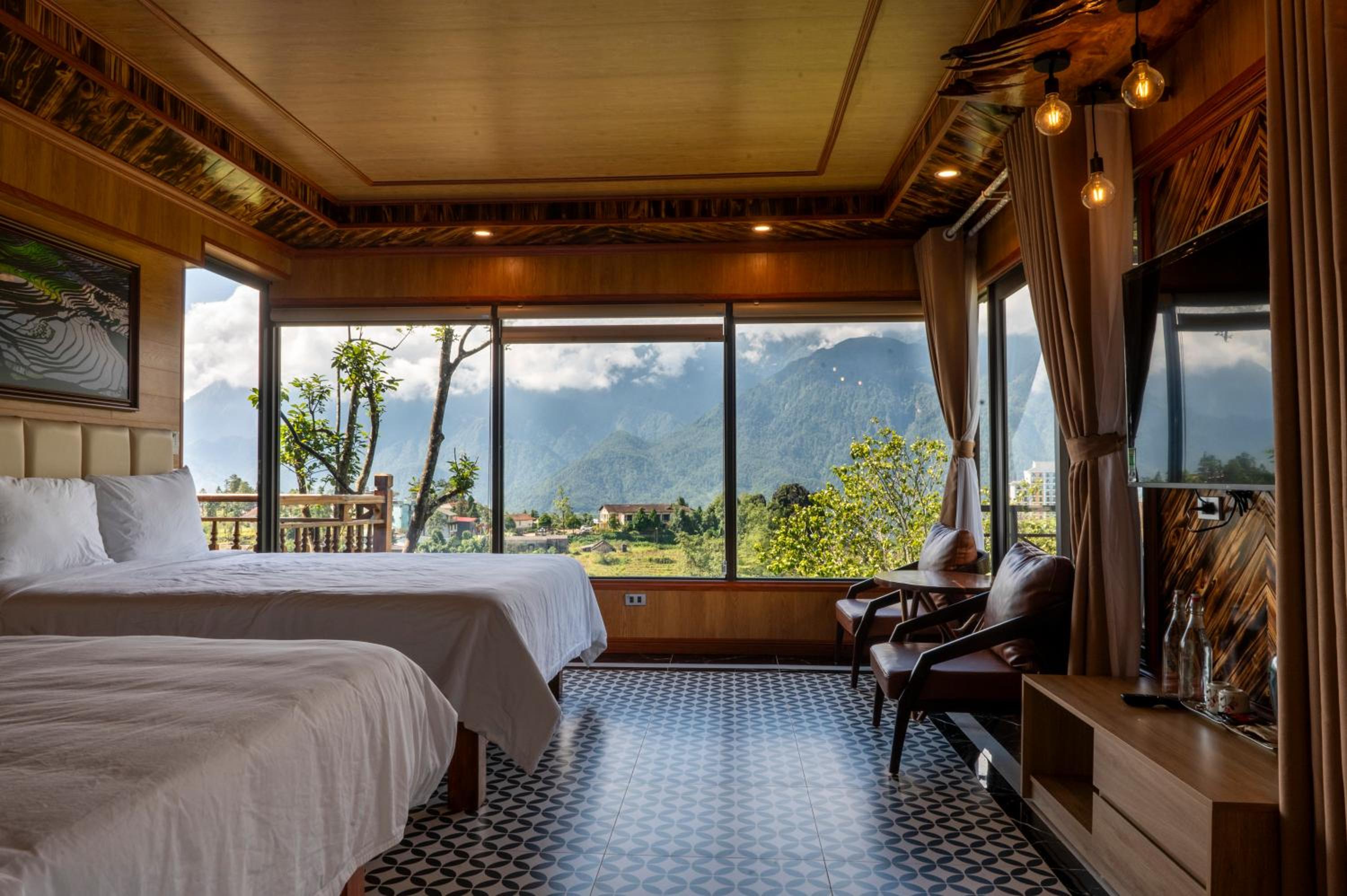 It was close enough to sapa central by taxi by away from the business of sapa central … clean , comfy beds, very attentive receptionist who very helpful with use of google translate