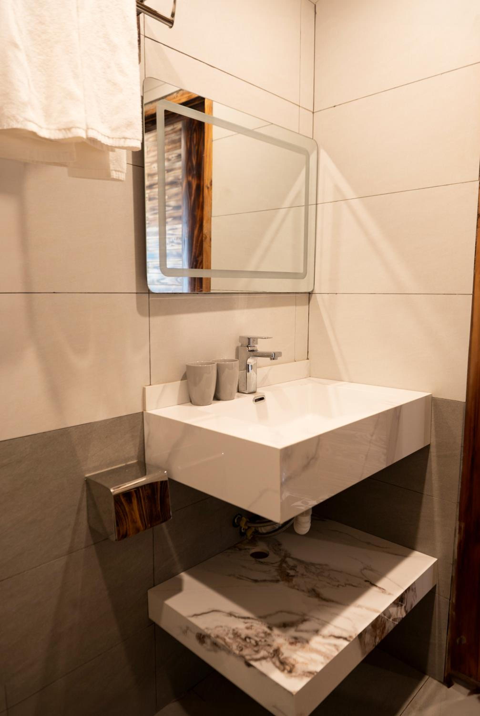 The location is good and near to town. Excellent view, and good space outside the room for standing. Very nice structure and interior