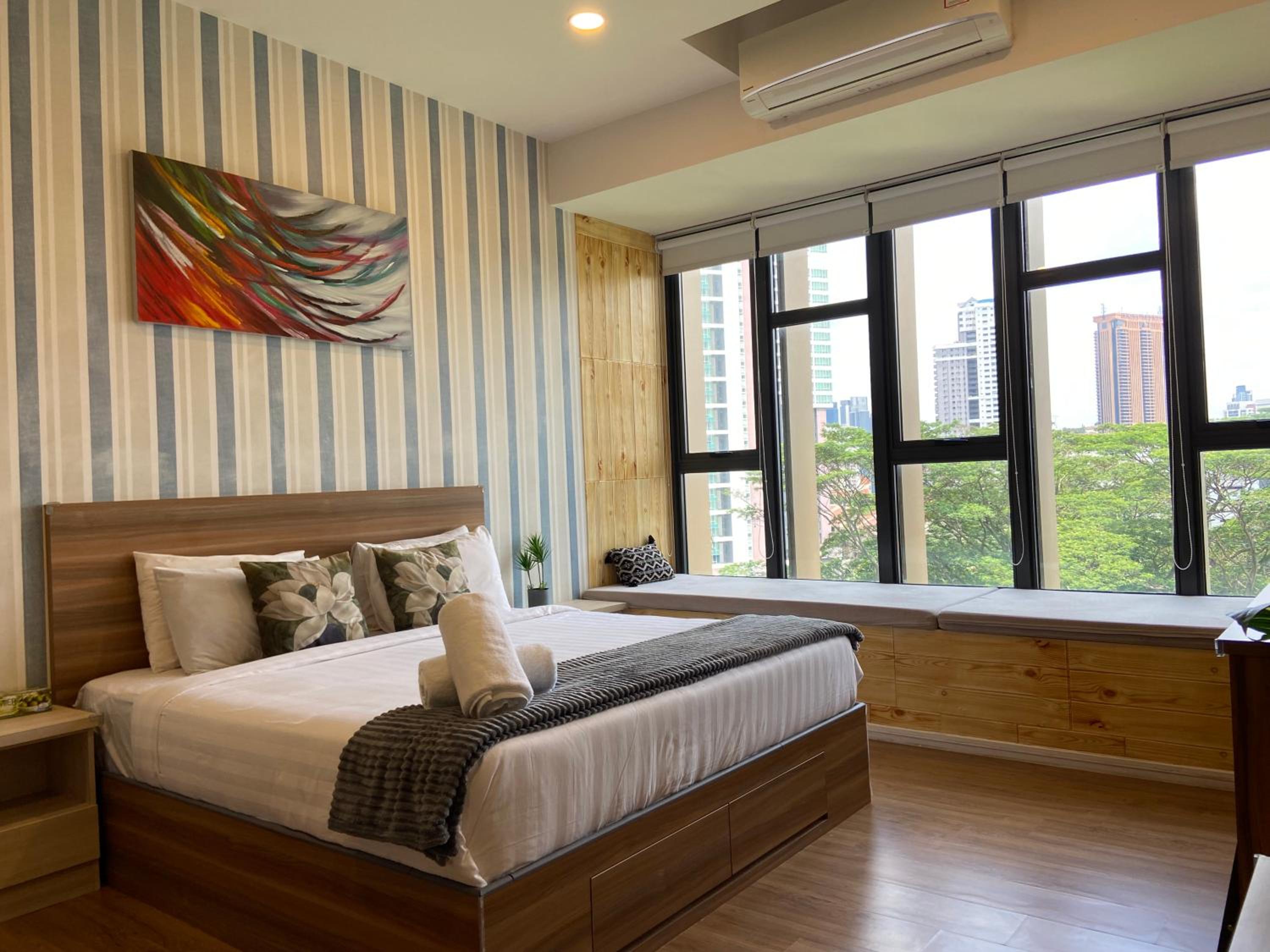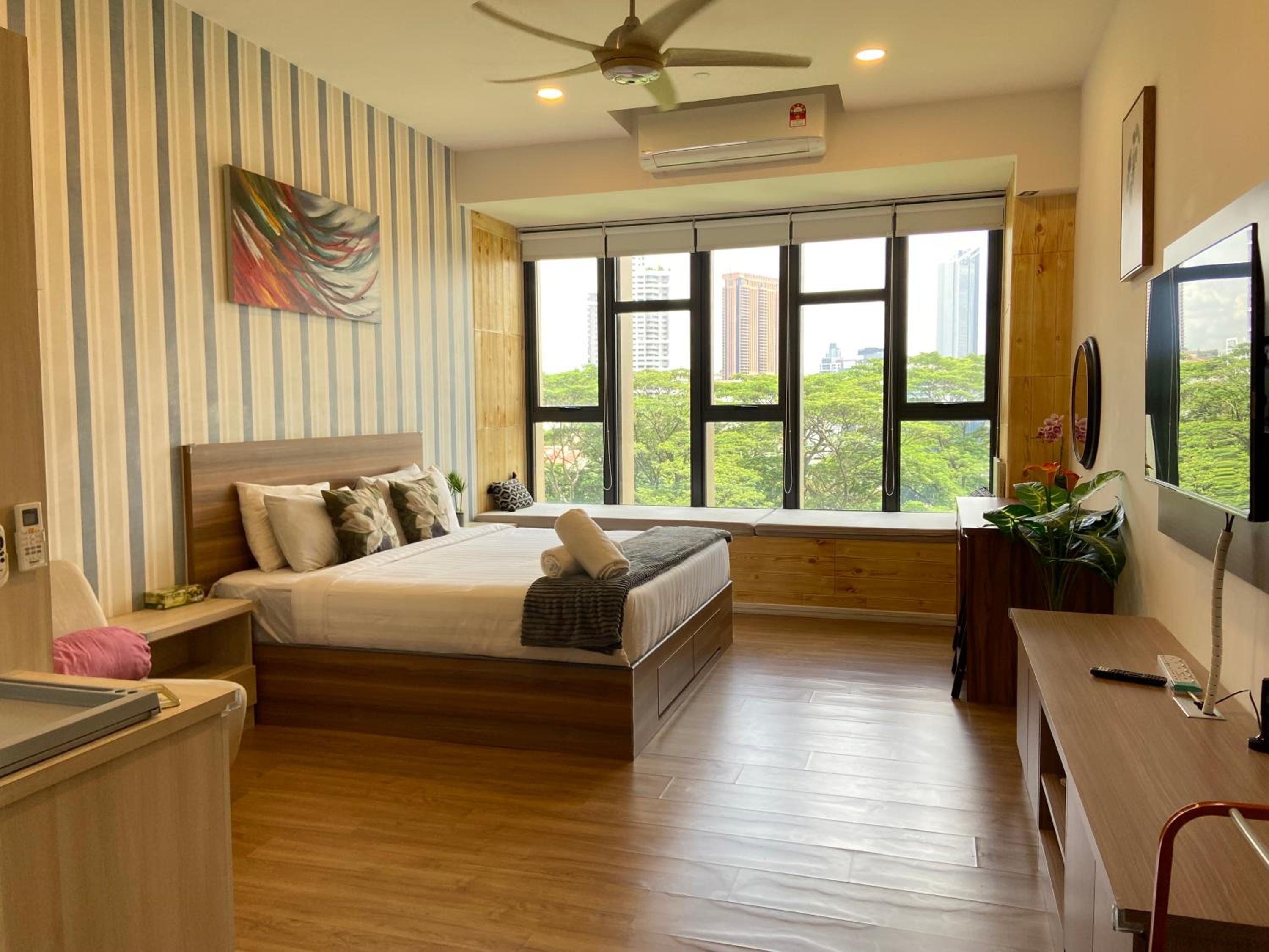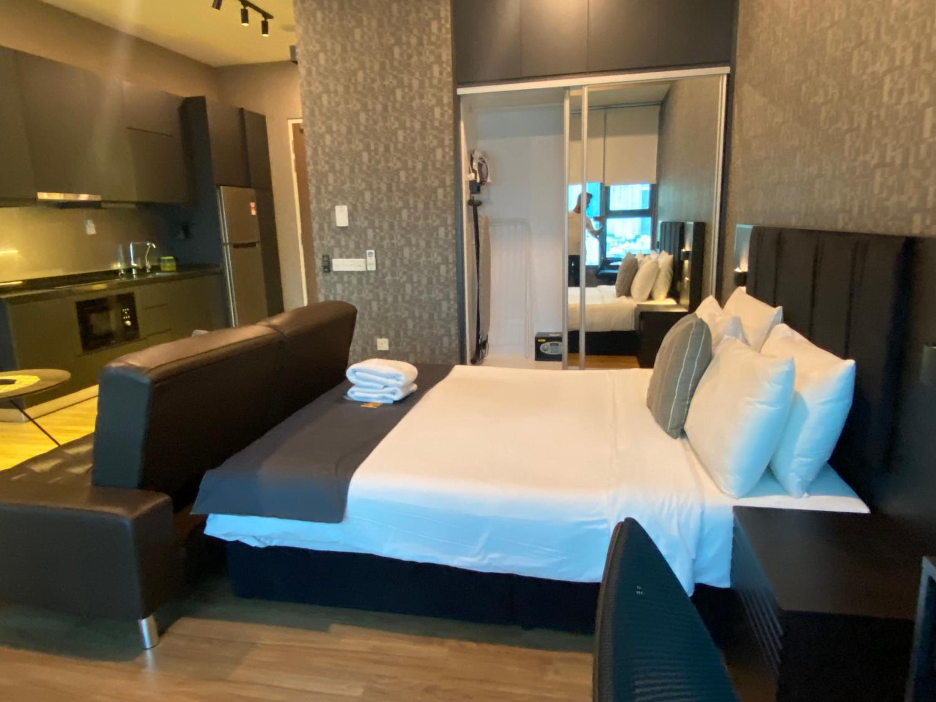 Equipped with a fully equipped kitchen, flat-screen TV, and city views, each room provides modern amenities for a comfortable stay in Kuala Lumpur.