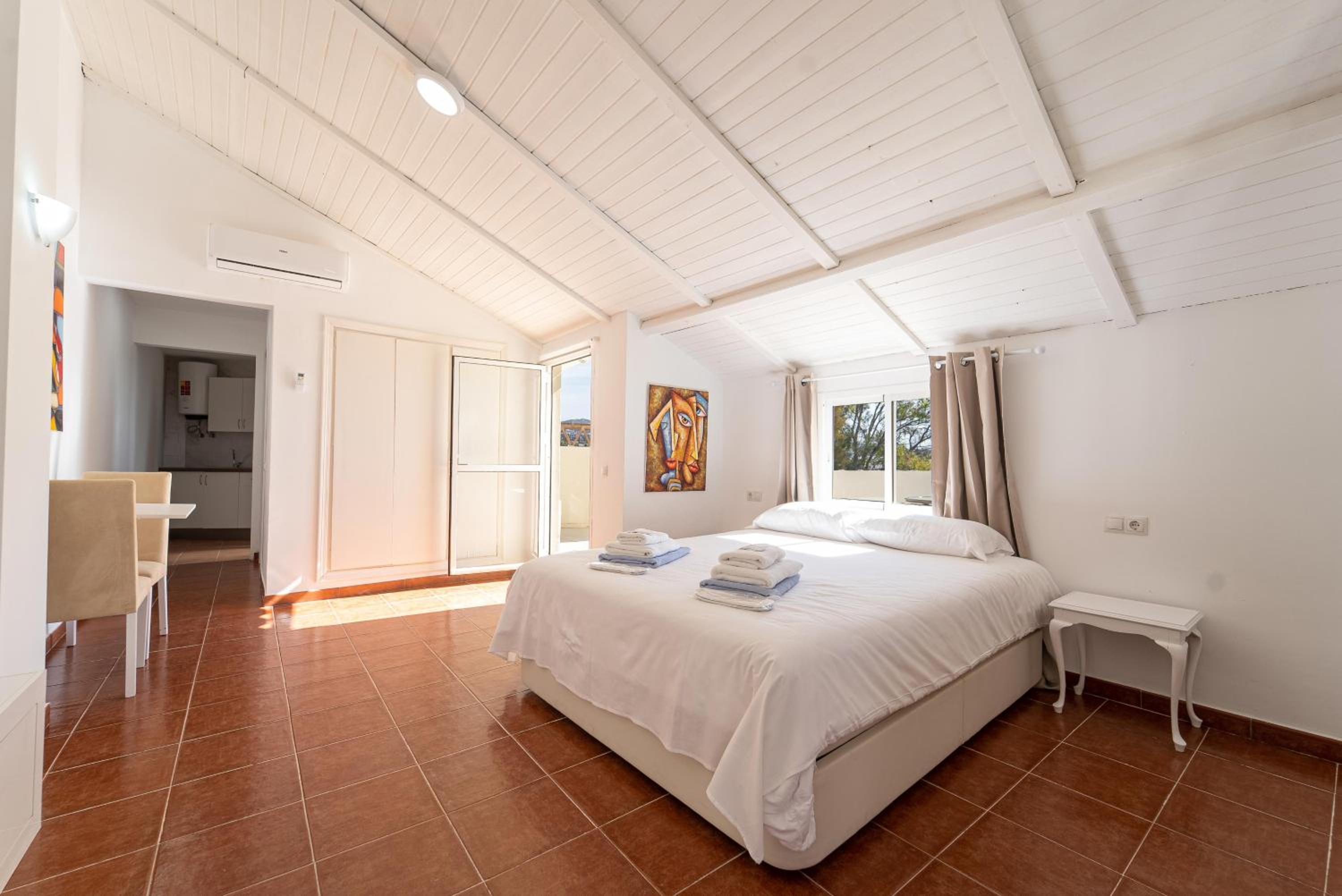 La cama no disponía de mantas,el aire es de poca potencia para el tamaño de la habitación. NO DORMIMOS ALLÍ, DEJAMOS EL APARTAMENTO LA. NOCHE DE LA ENTRADA Y NOS FUIMOS A OTRO HOTEL PAGAMOS 2 NOCHES EN OTRO HOTEL, NO REVERVO MAS POR BOOKING