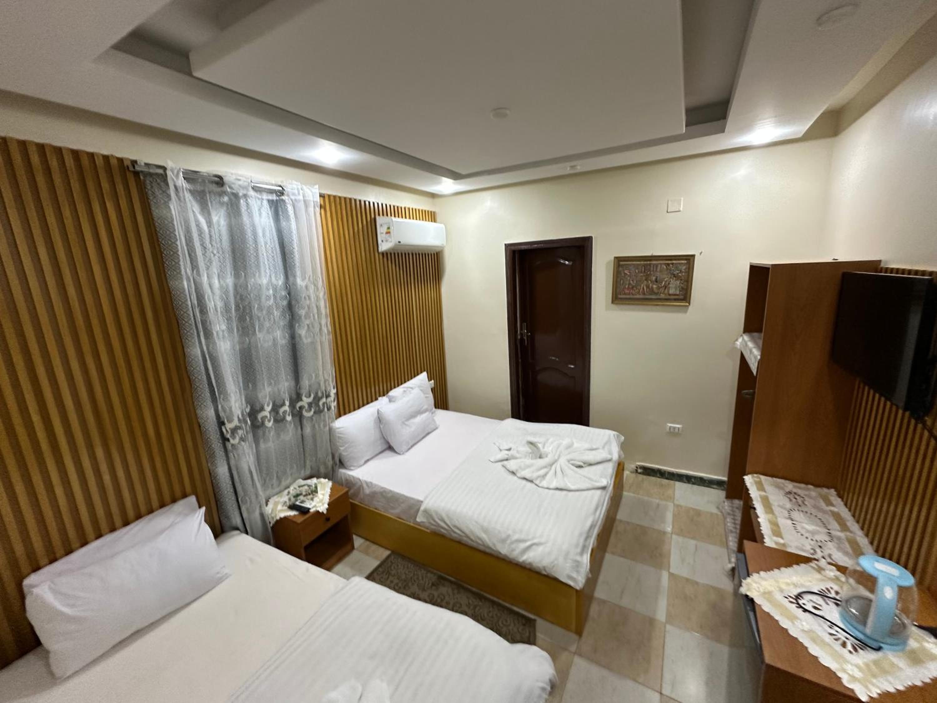 The hotel features well-appointed rooms with modern amenities including flat-screen TVs, air conditioning, and private bathrooms. Some rooms even offer terraces for stunning views of the surrounding area.