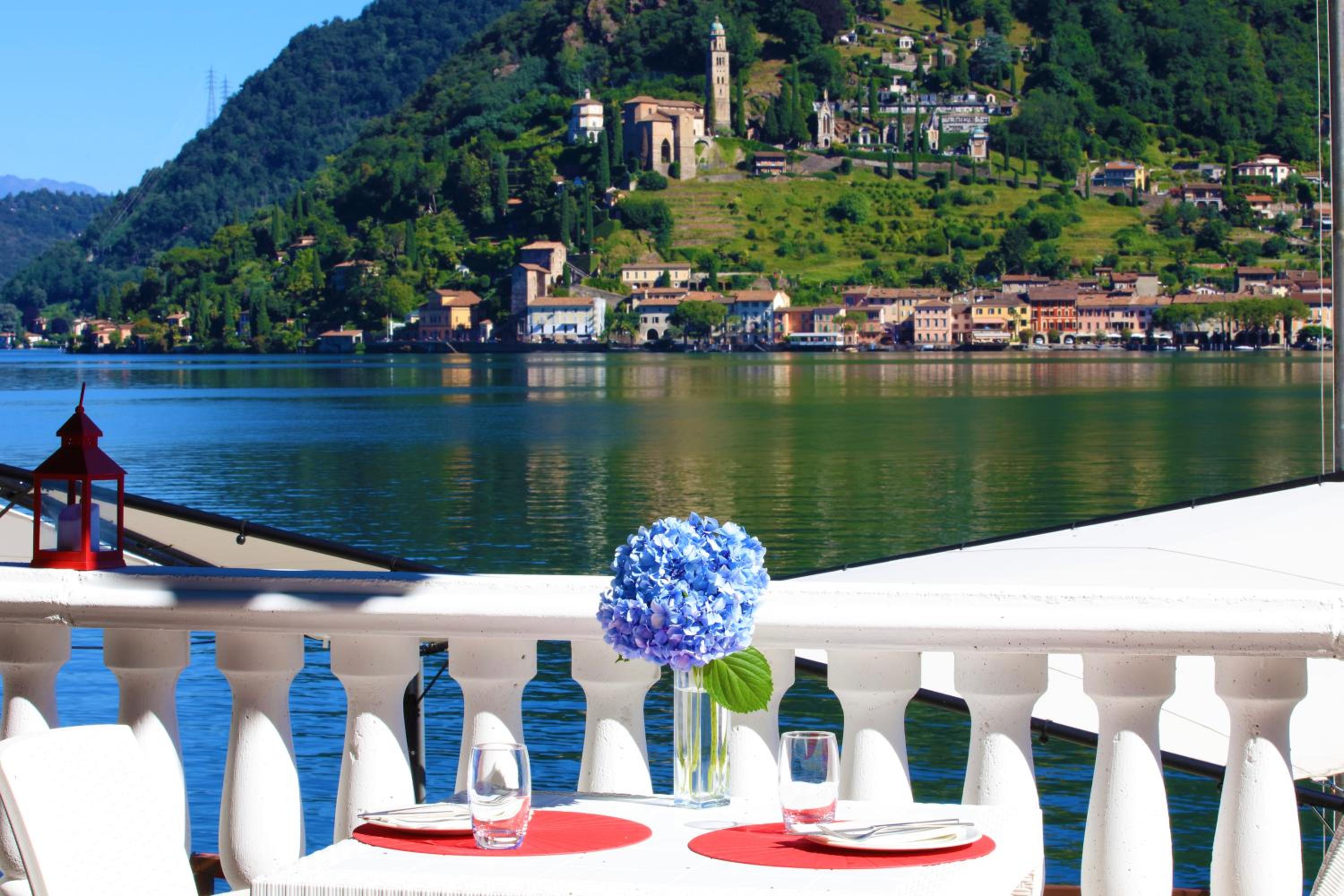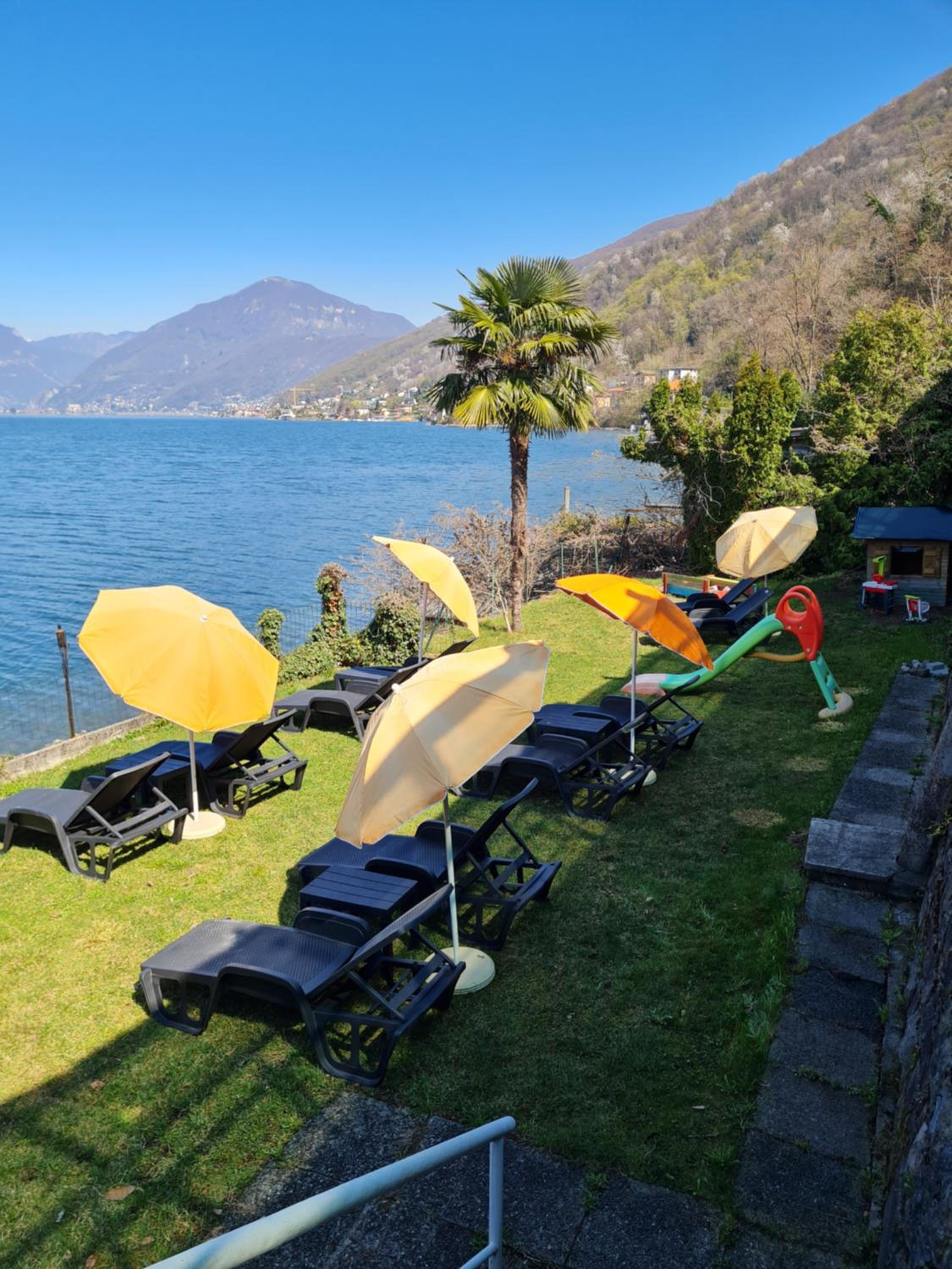 Location ottima. Bellissima la spiaggia dove poter fare il bagno al lago. Terrazza per aperitivo e cena, praticamente sul lago, molto bella.
